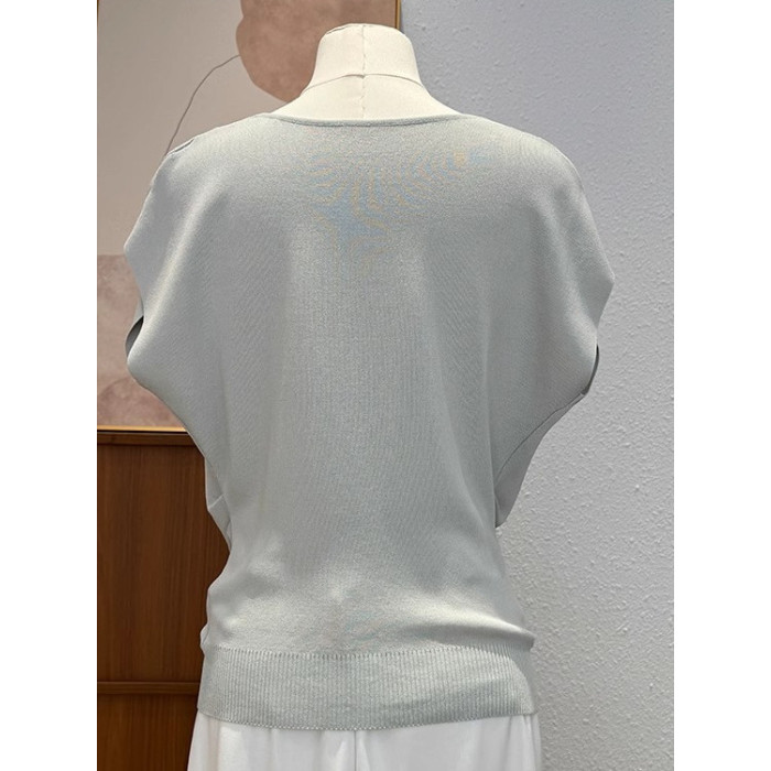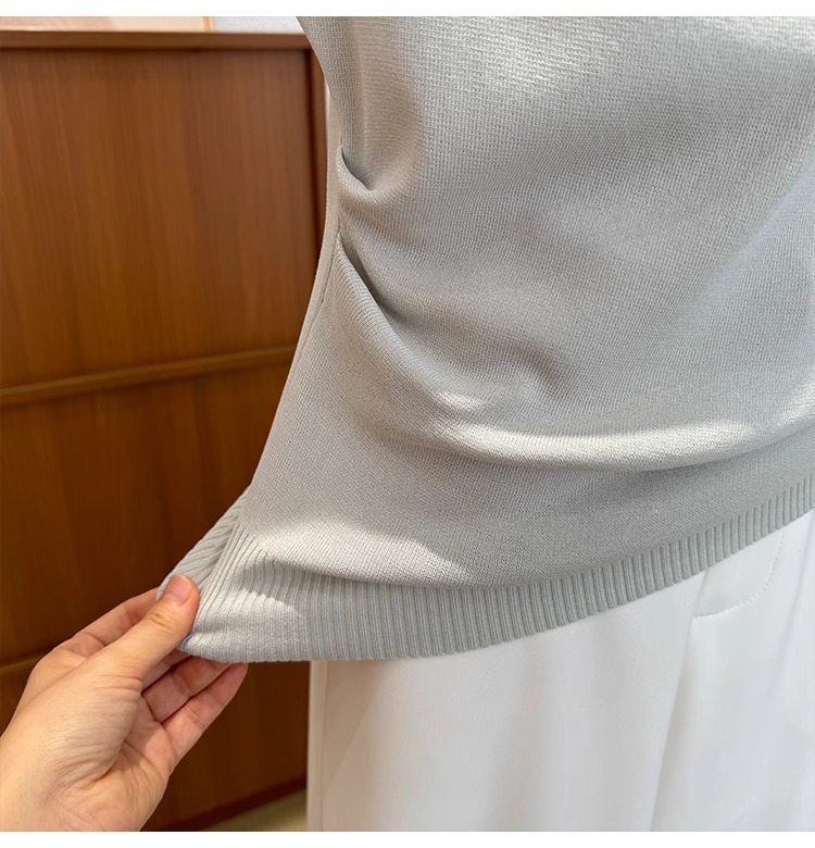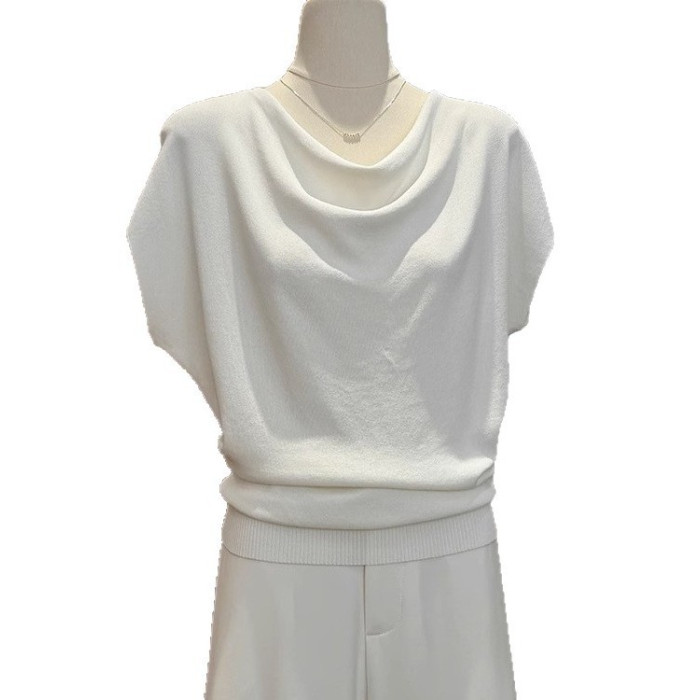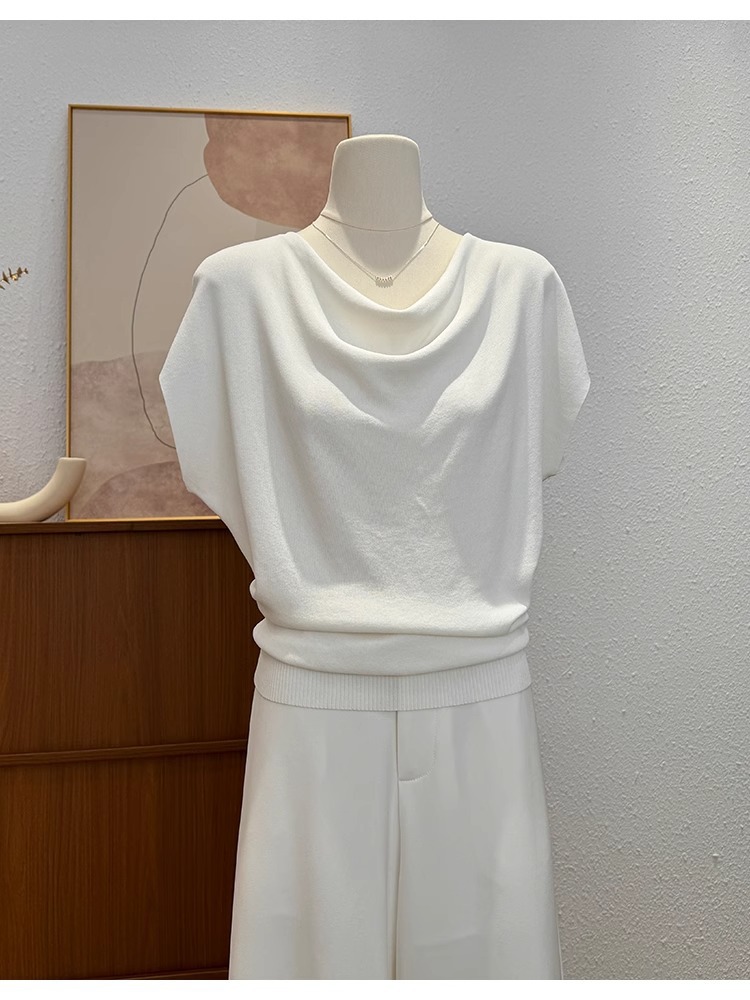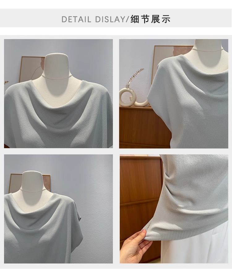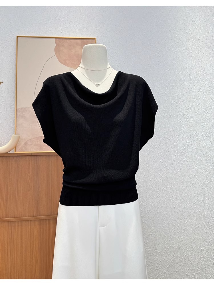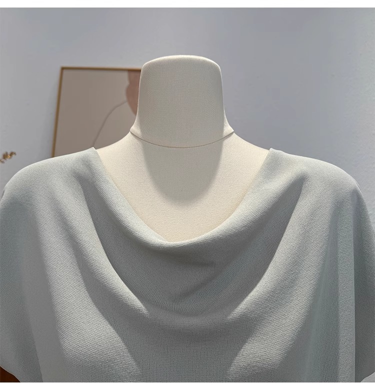 韓系蕩領短袖冰絲針織衫女t恤夏季新款收腰顯瘦一字肩上衣高級感