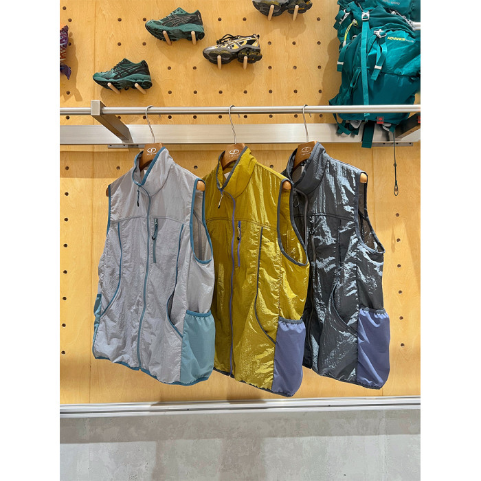 小衆戶外運動露營徒步金屬光澤撞色馬夾寬松立領涼感馬甲男女款