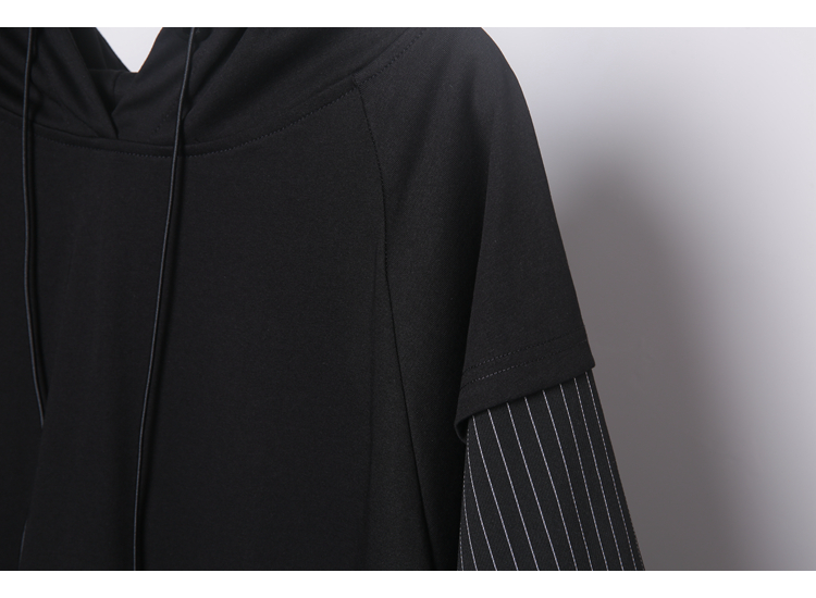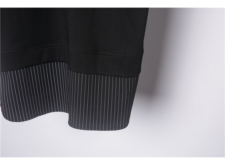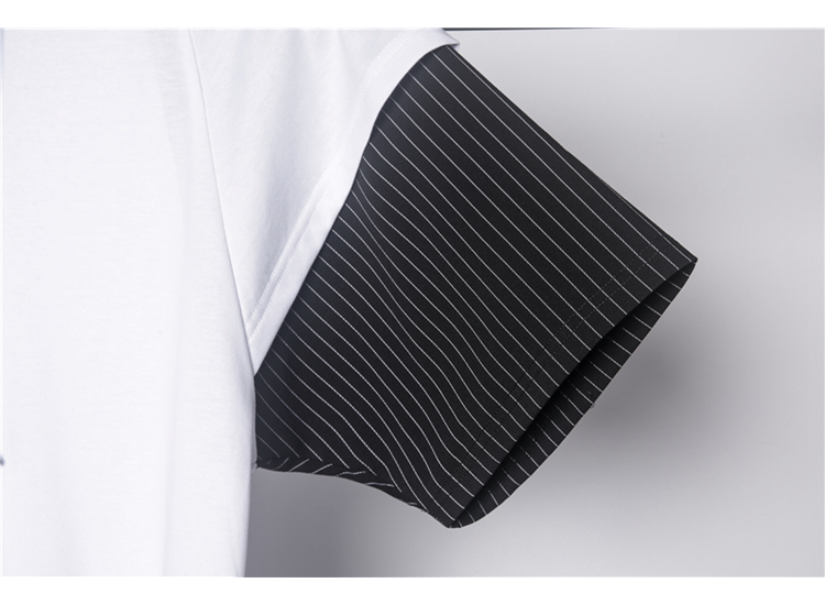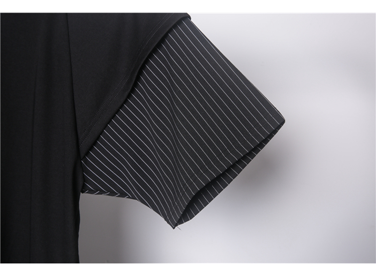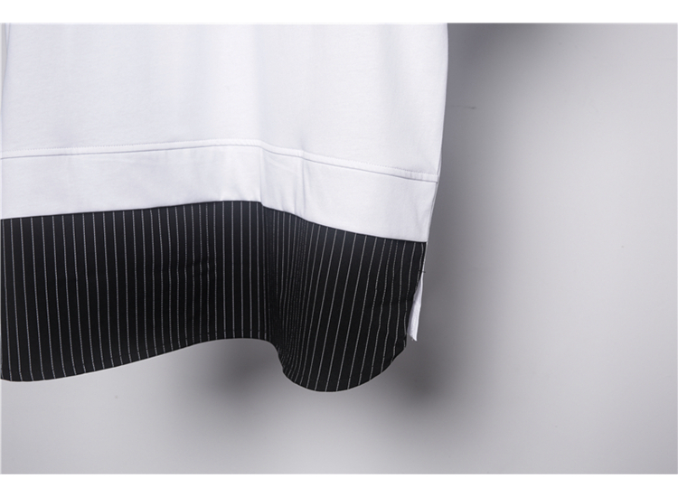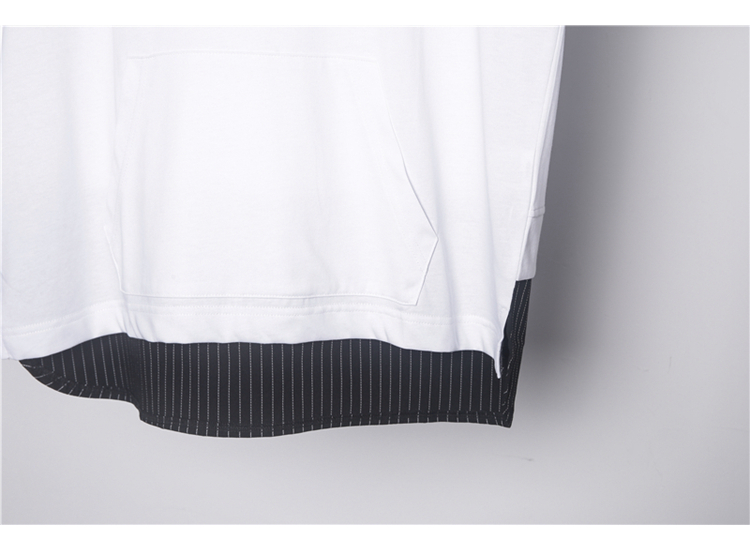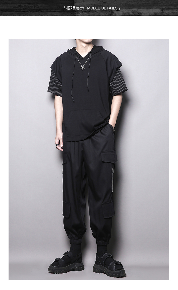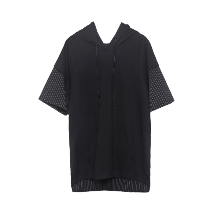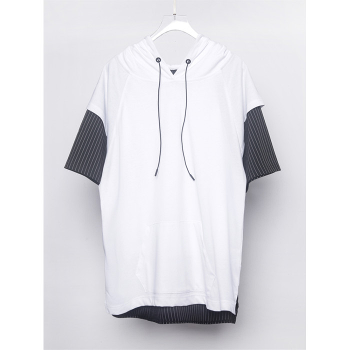 夏日系拼接撞色馬甲假兩件連帽條紋休閒寬松短袖t恤男潮牌打底衫