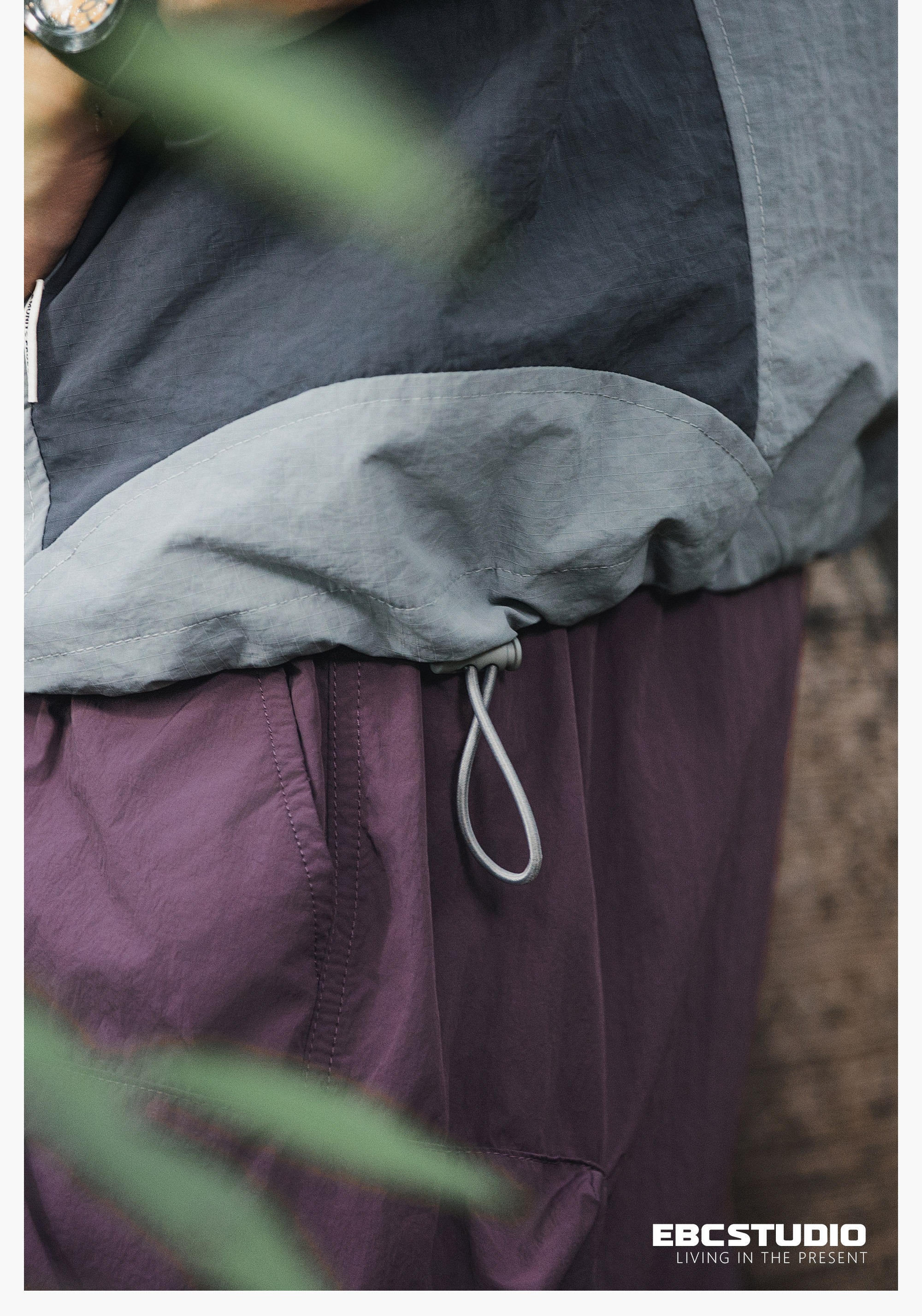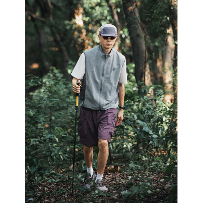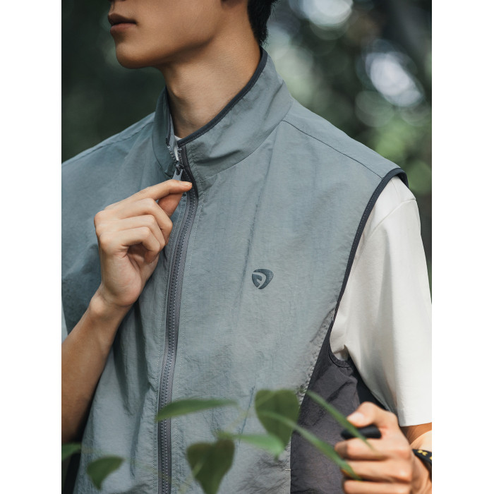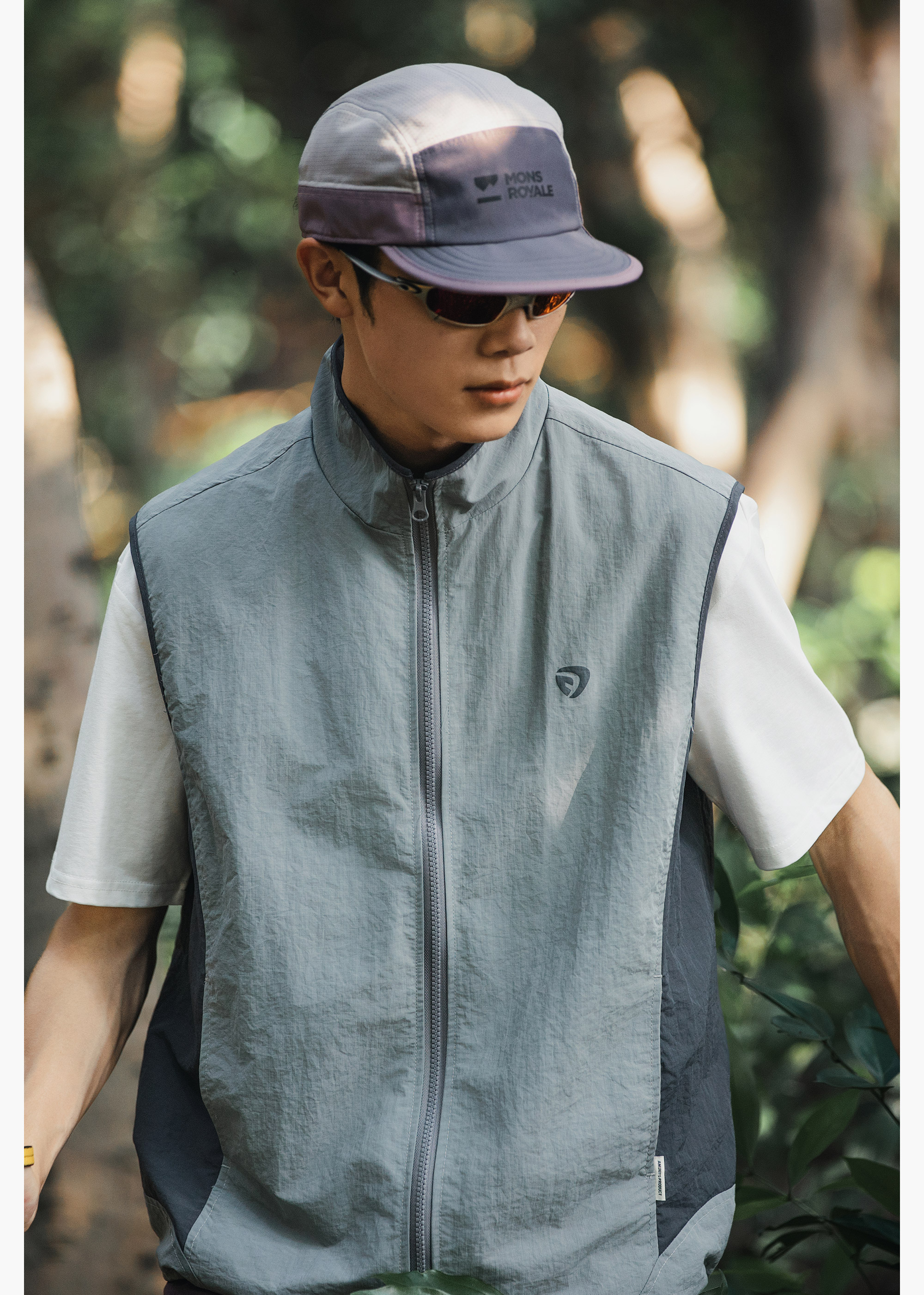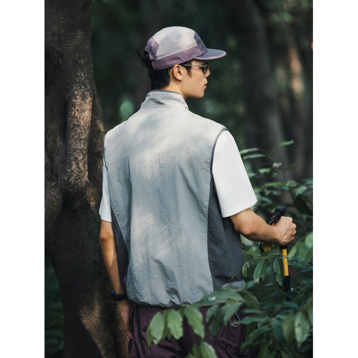 EBC工作室夏季戶外透氣輕薄撞色潮拼接印花款運動寬松立領馬甲男