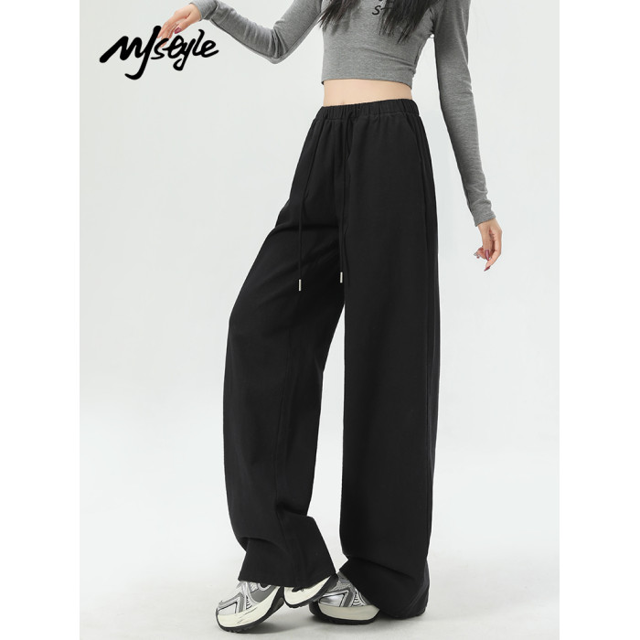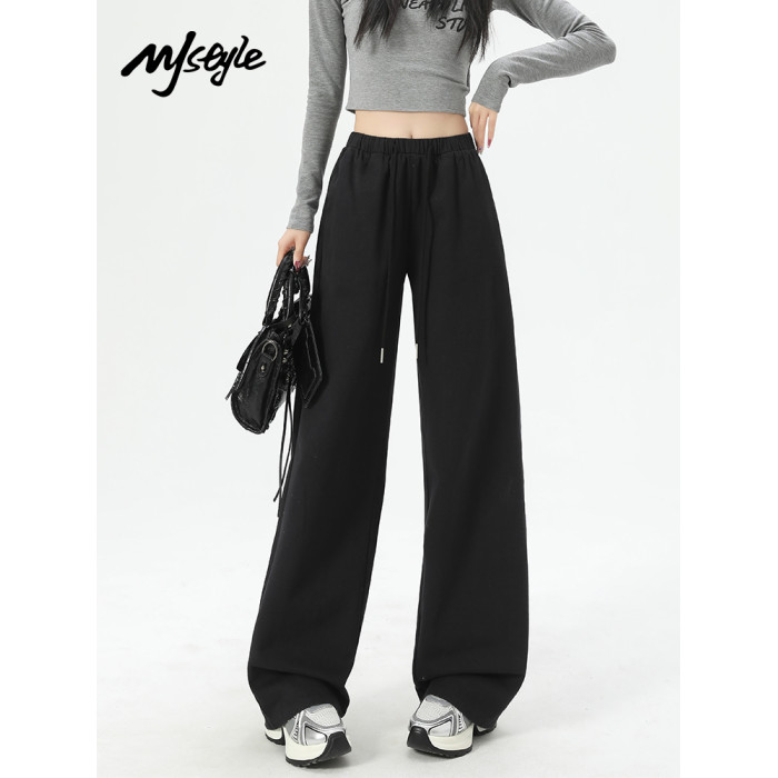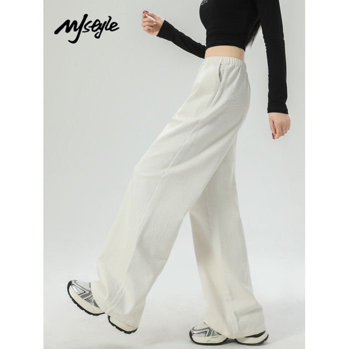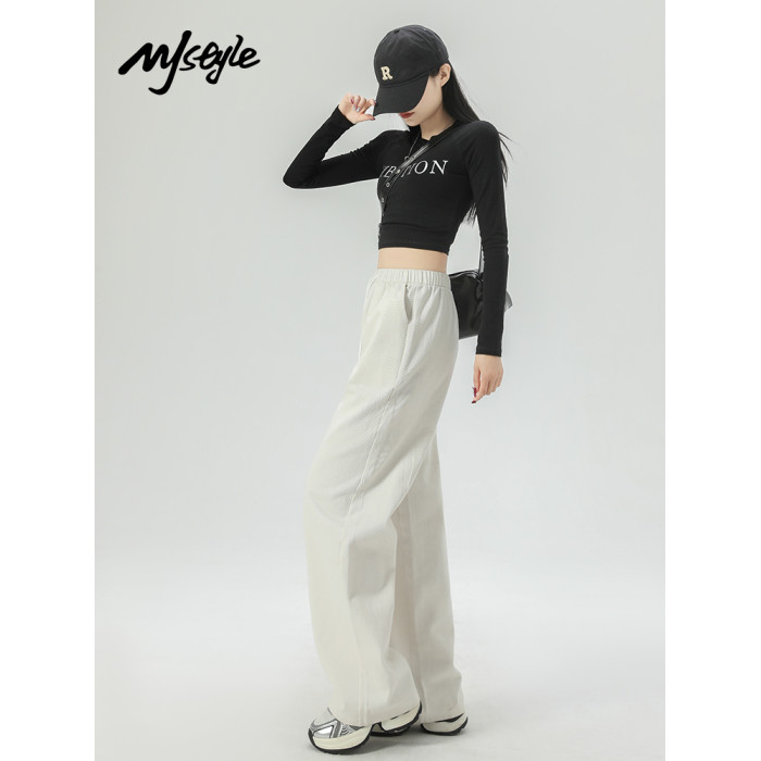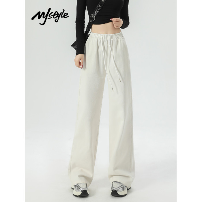 MJ STYLE白色復古直筒褲女2025夏季新款高腰寬松濶腿褲休閒運動褲