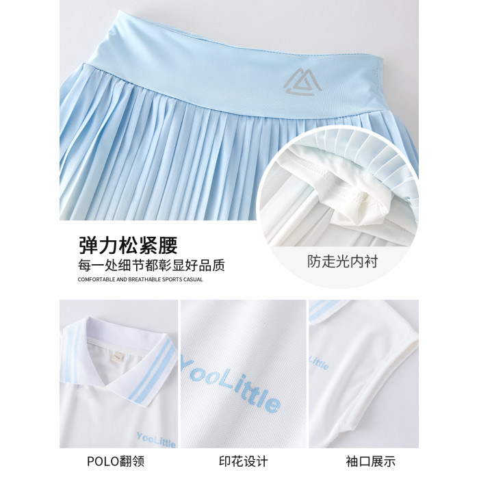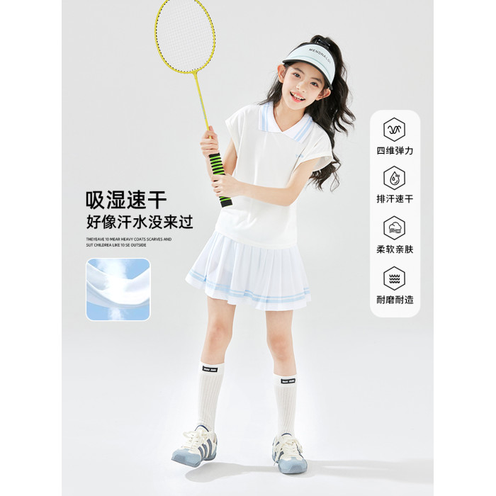 女童網球裙套裝兒童夏運動訓練羽毛球服裙子女大童速乾衣短袖女孩