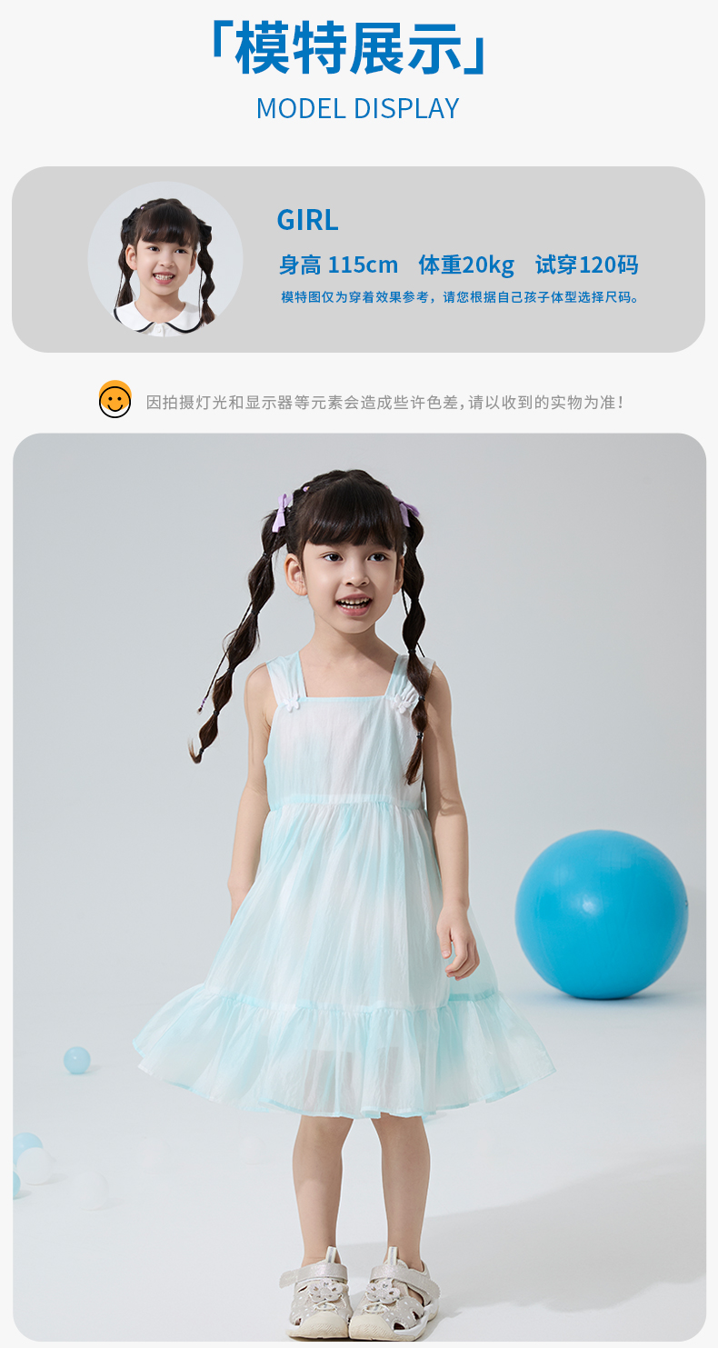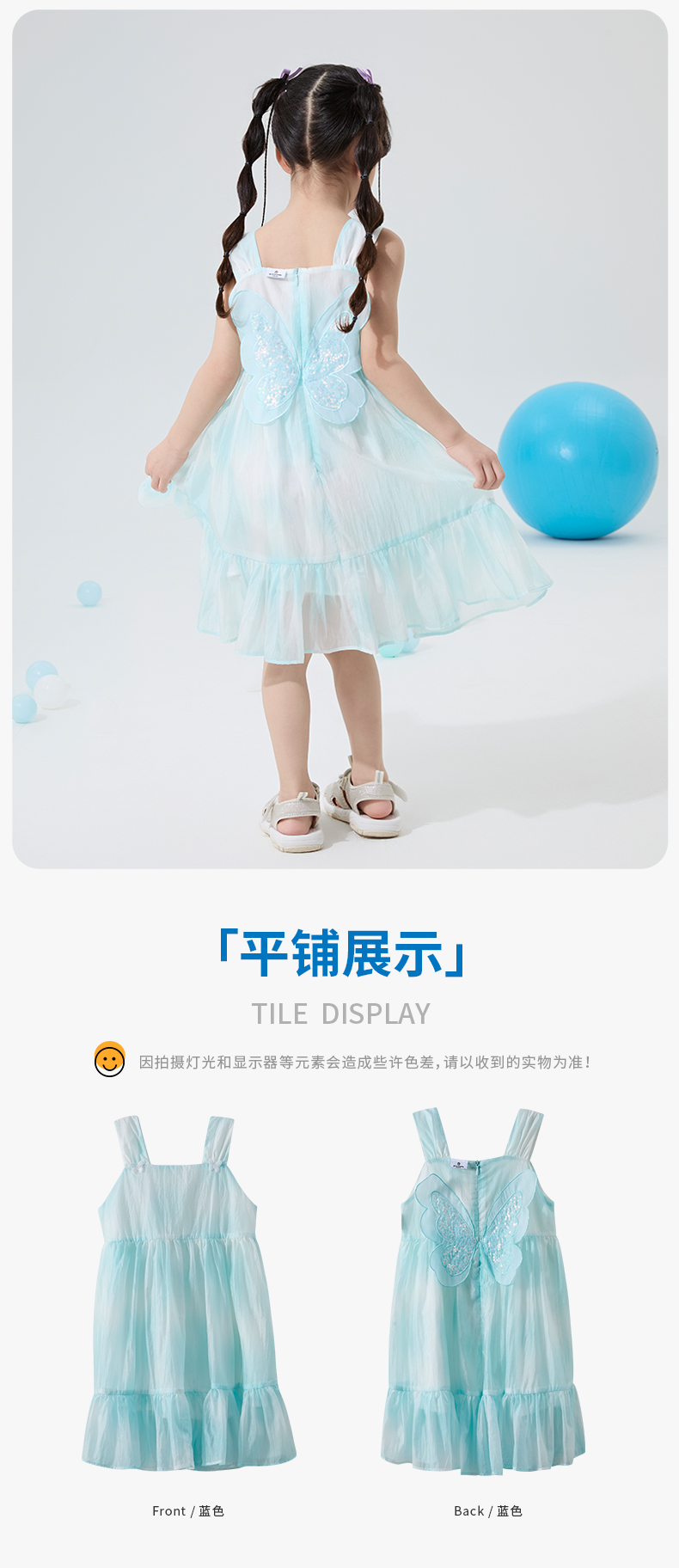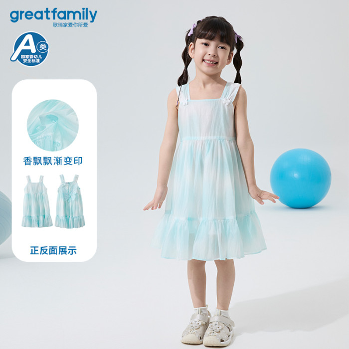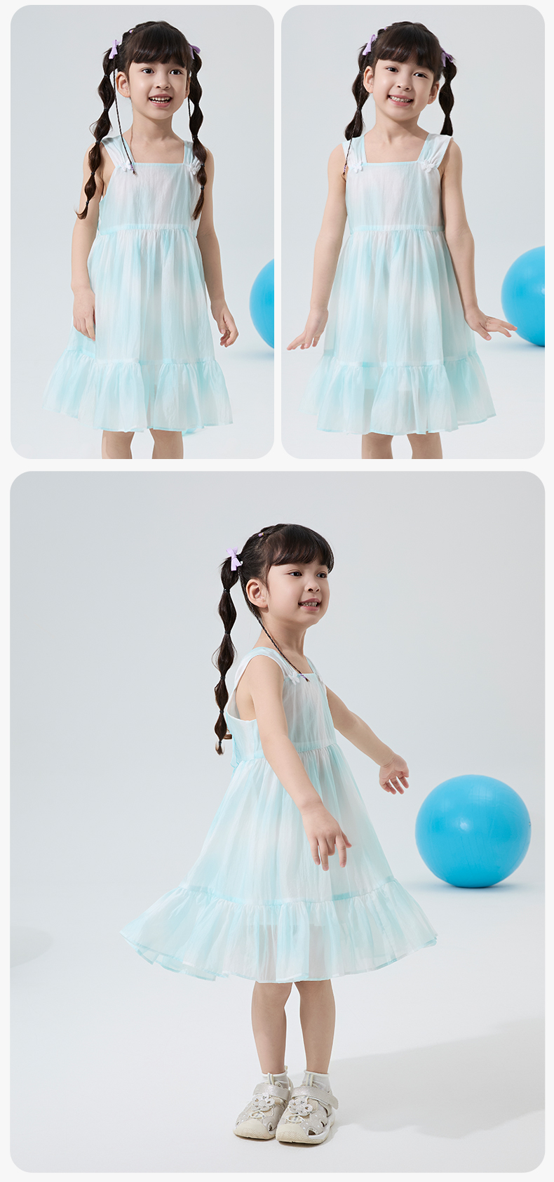歌瑞家25夏季女童吊帶中長款連衣裙炫彩漸變色公主裙女孩裙子樂友