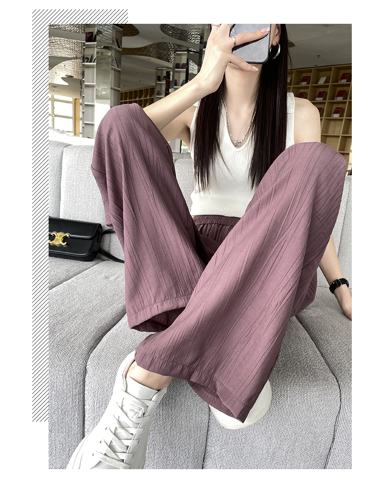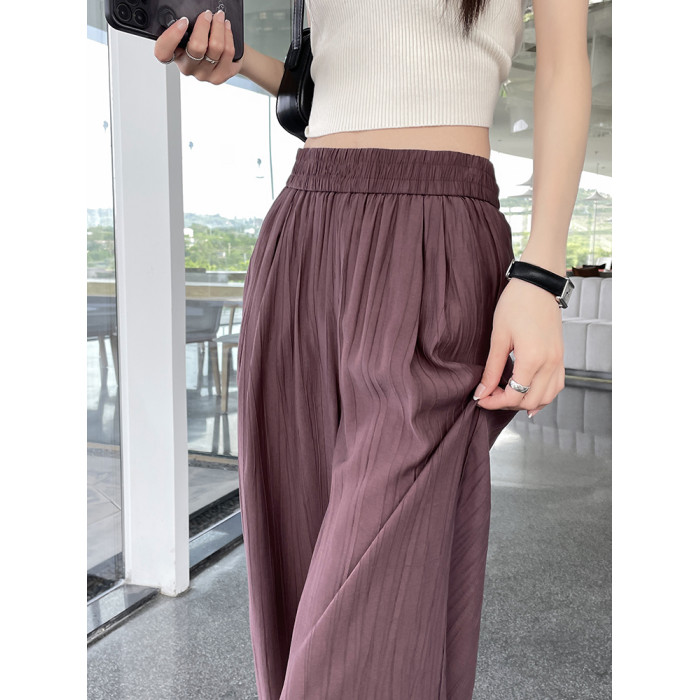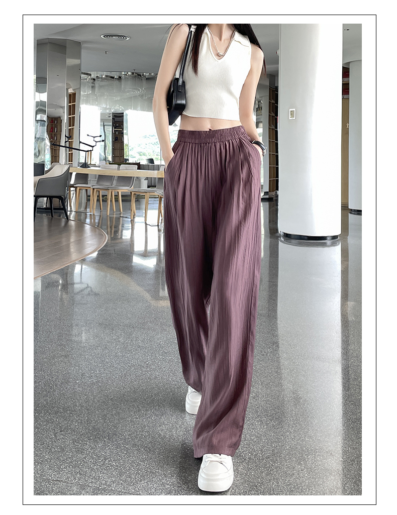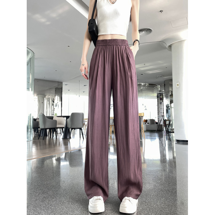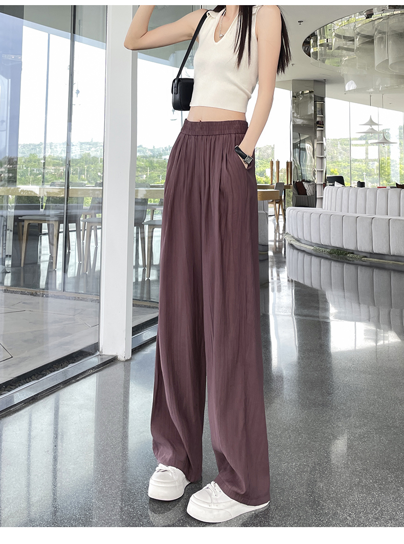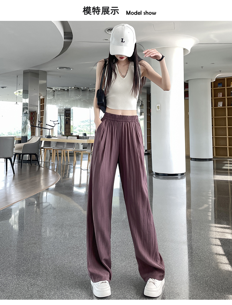 冰絲濶腿褲女夏季薄款高腰直筒顯瘦垂感防曬寬松小個子休閒拖地褲