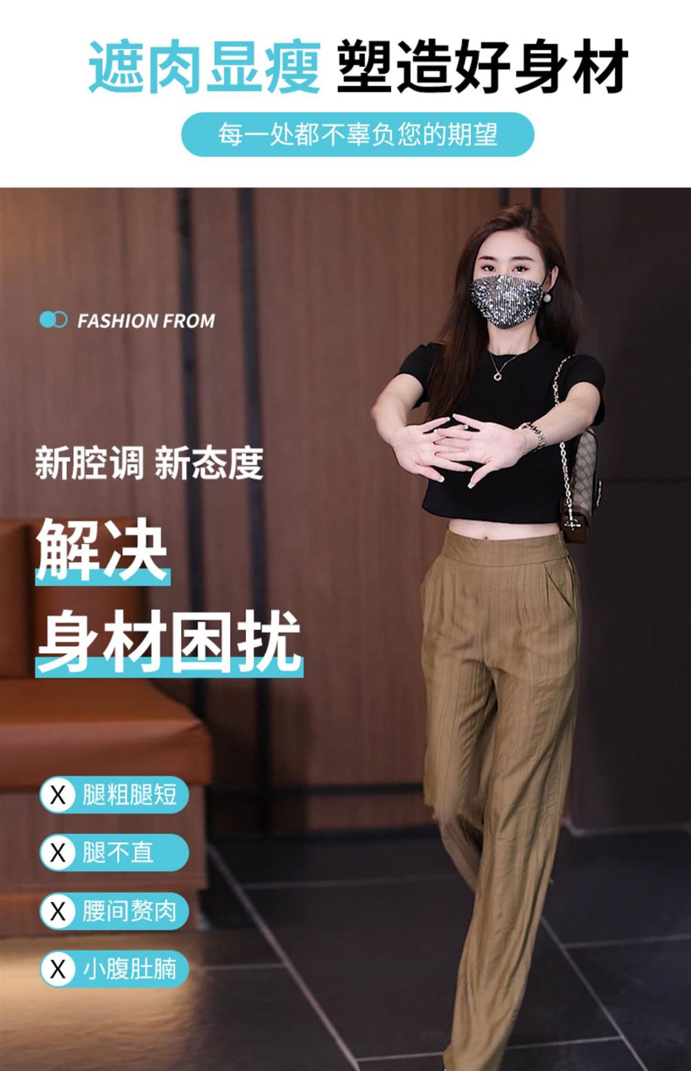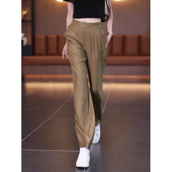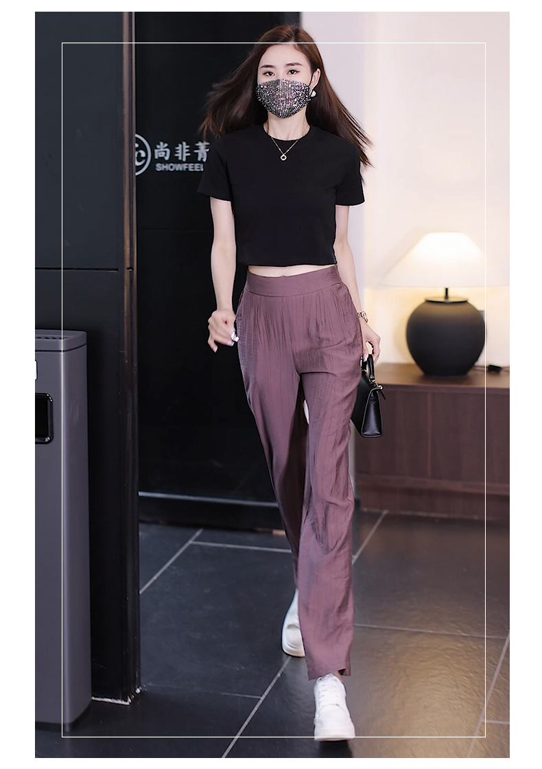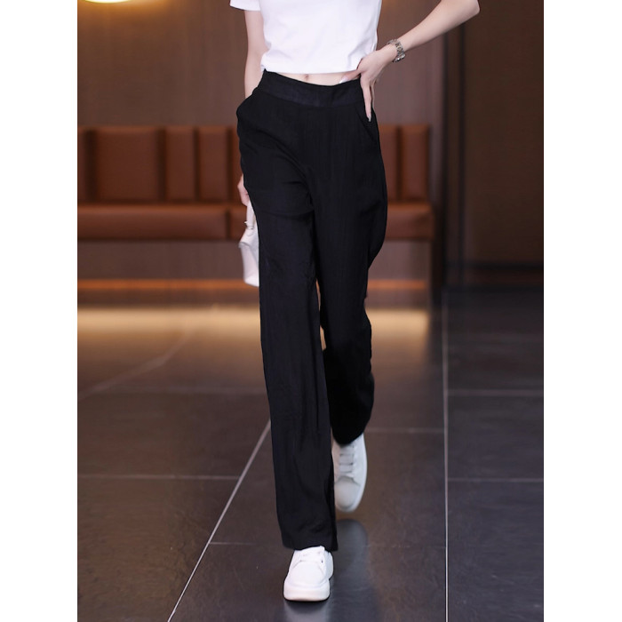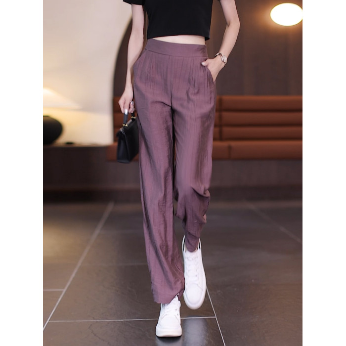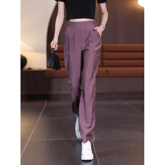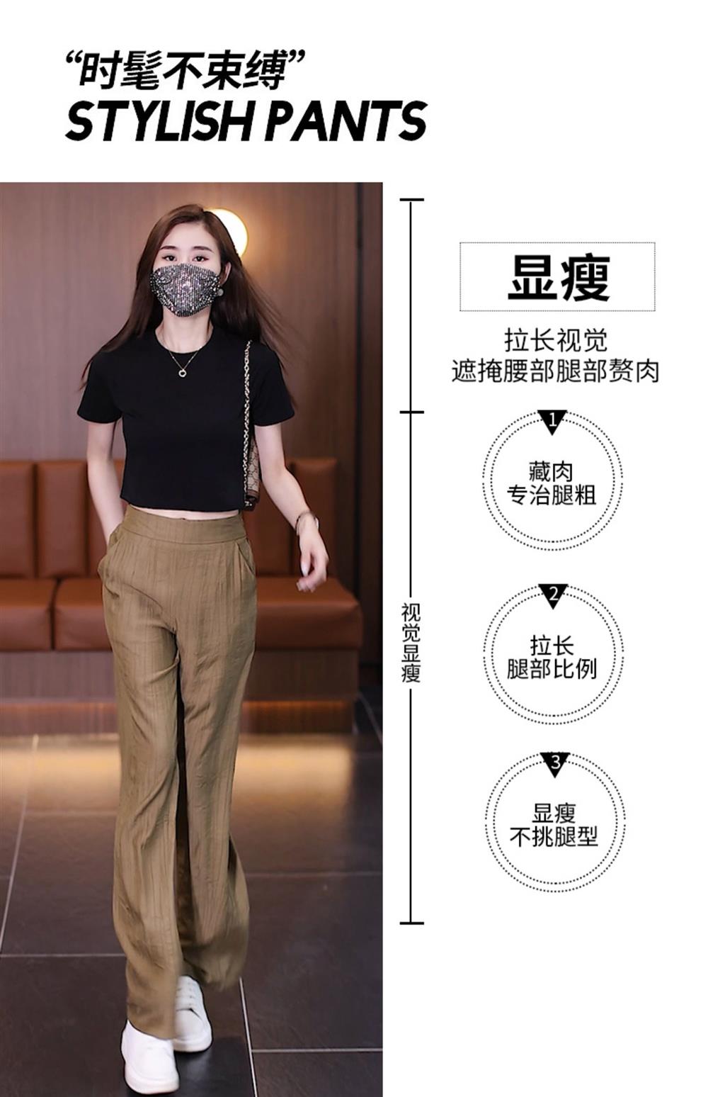 冰絲濶腿褲女夏季薄款2025年新款高腰寬松直筒褲垂感窄版休閒褲子
