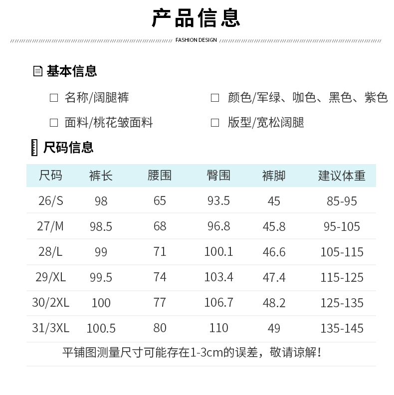 款式及尺寸: