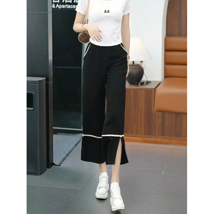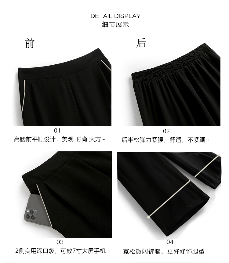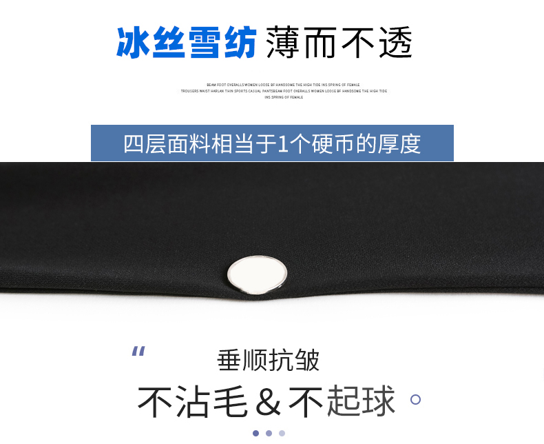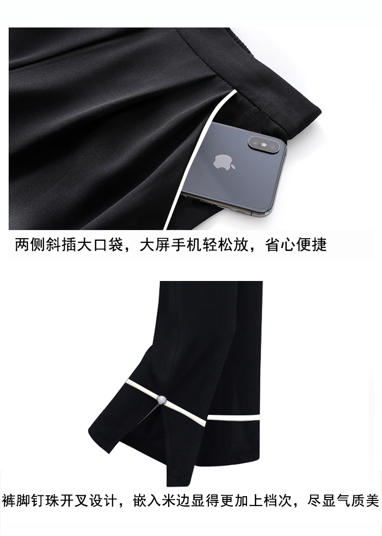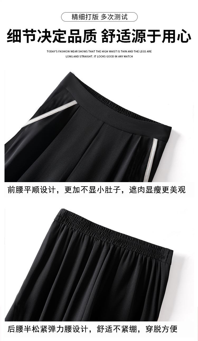 隅見丨濶腿褲女夏季雪紡黑色薄款高腰垂感七分寬松釘珠開叉九分褲