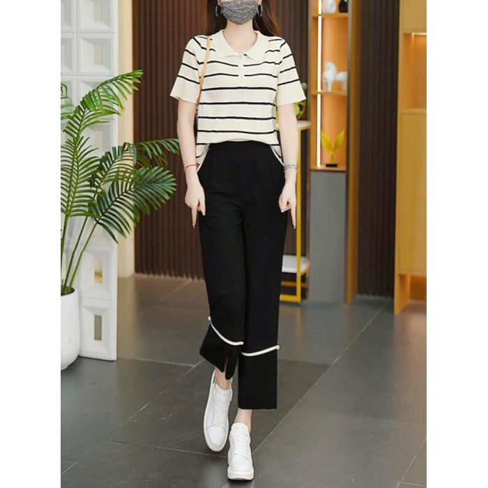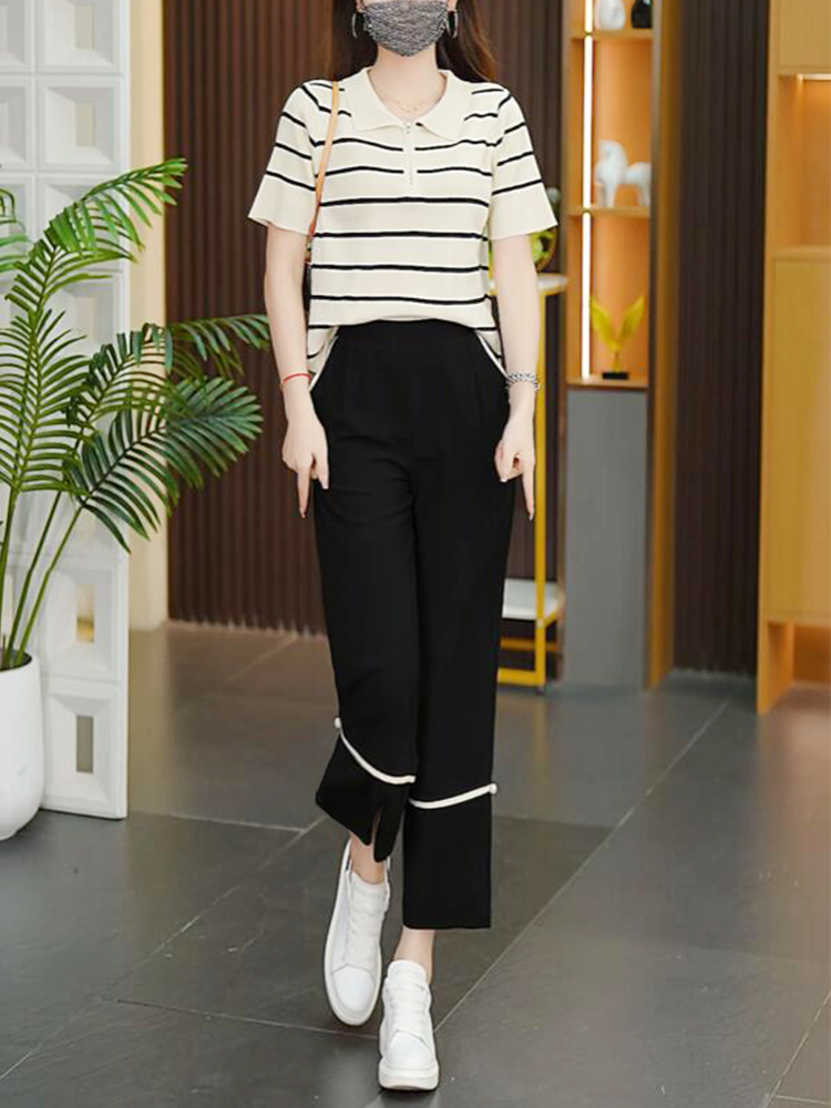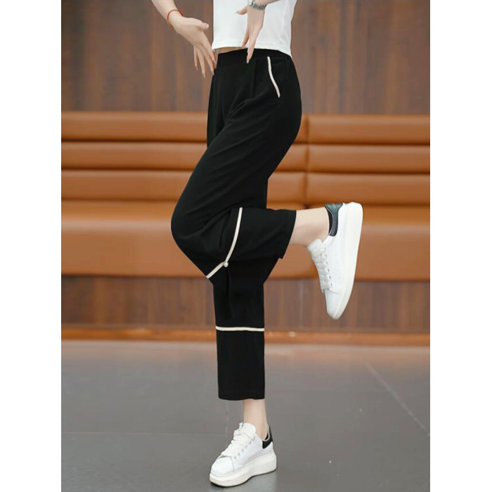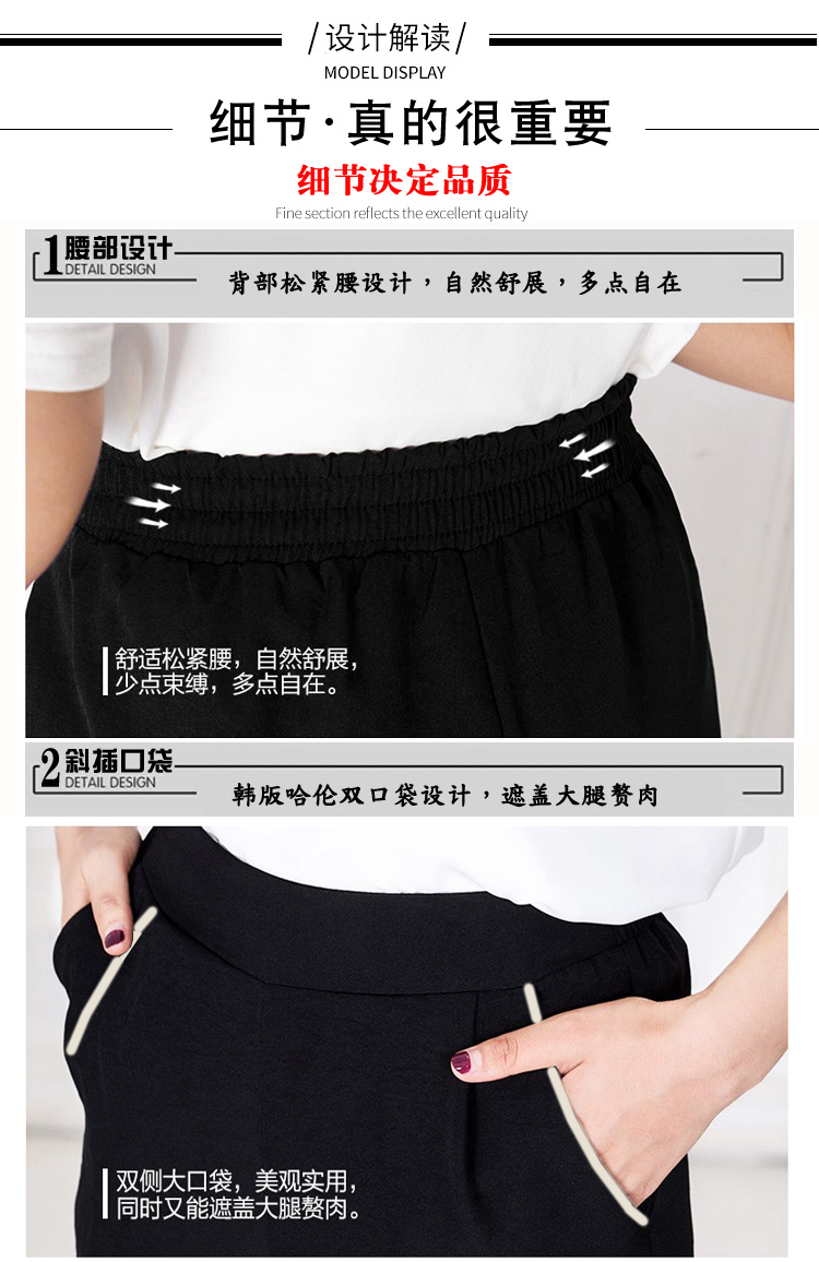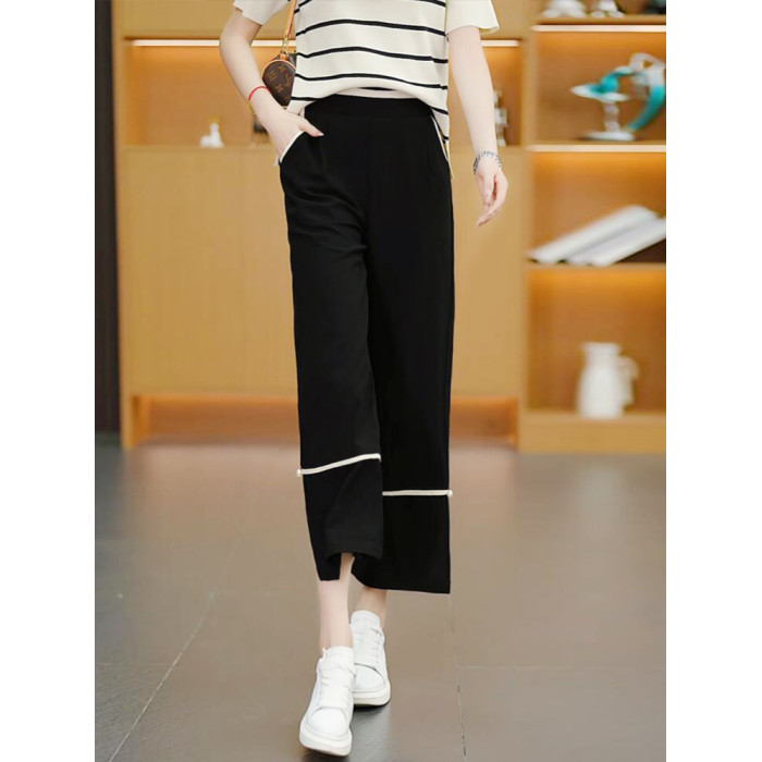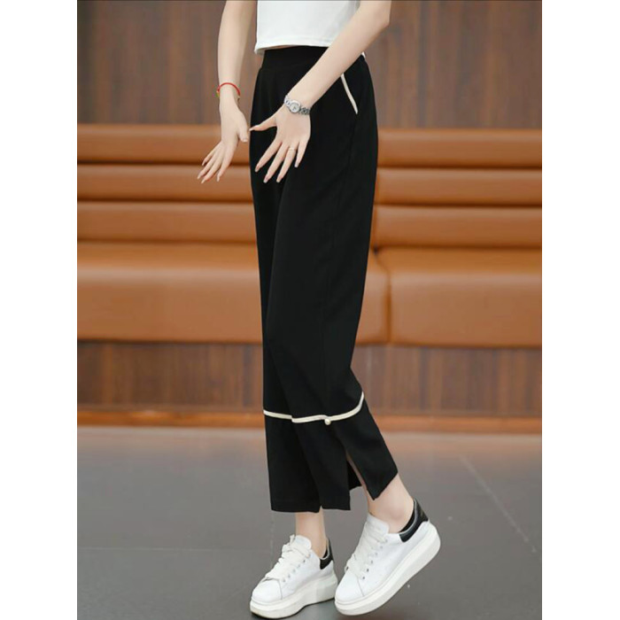 隅見丨濶腿褲女夏季雪紡黑色薄款高腰垂感七分寬松釘珠開叉九分褲