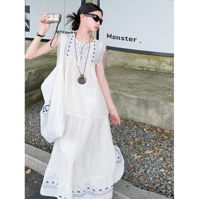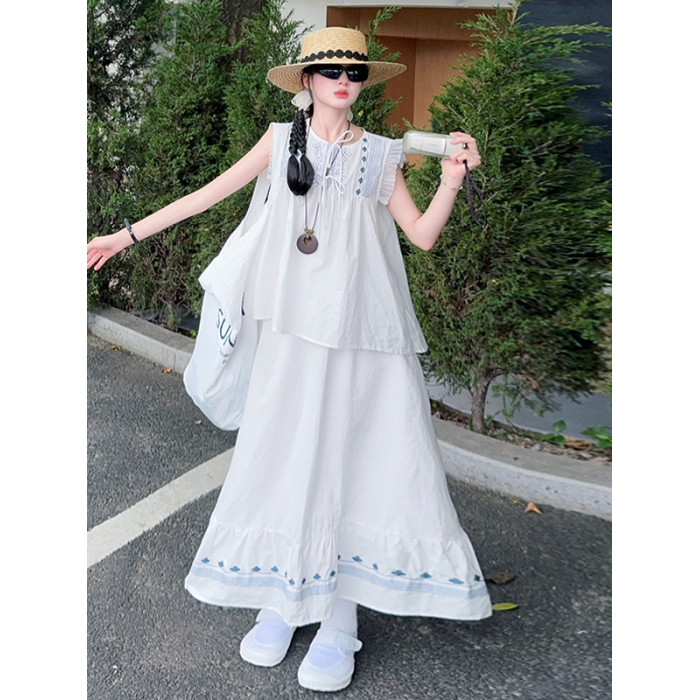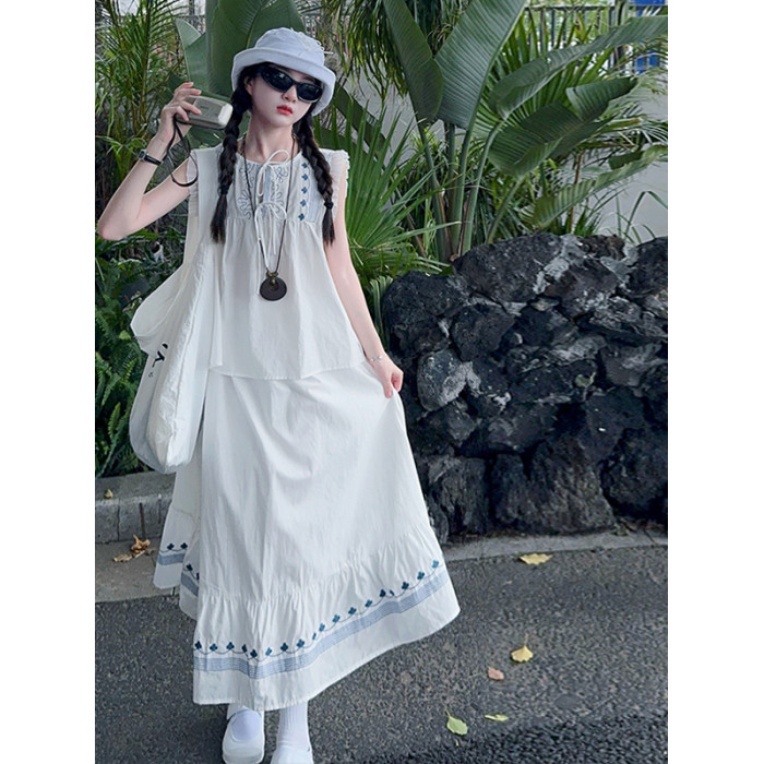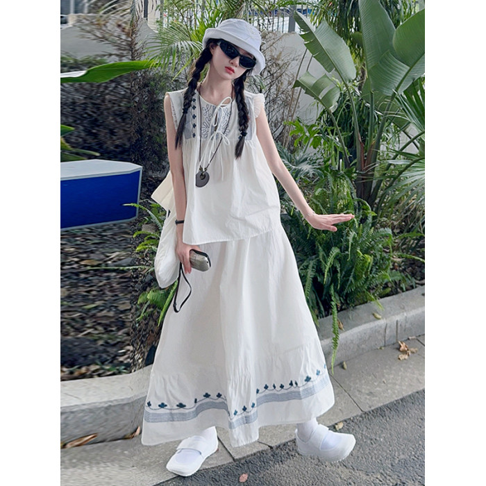女童夏季套裝2025新款韓版洋氣甜美無袖背心度假半身裙夏款兩件套