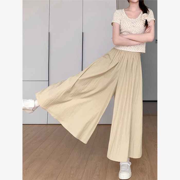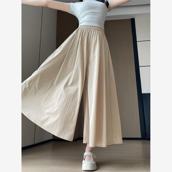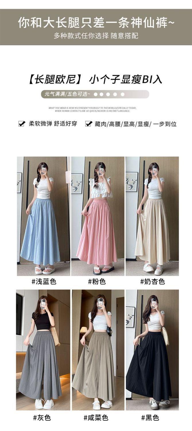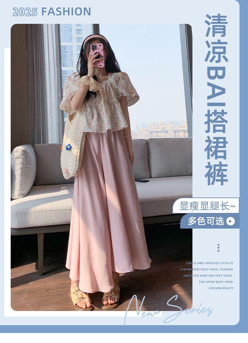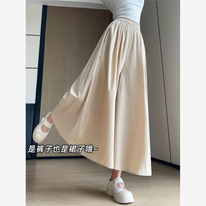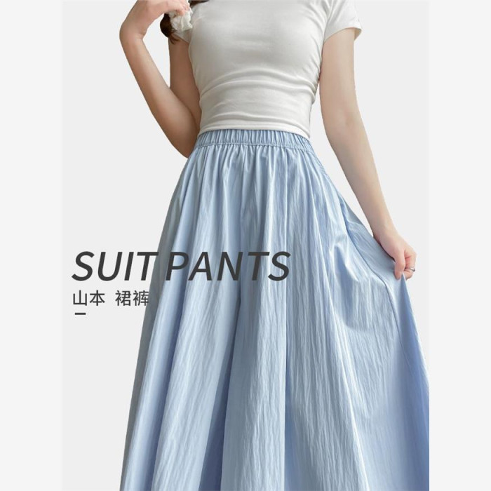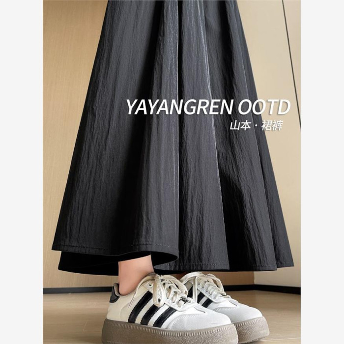 杏色山本裙褲女夏2025新款高腰顯瘦a字長裙休閒小個子慵懶濶腿褲