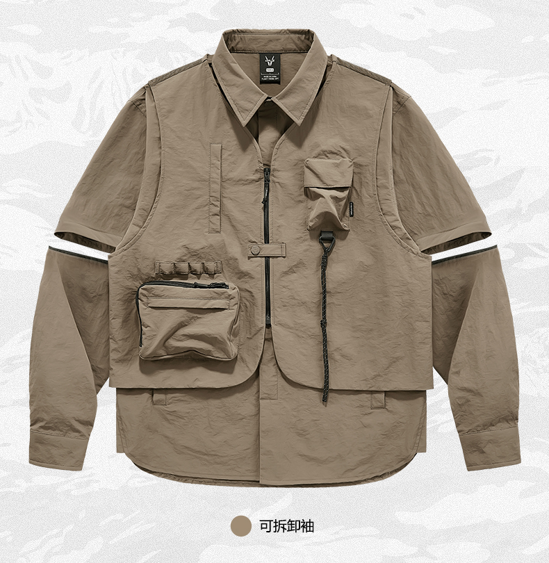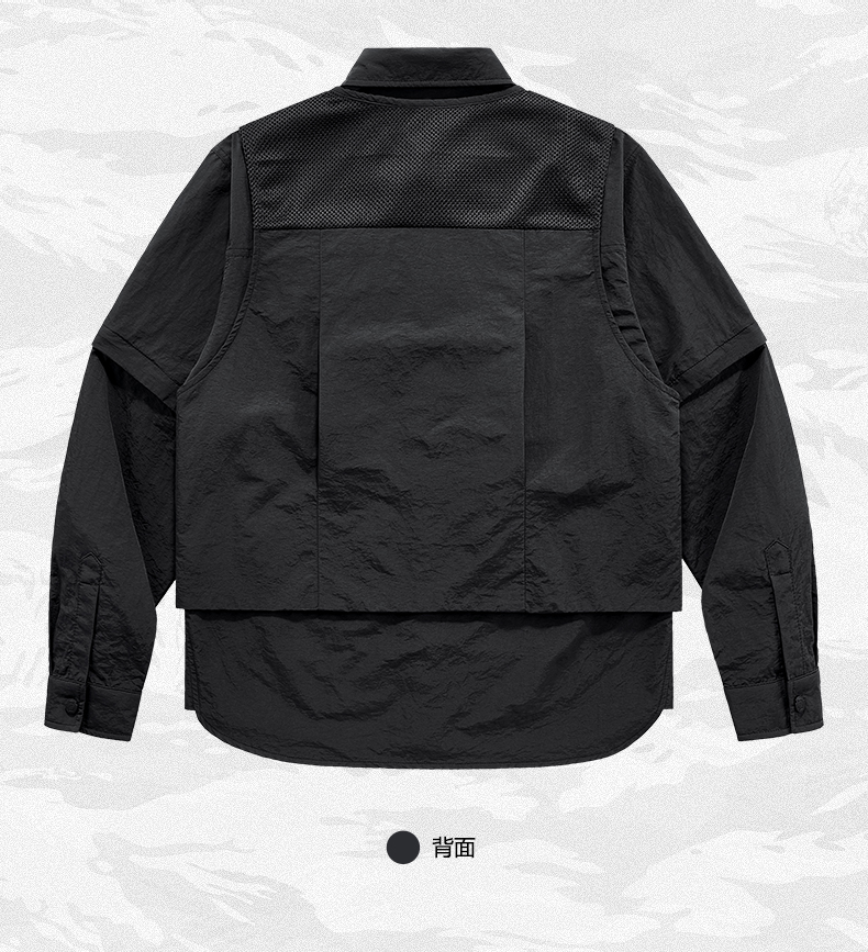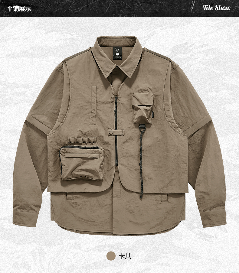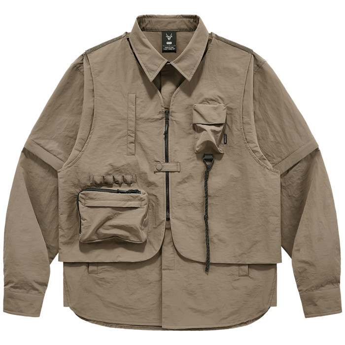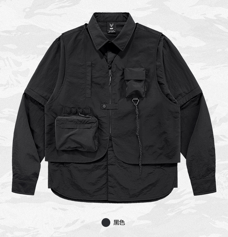 VIP假兩件長袖襯衫男潮牌設計感馬甲拼接多口袋戶外工裝襯衣外套