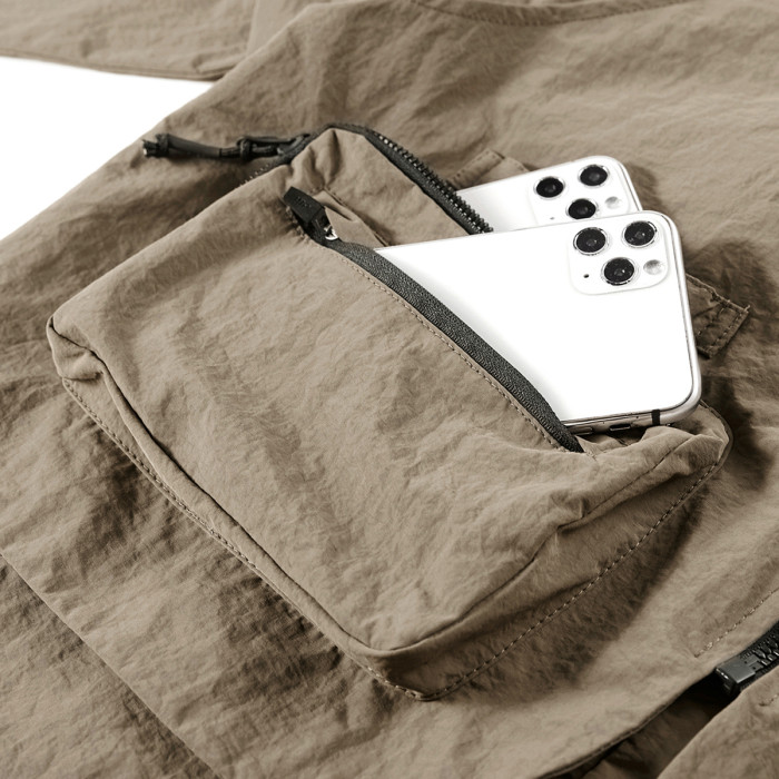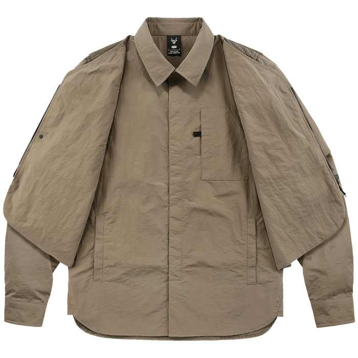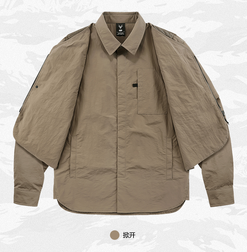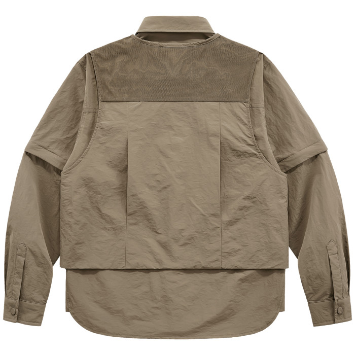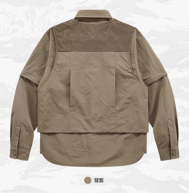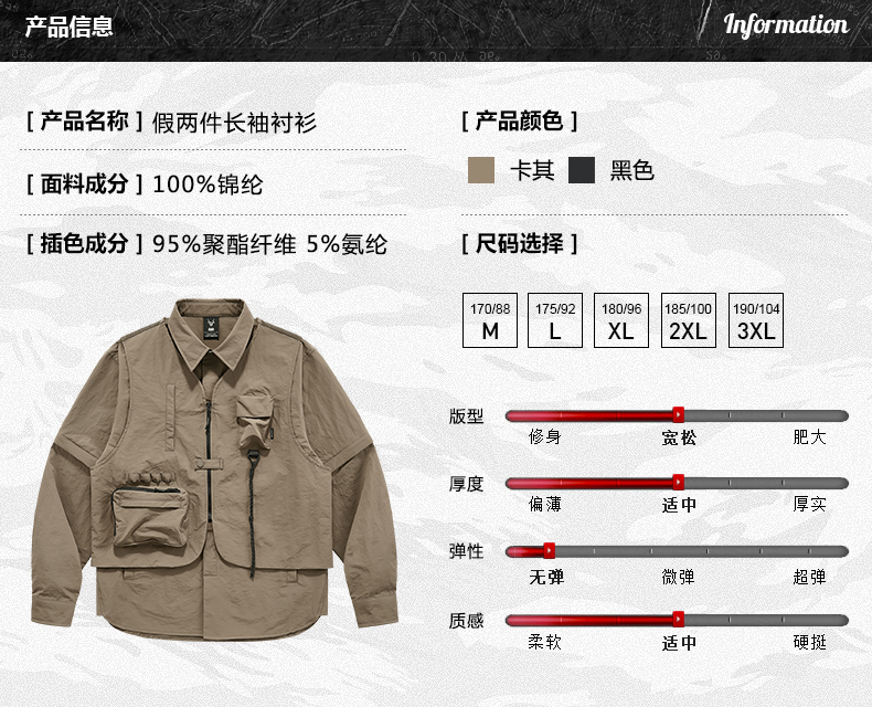 VIP假兩件長袖襯衫男潮牌設計感馬甲拼接多口袋戶外工裝襯衣外套