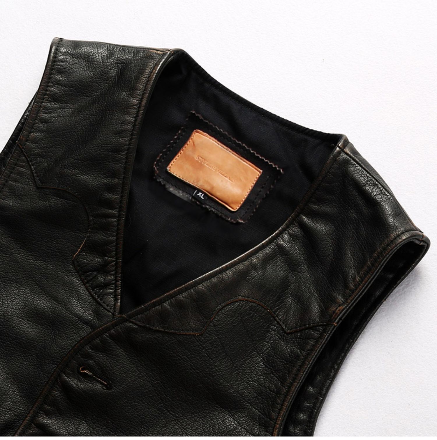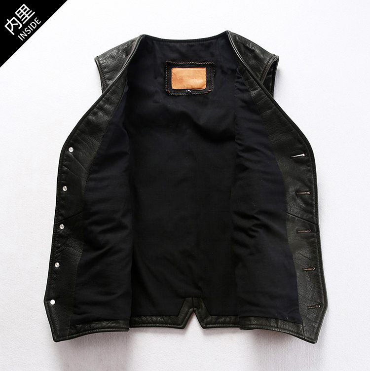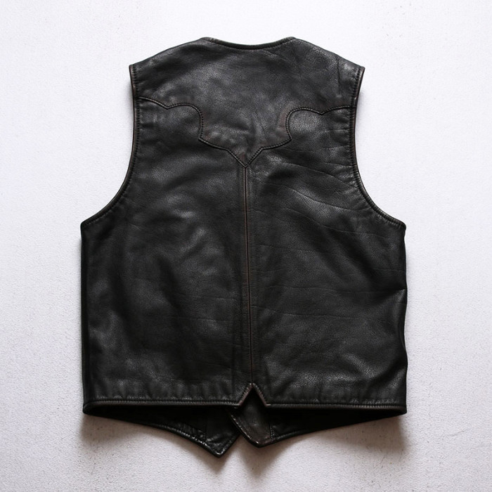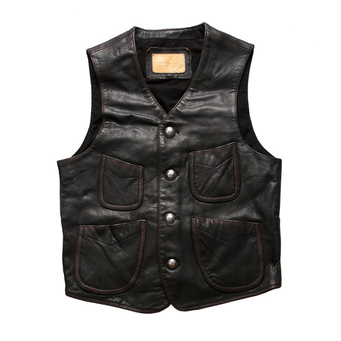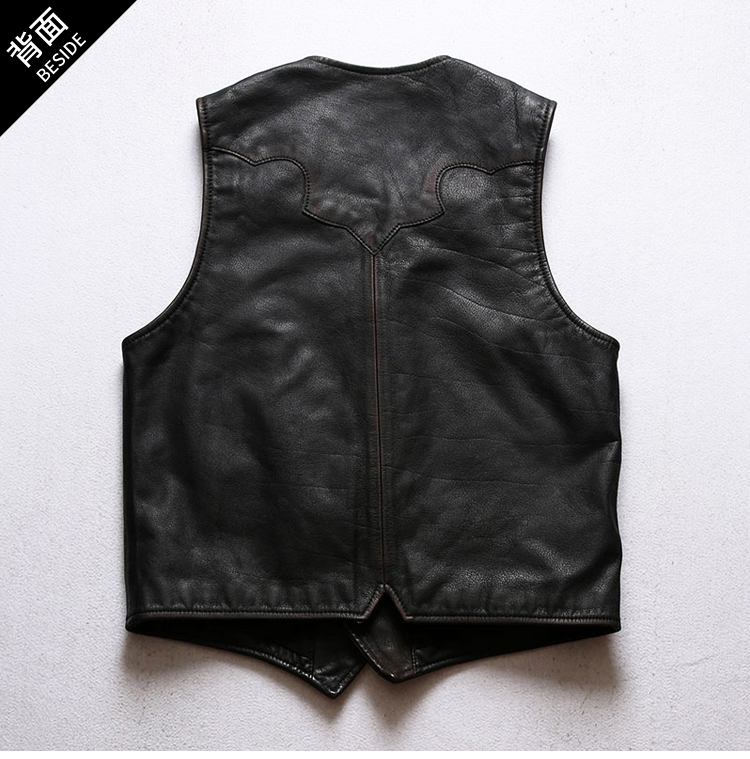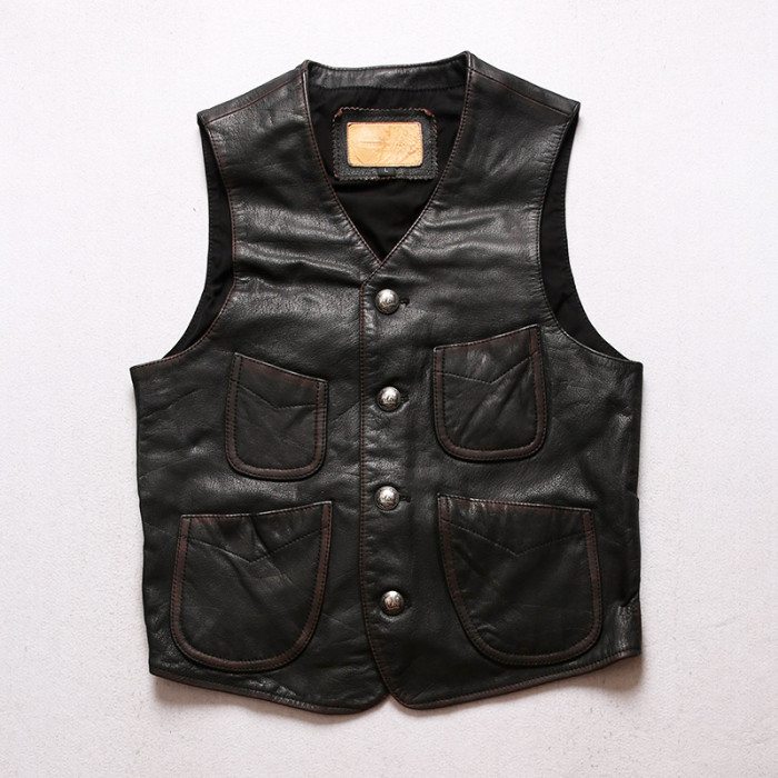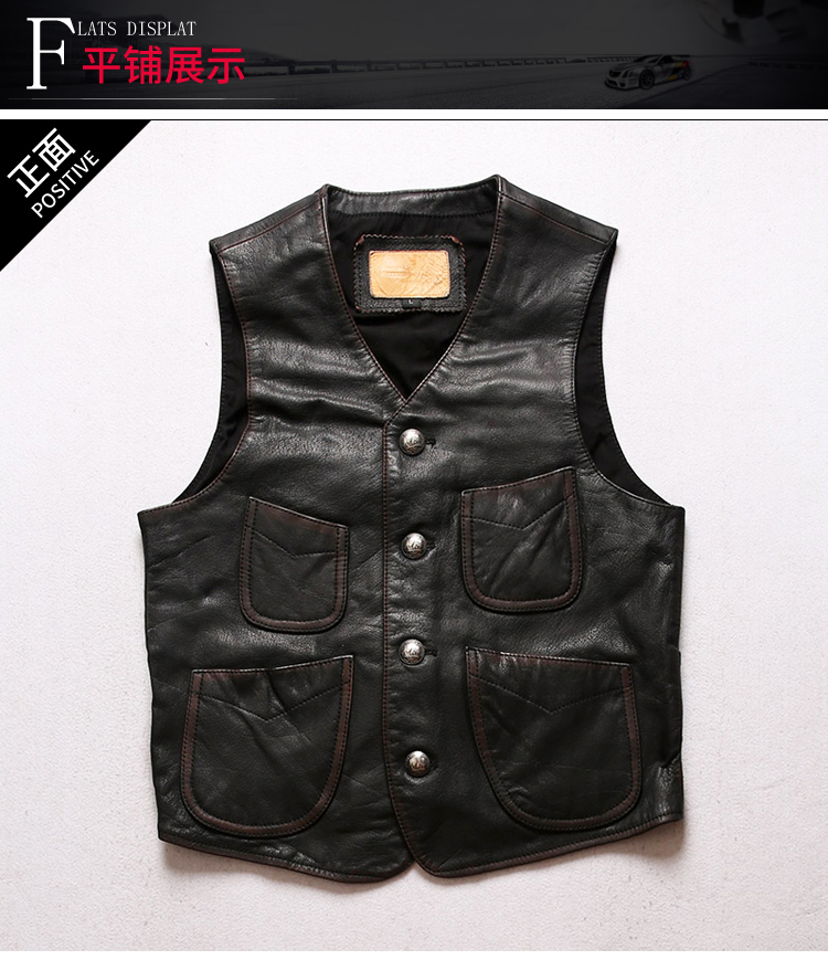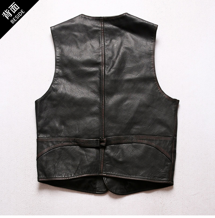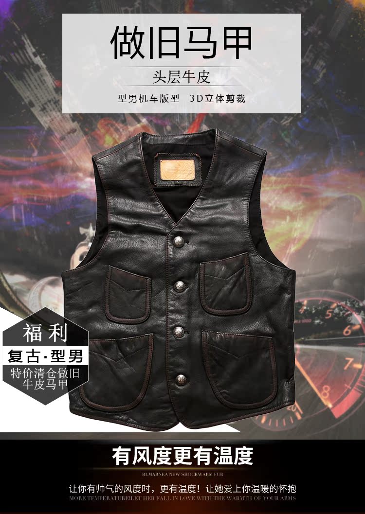日系復古雙色做舊頭層牛皮馬甲 阿美哢嘰做舊多口袋真皮機車馬甲