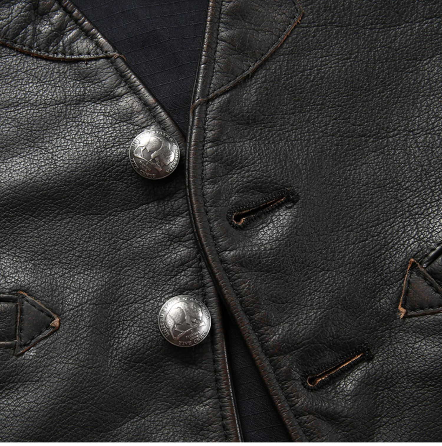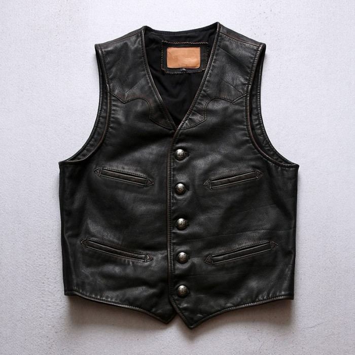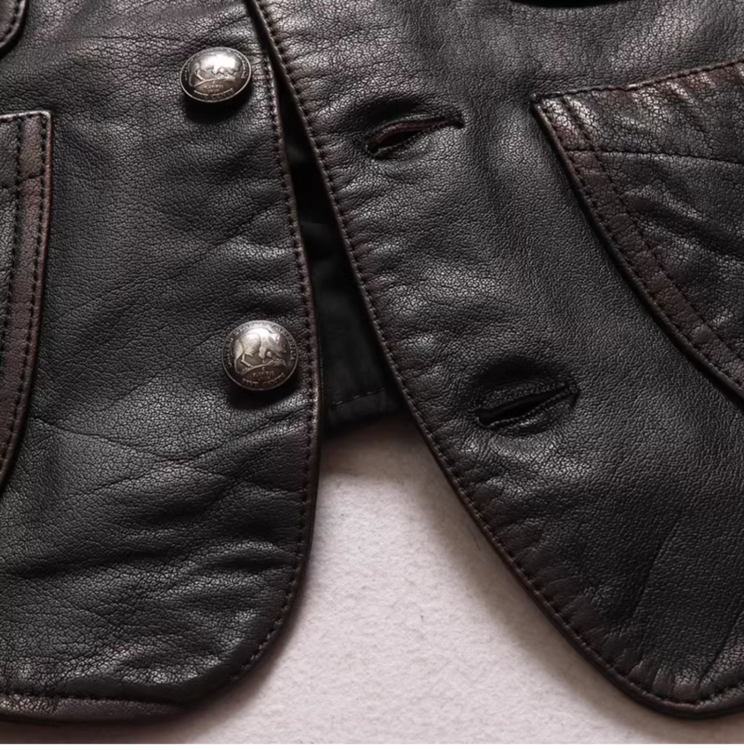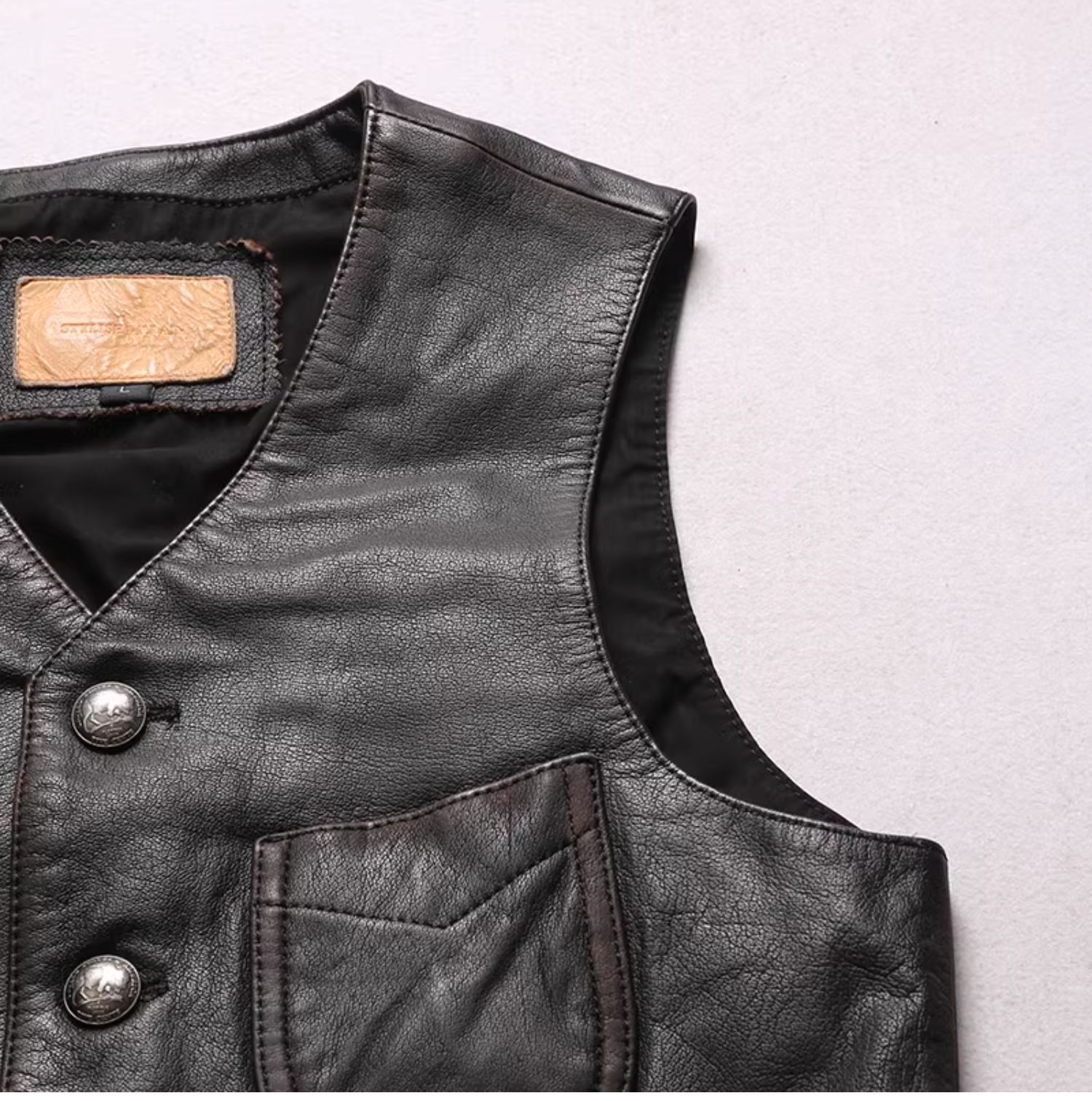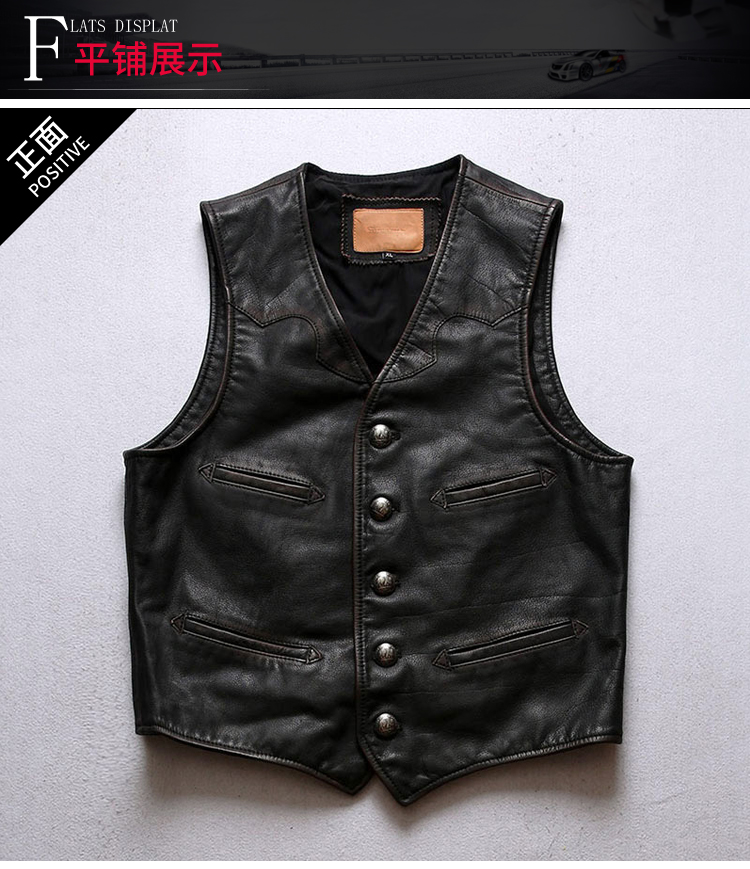 日系復古雙色做舊頭層牛皮馬甲 阿美哢嘰做舊多口袋真皮機車馬甲