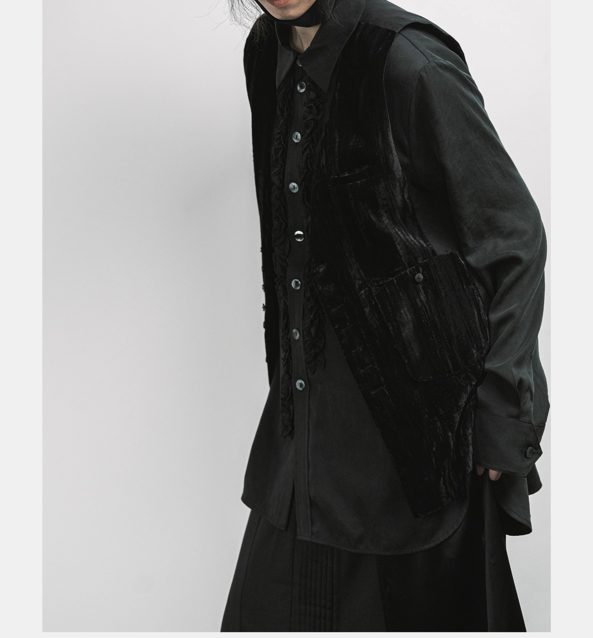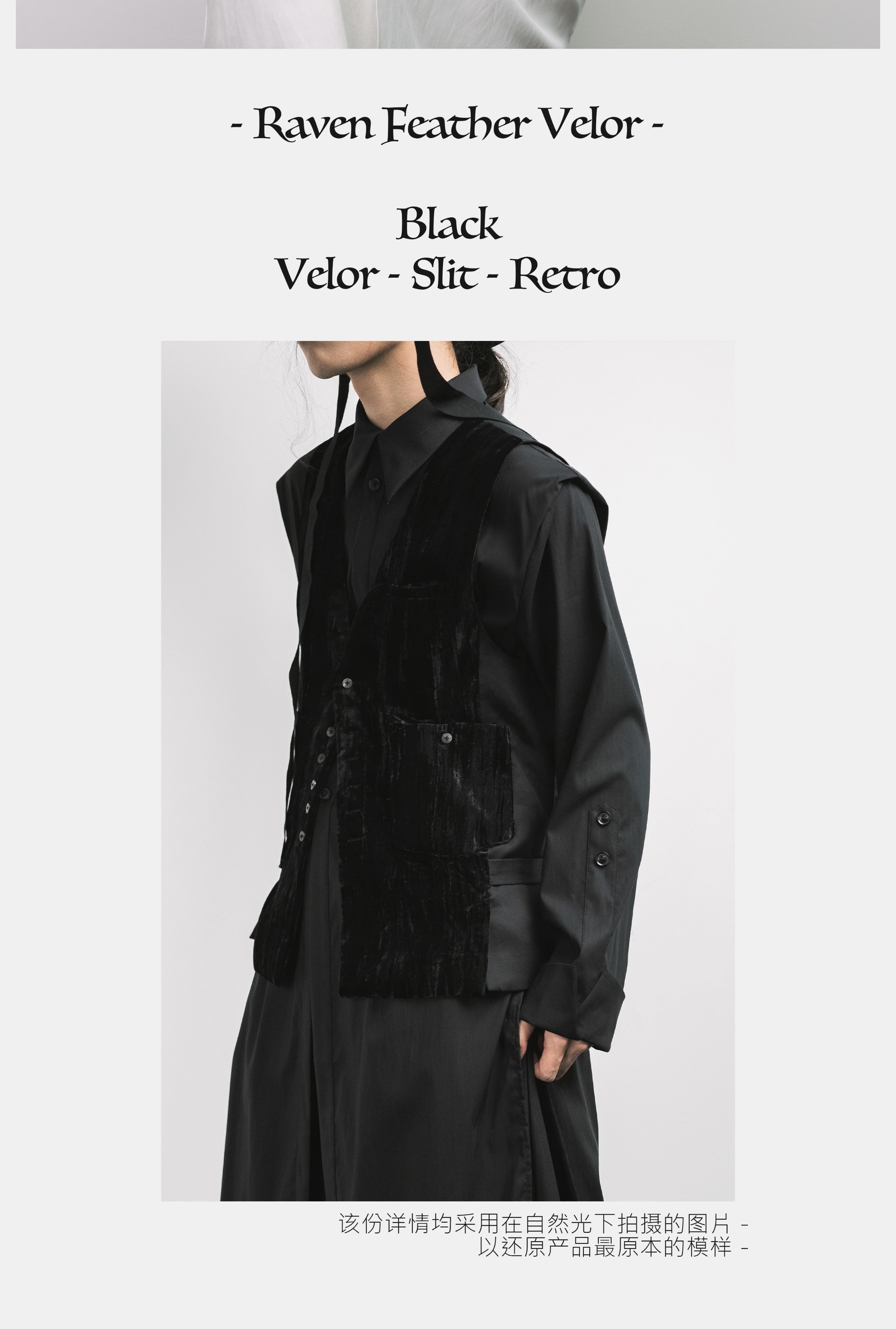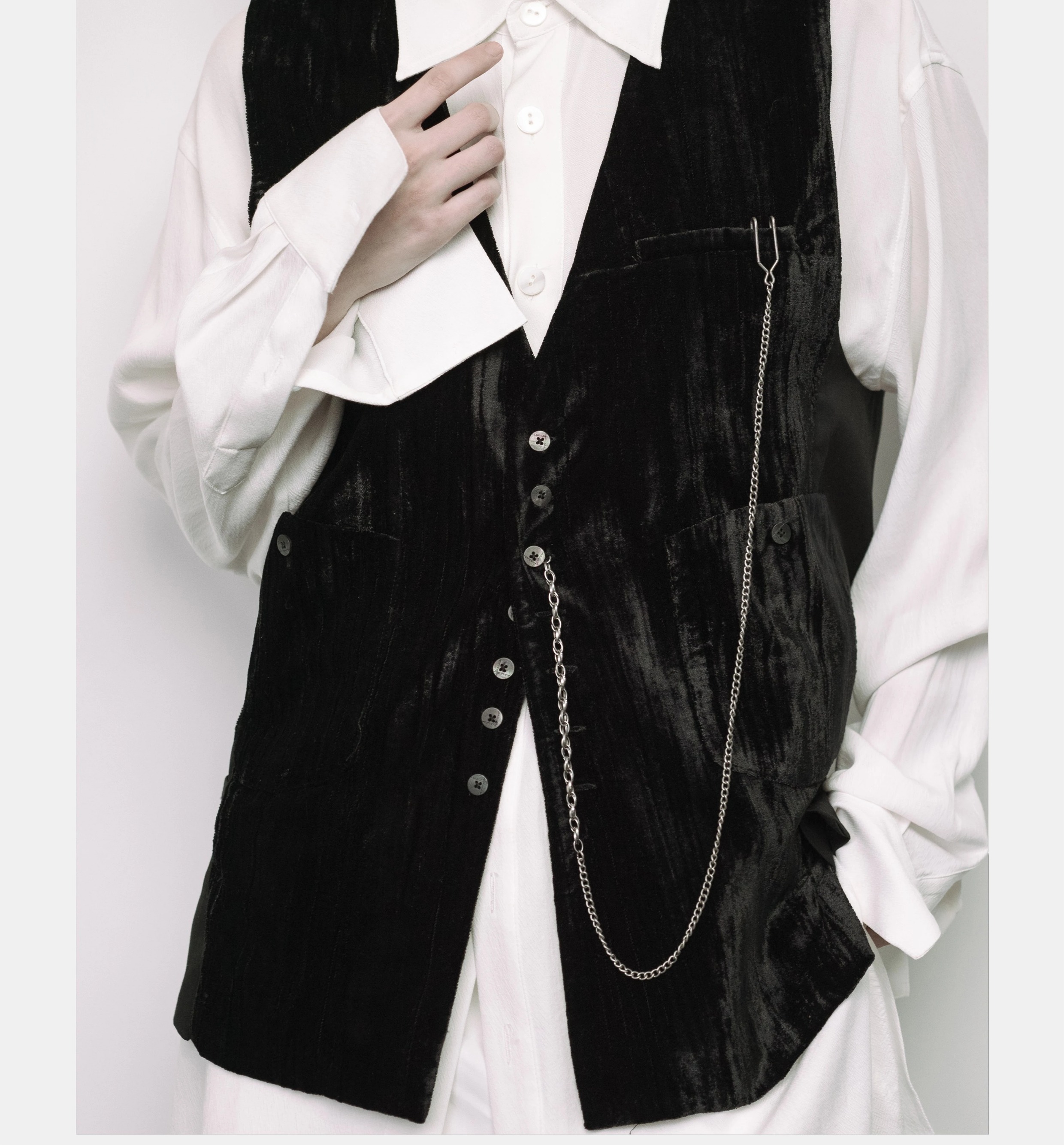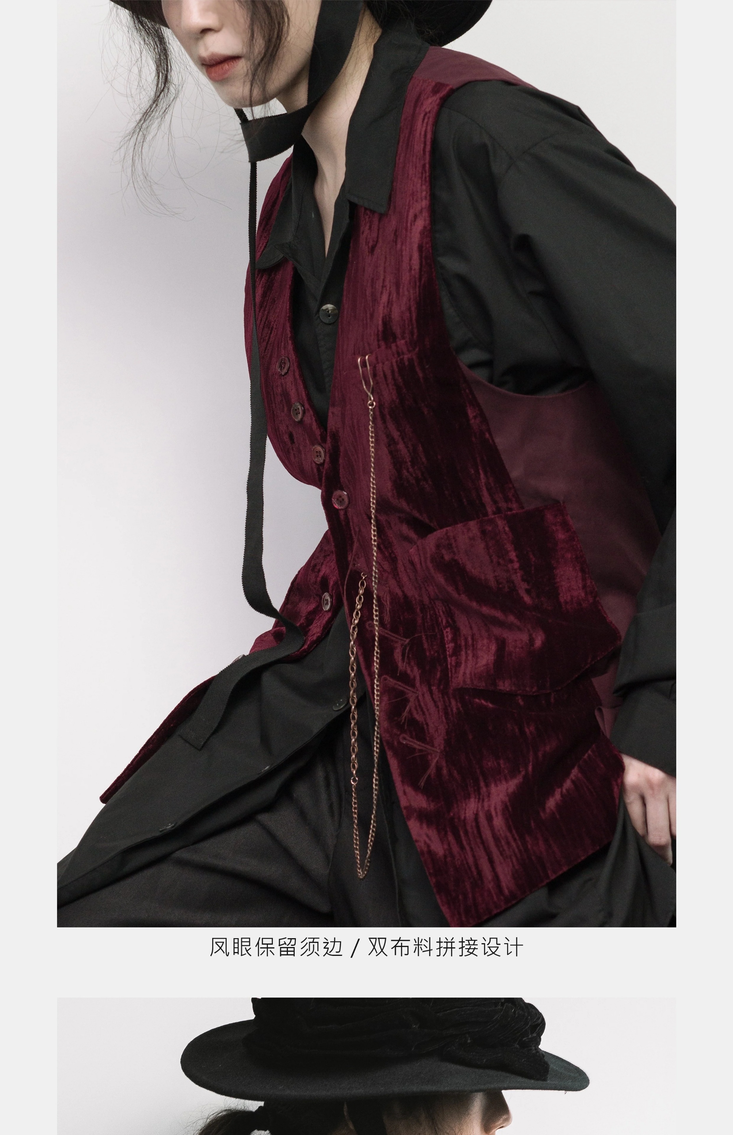 「 淩鴉ILNya 」月海_黑 烏羽絲絨馬甲 優雅印花掛鏈拼接馬夾