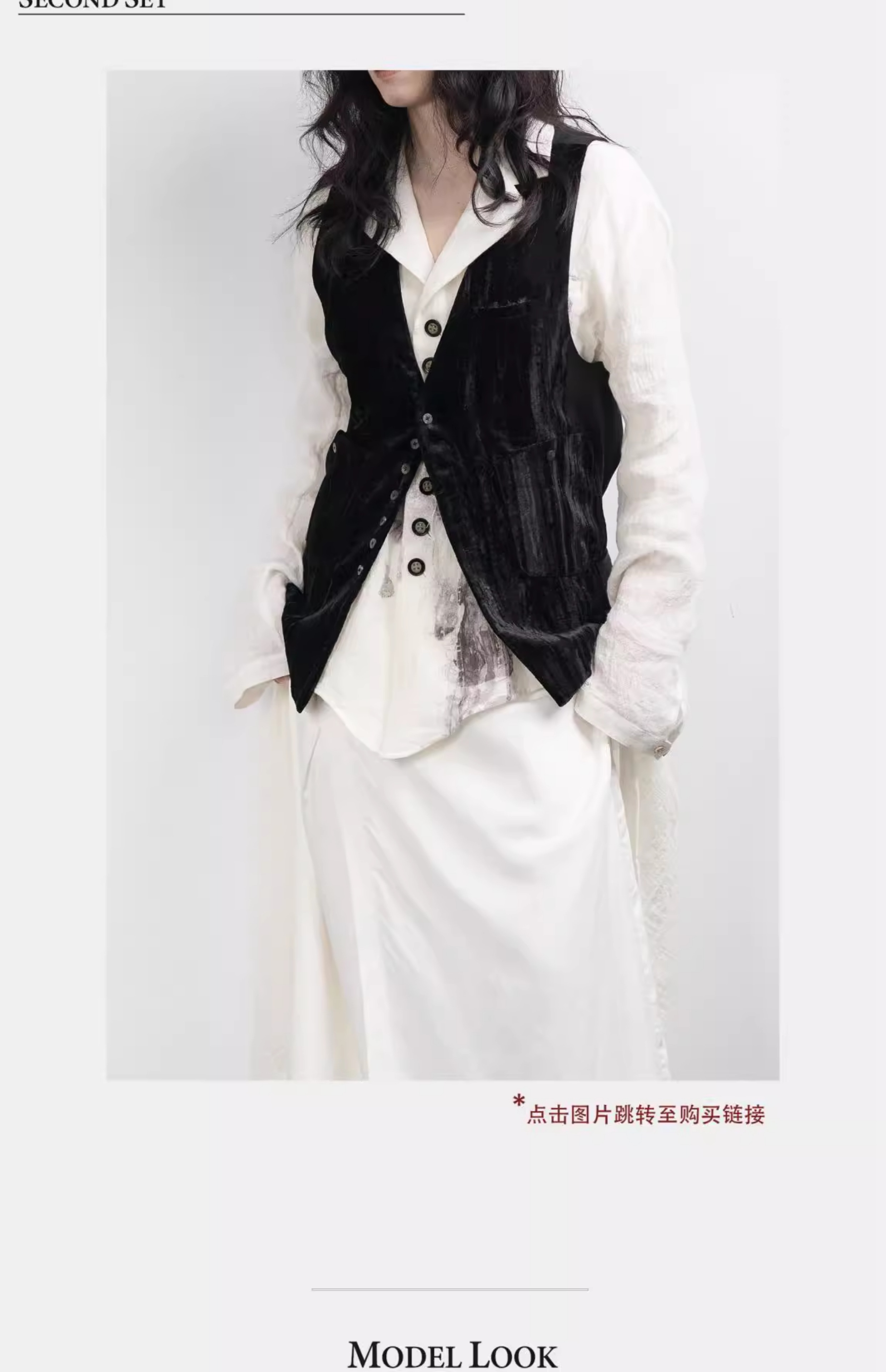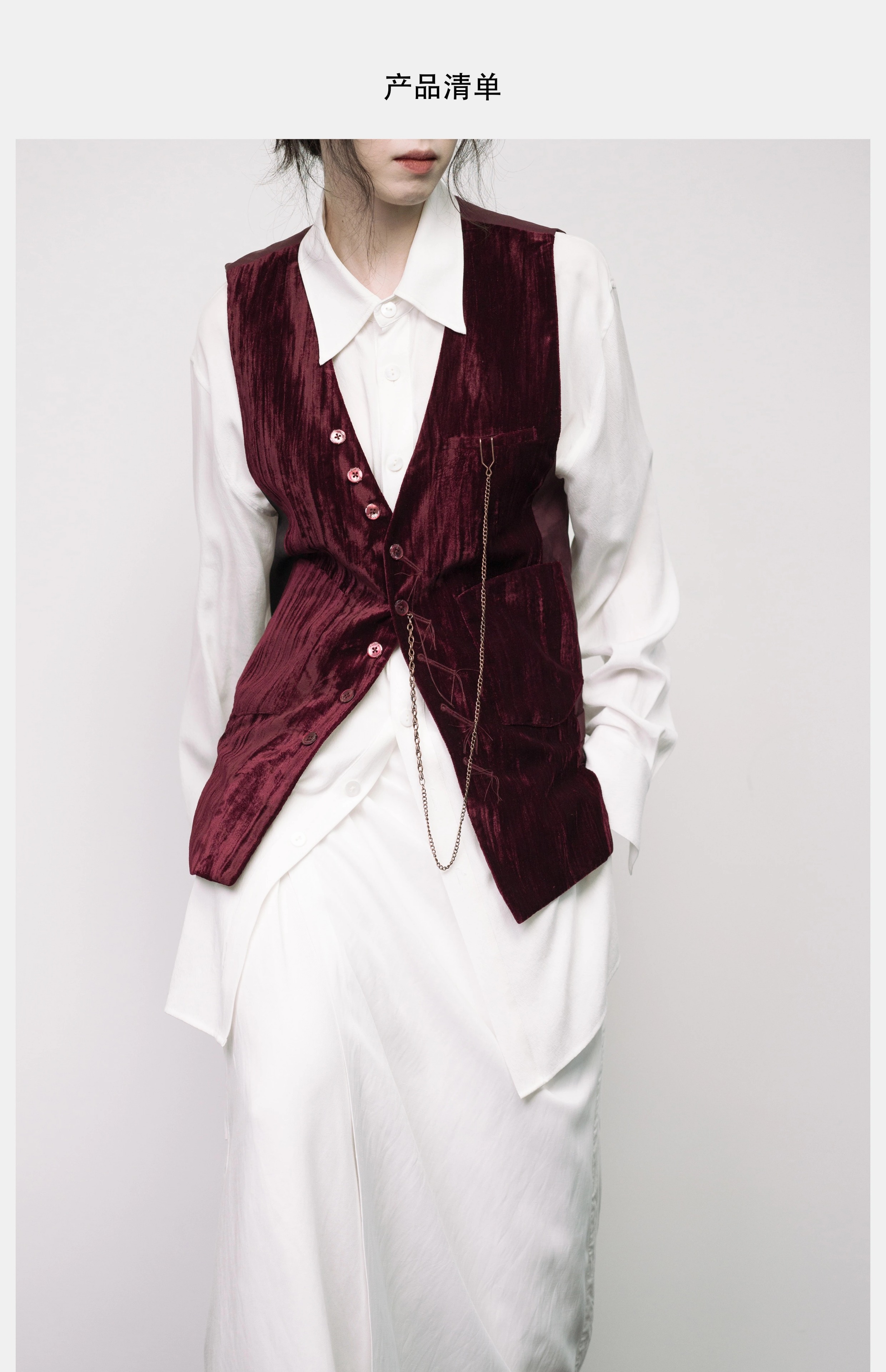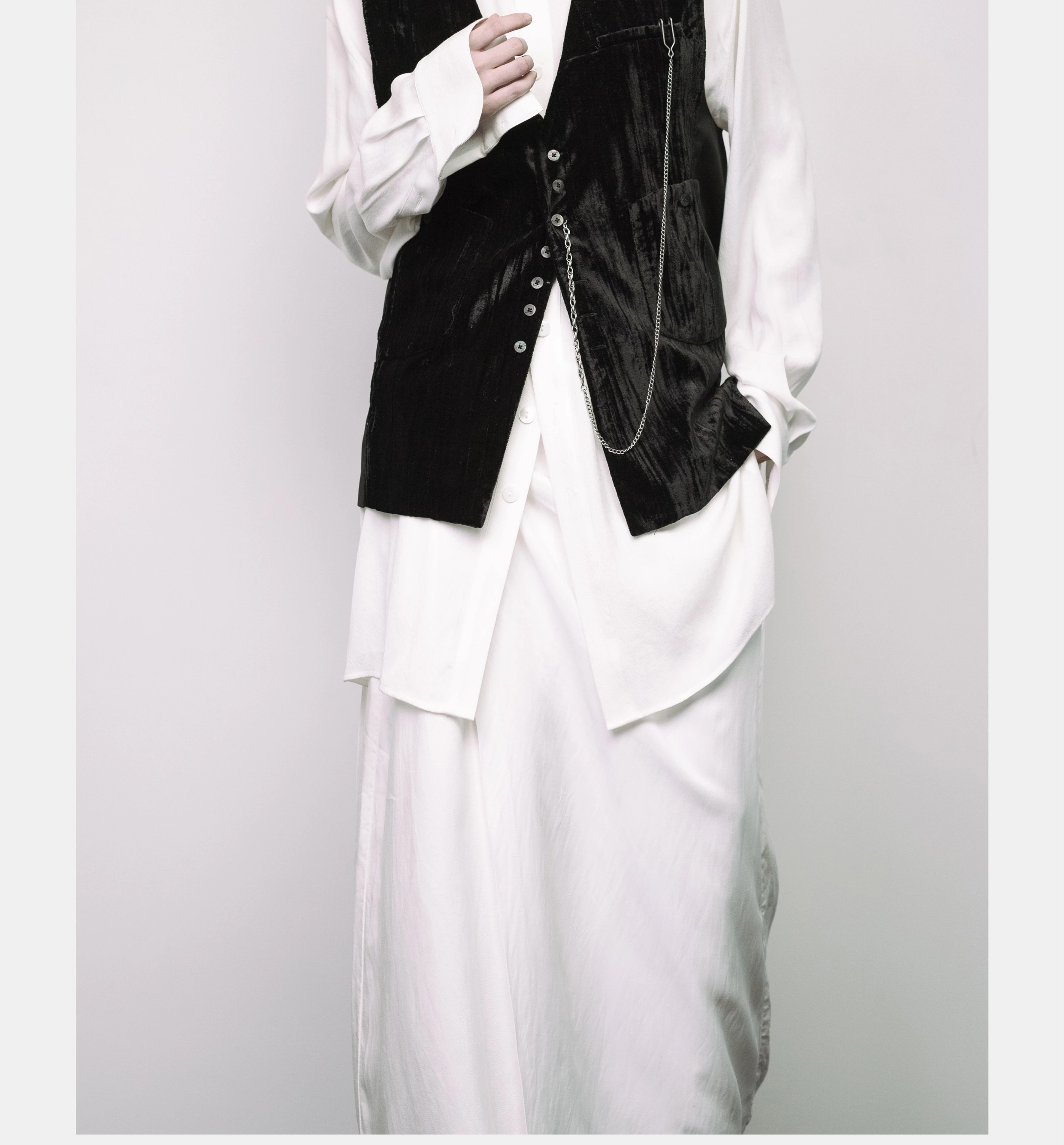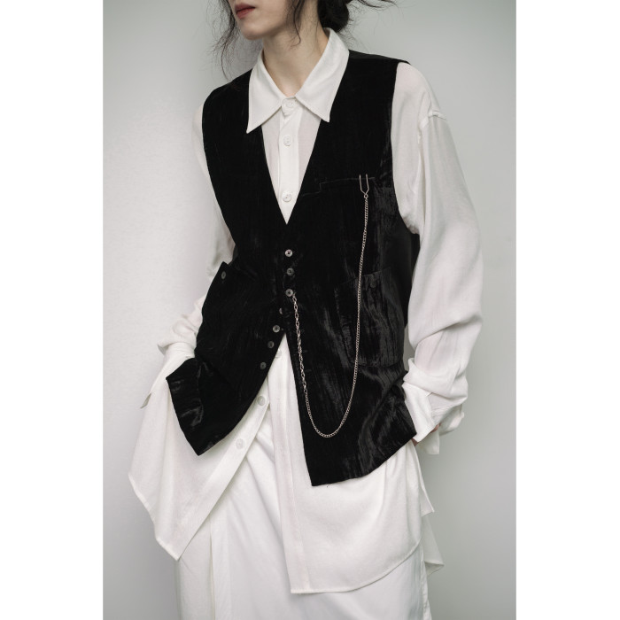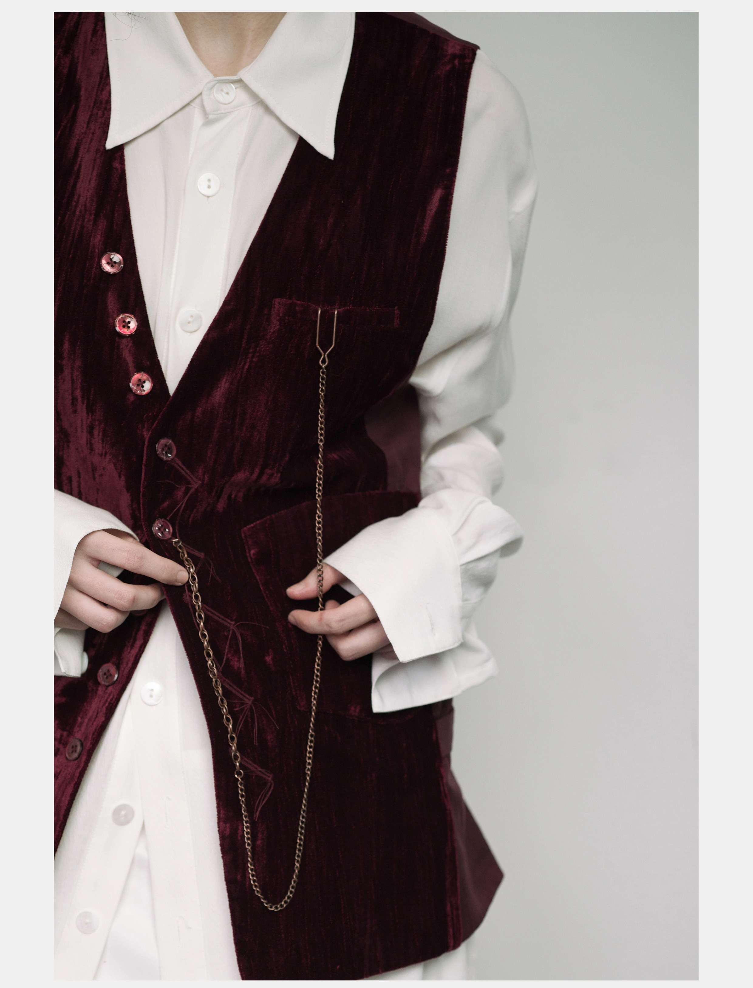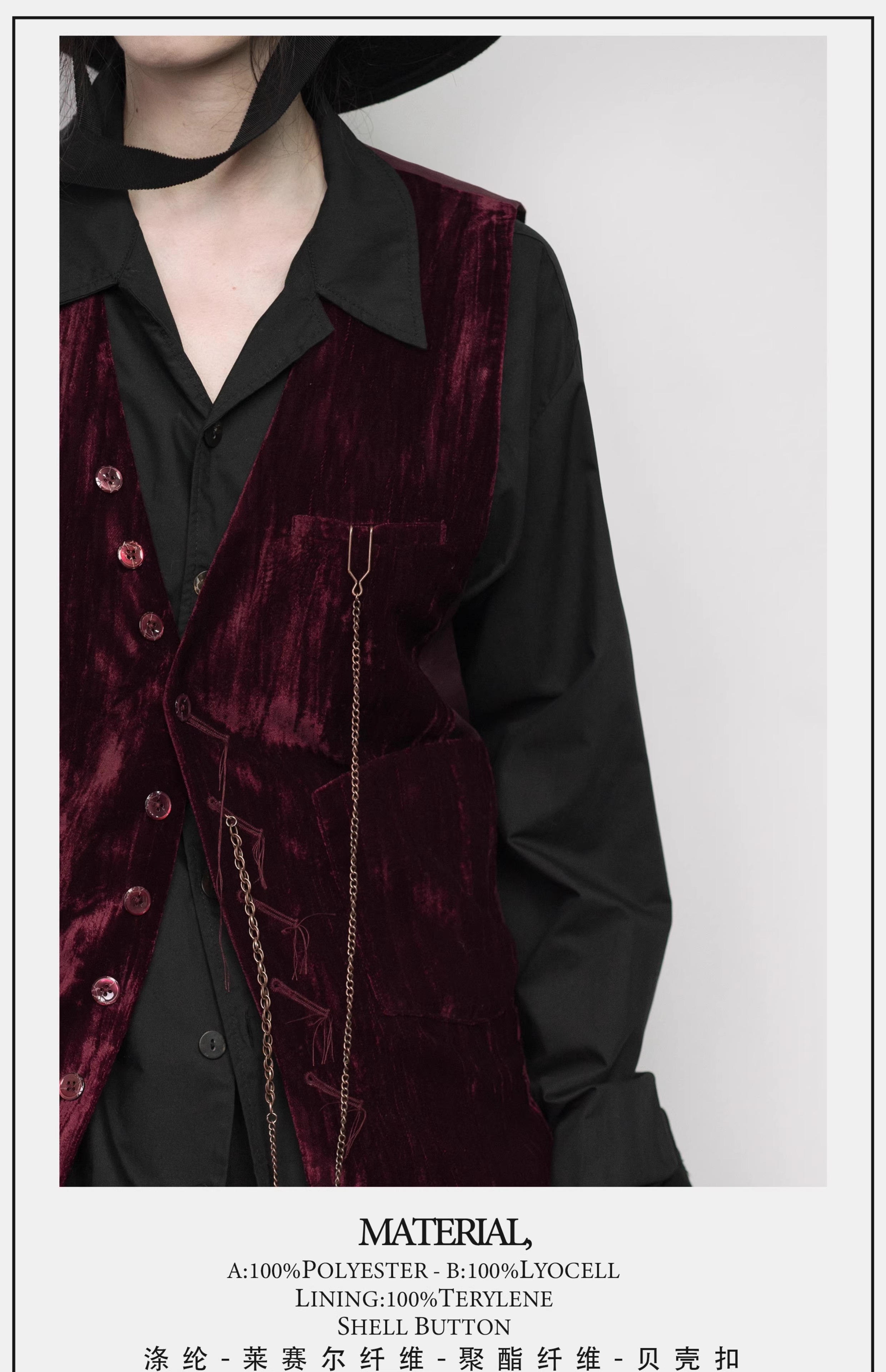 「 淩鴉ILNya 」月海_黑 烏羽絲絨馬甲 優雅印花掛鏈拼接馬夾