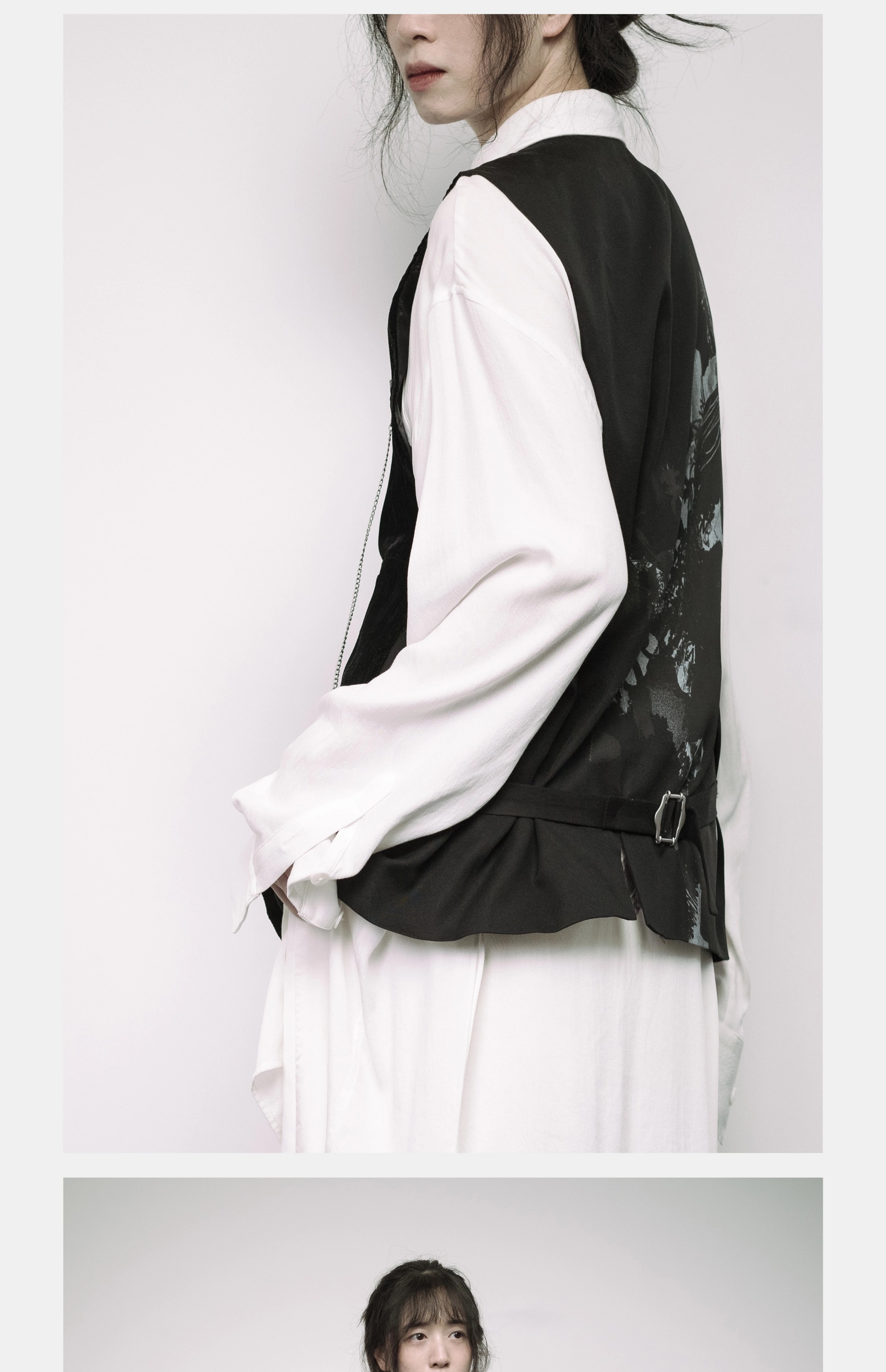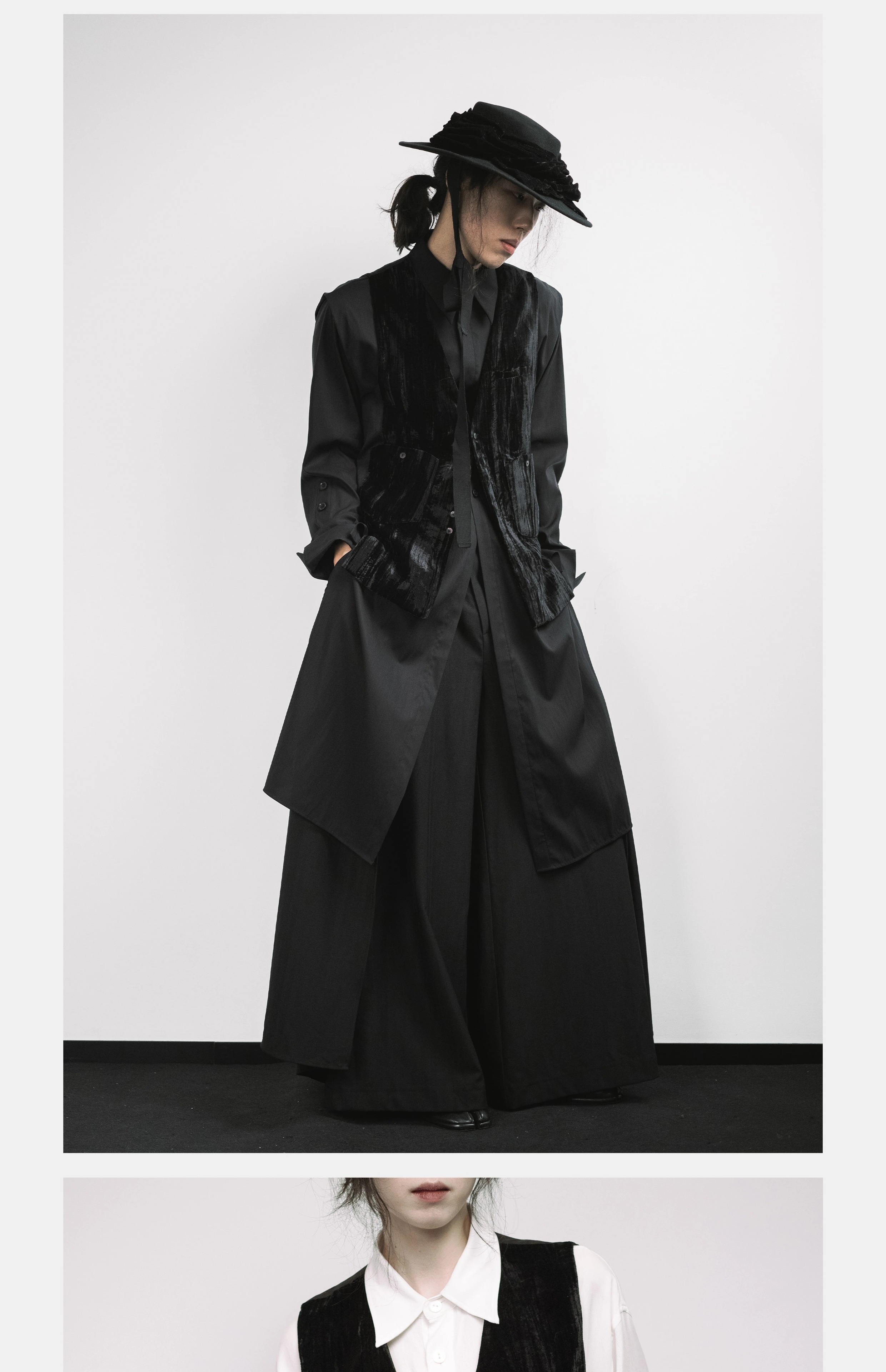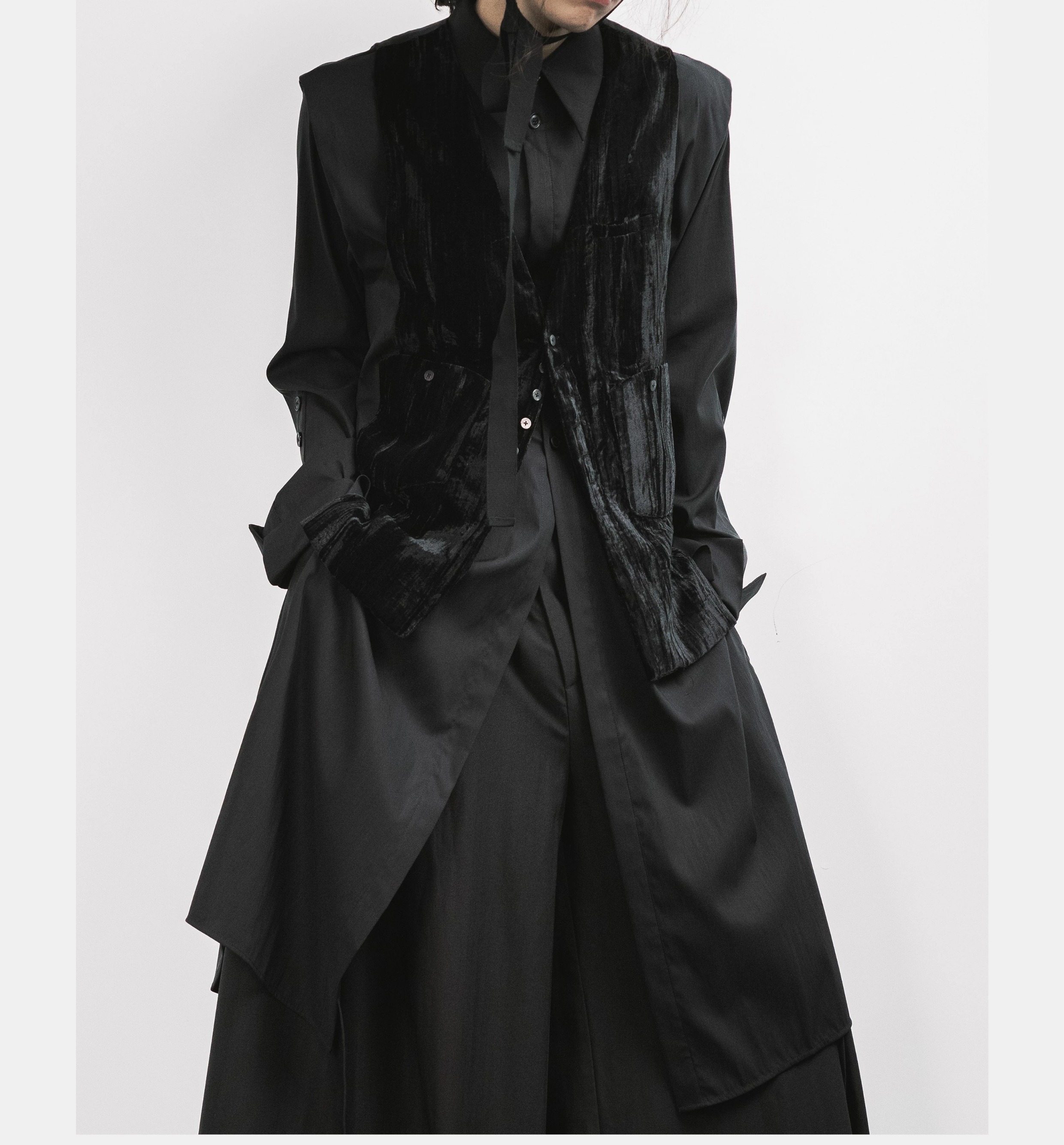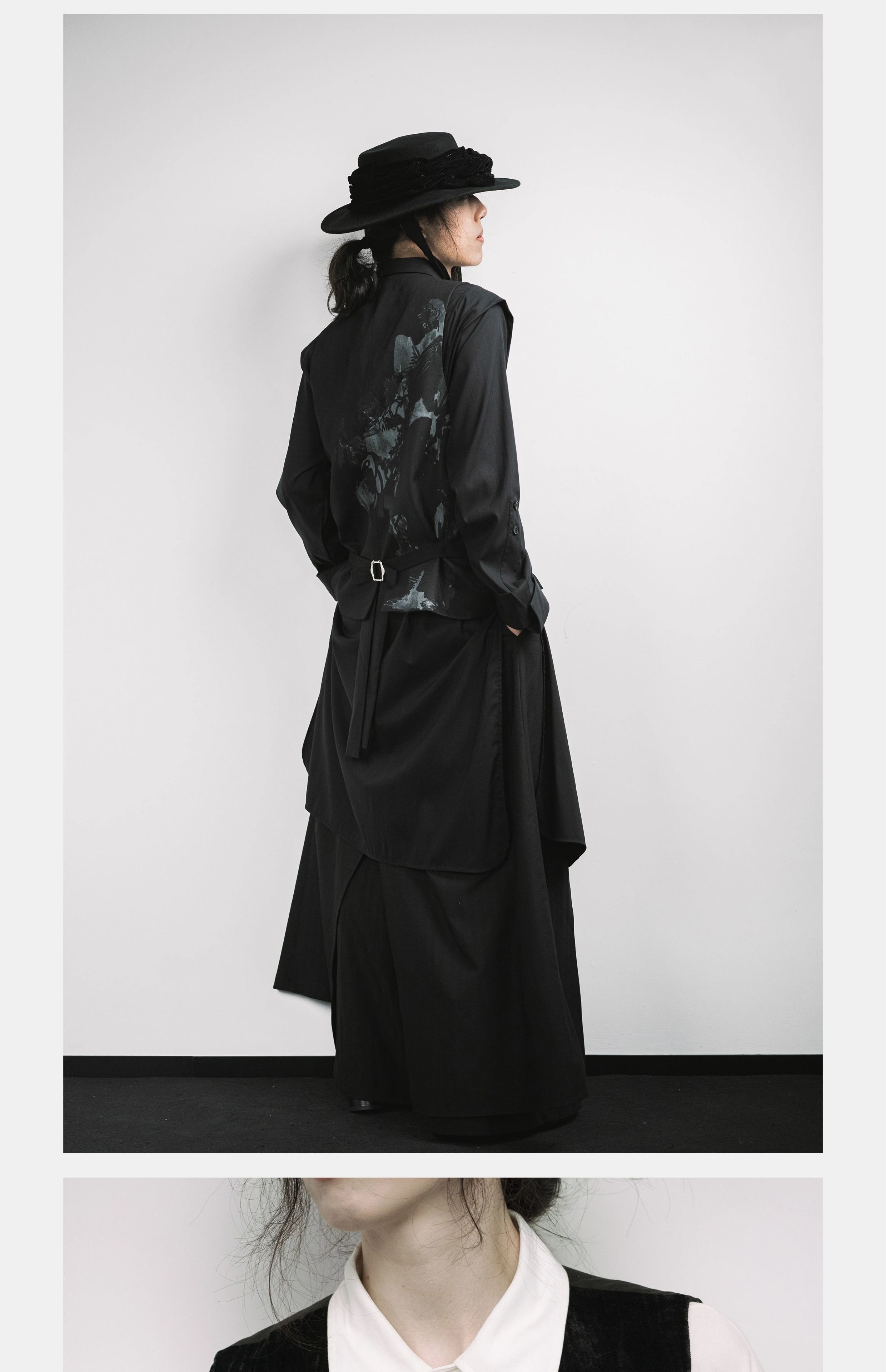 「 淩鴉ILNya 」月海_黑 烏羽絲絨馬甲 優雅印花掛鏈拼接馬夾