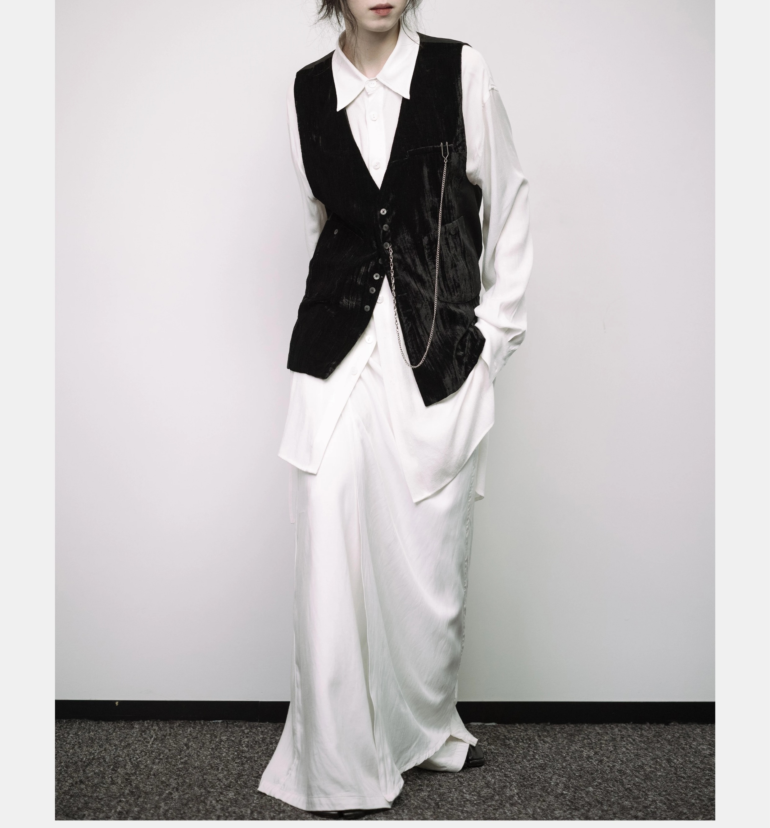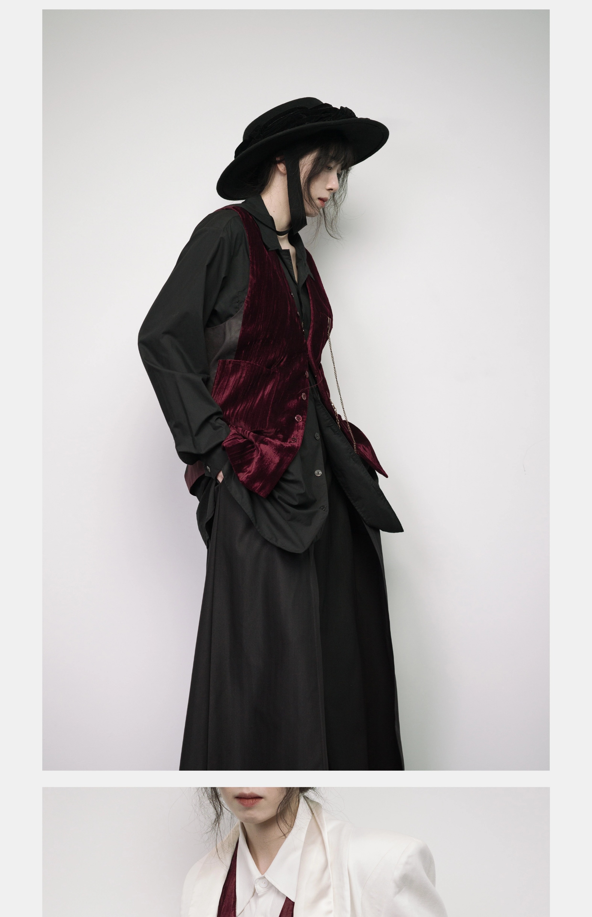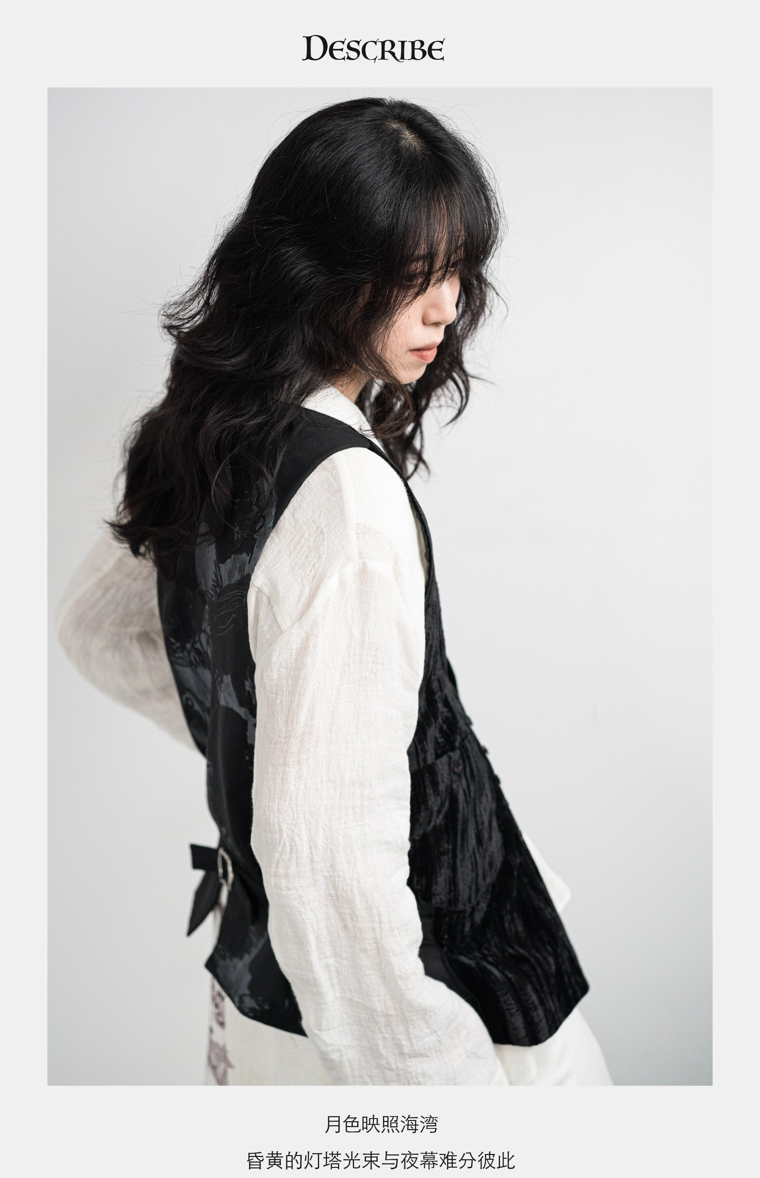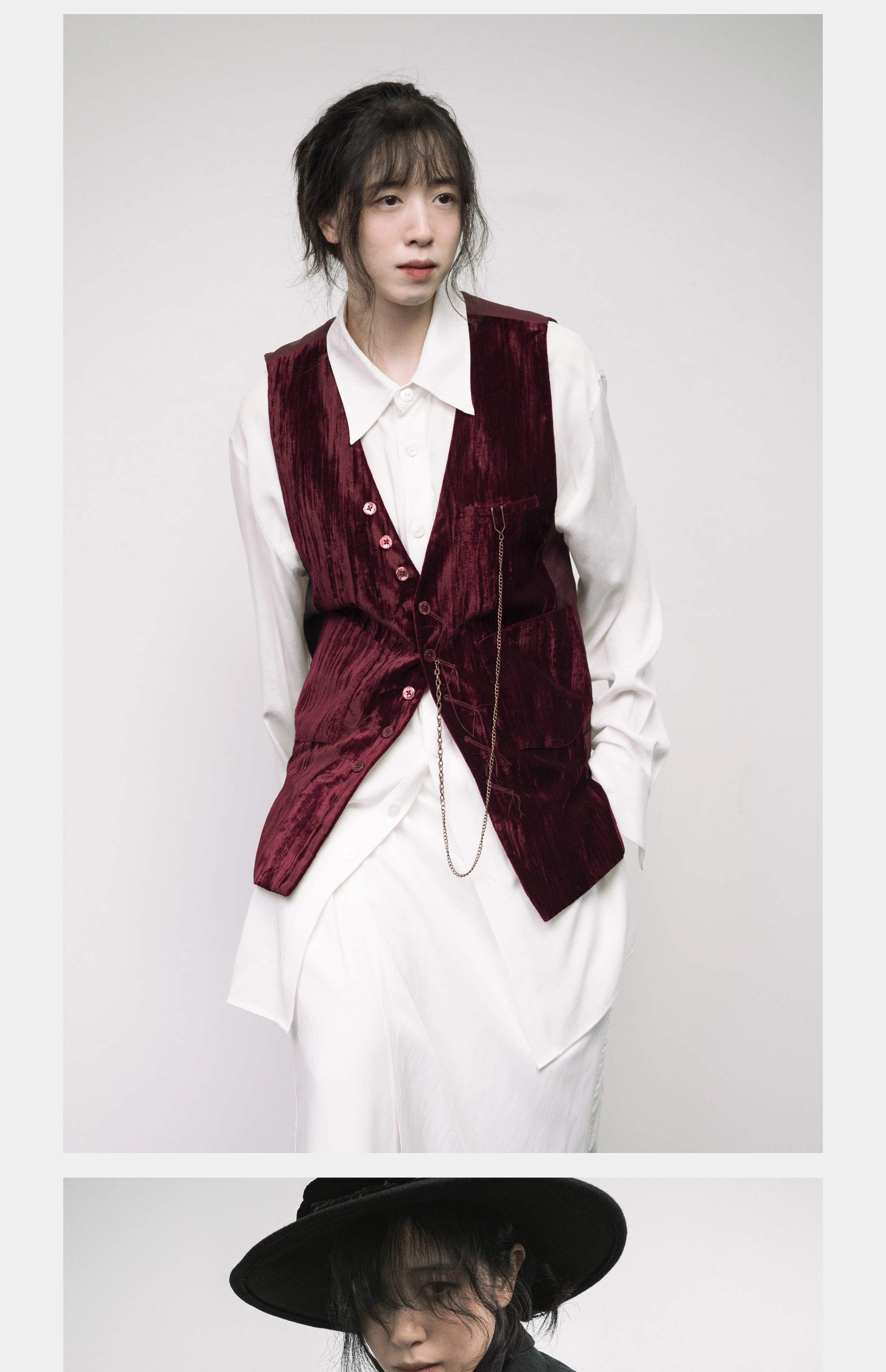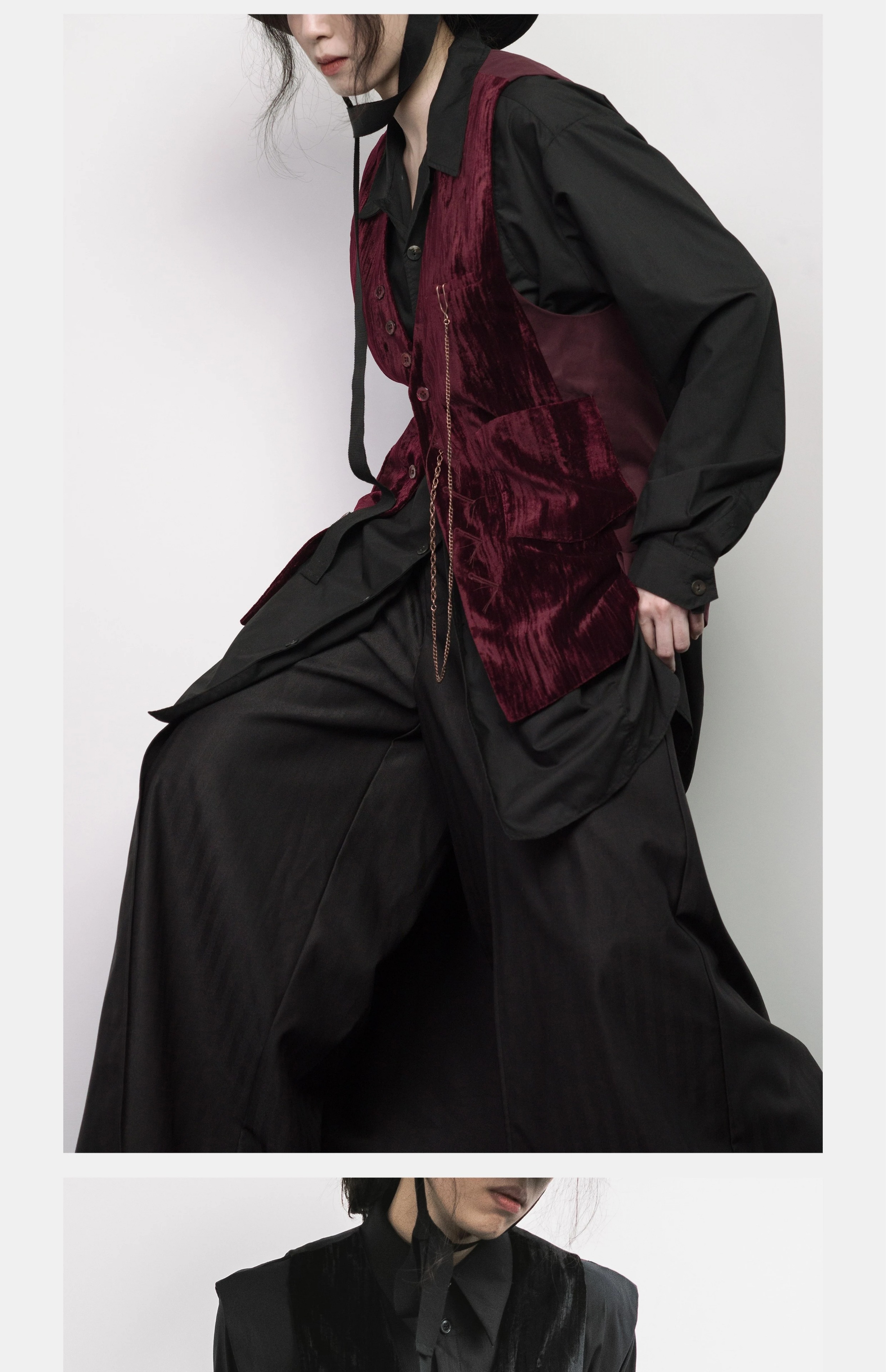 「 淩鴉ILNya 」月海_黑 烏羽絲絨馬甲 優雅印花掛鏈拼接馬夾