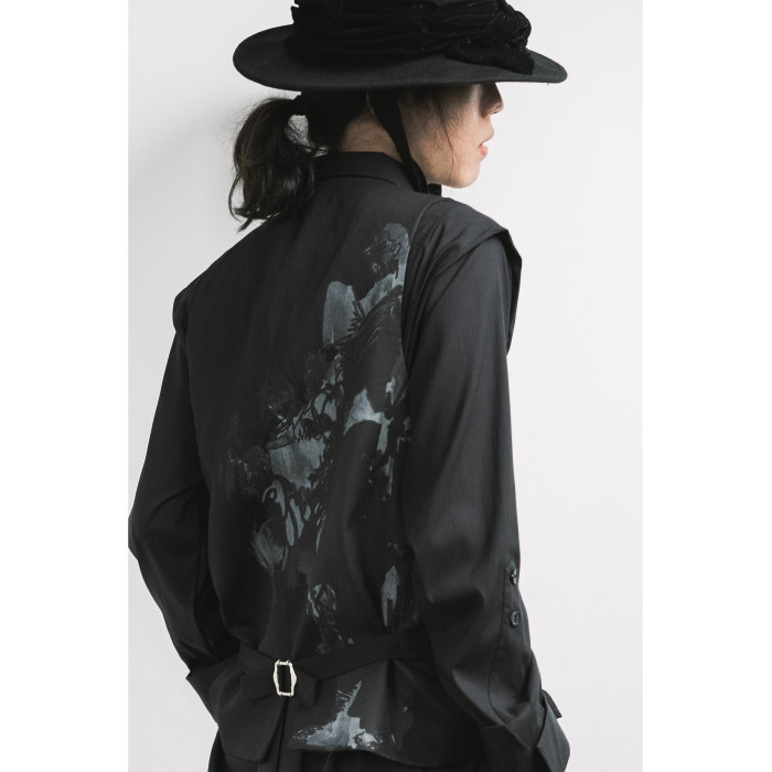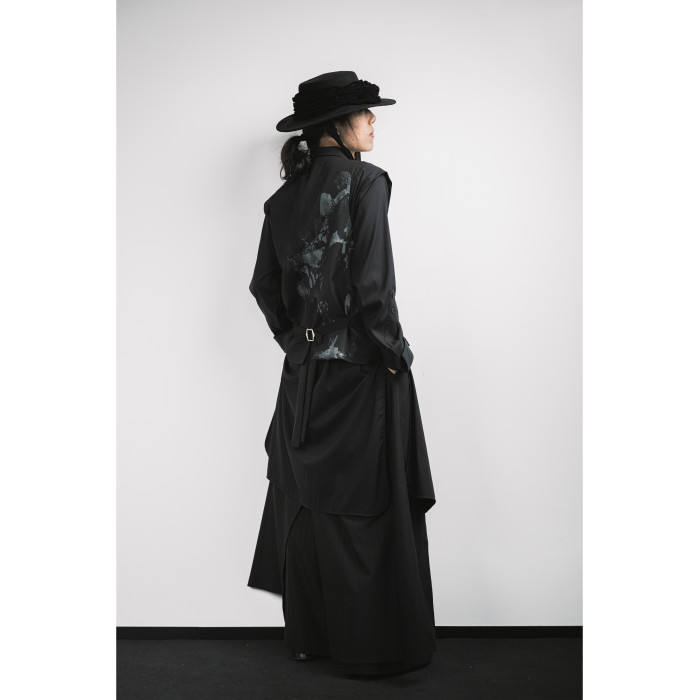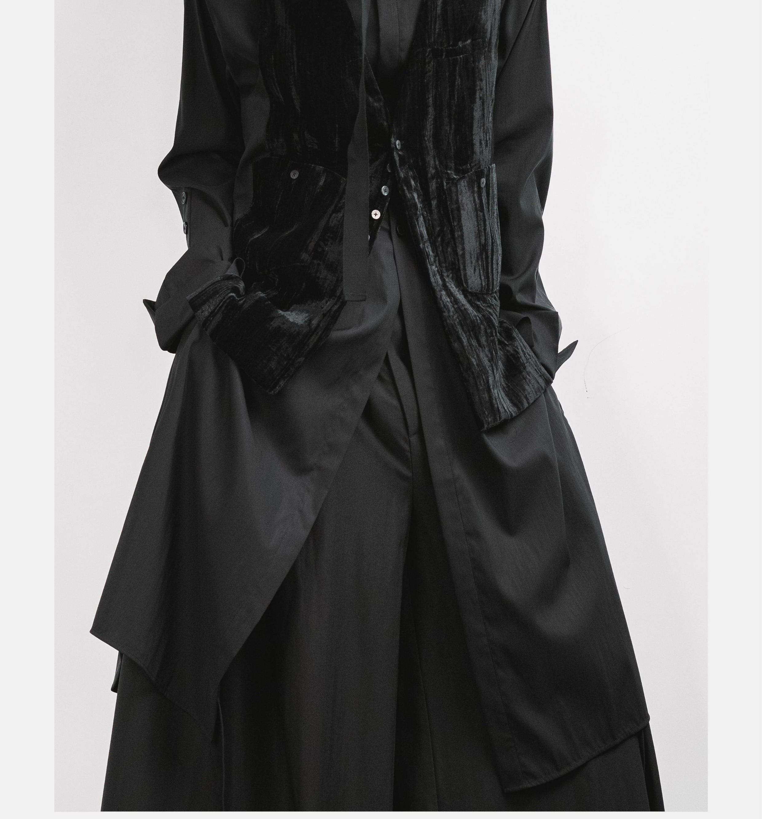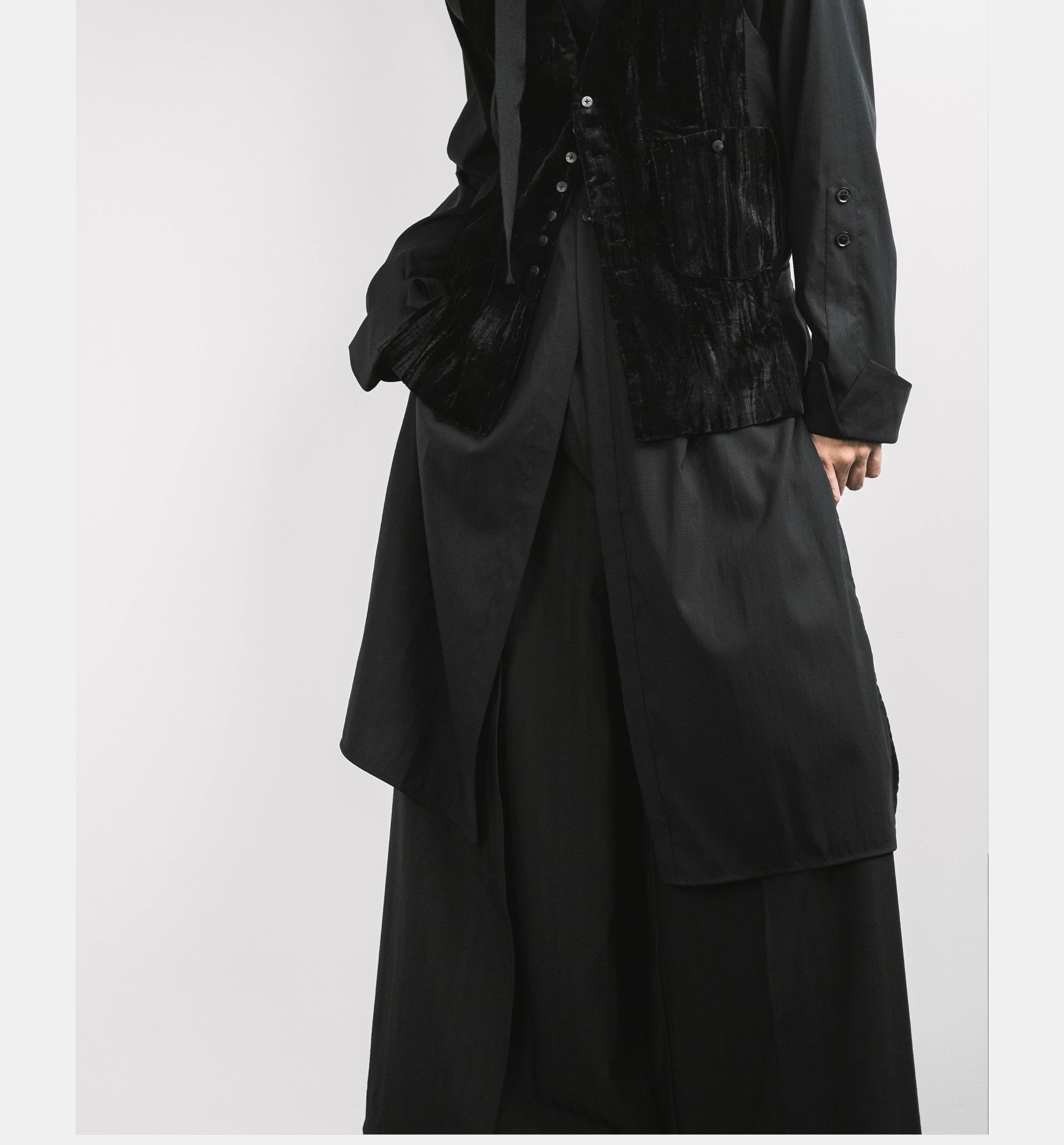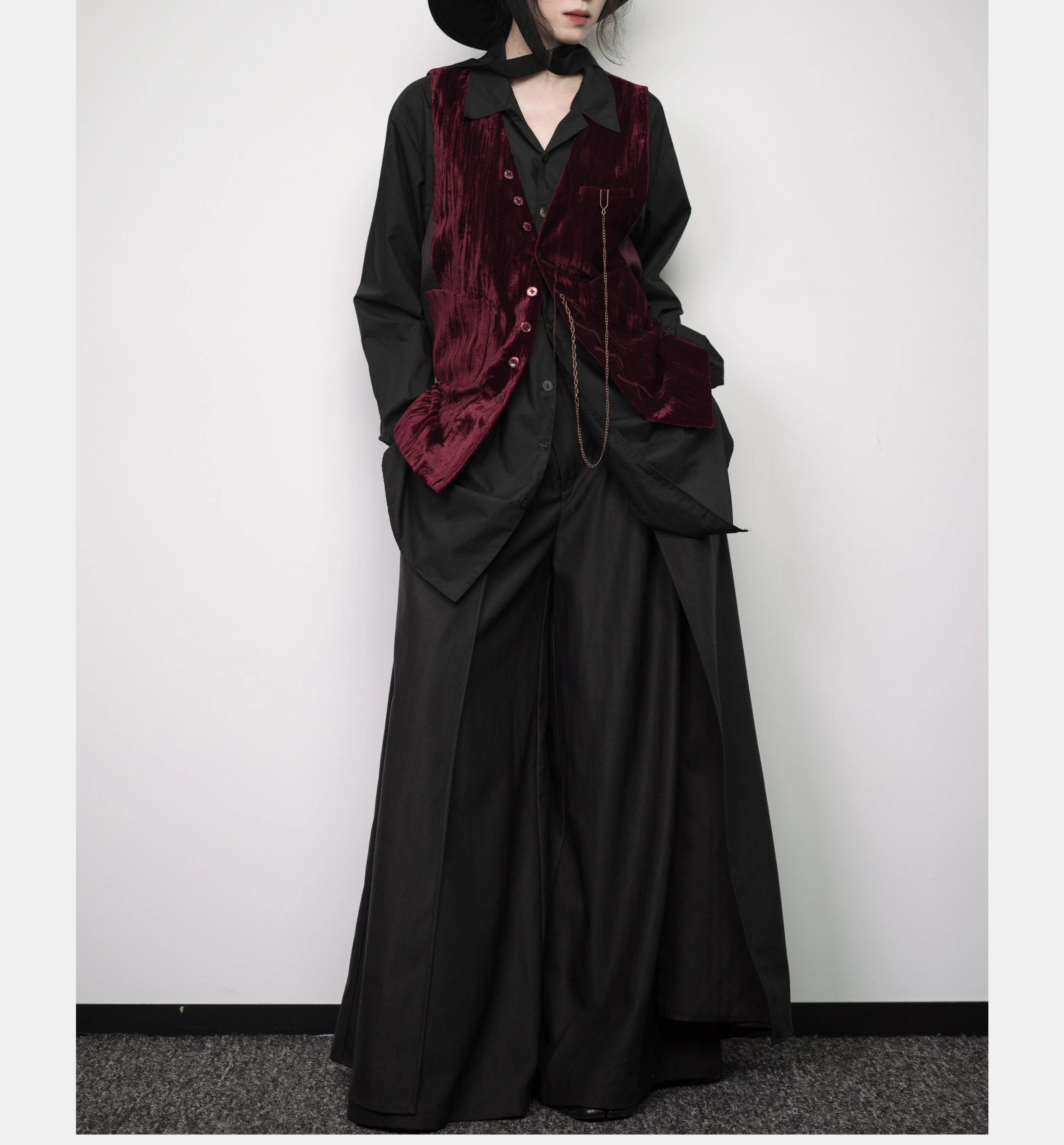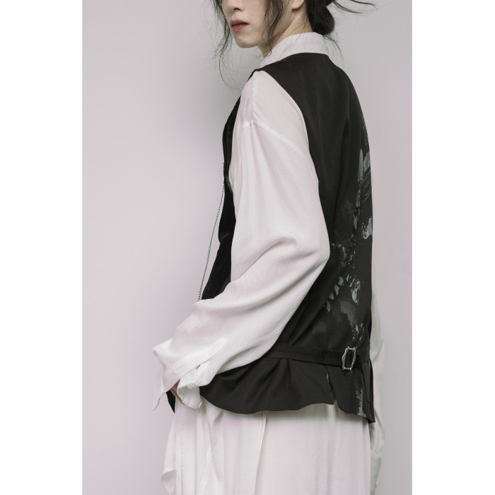 「 淩鴉ILNya 」月海_黑 烏羽絲絨馬甲 優雅印花掛鏈拼接馬夾