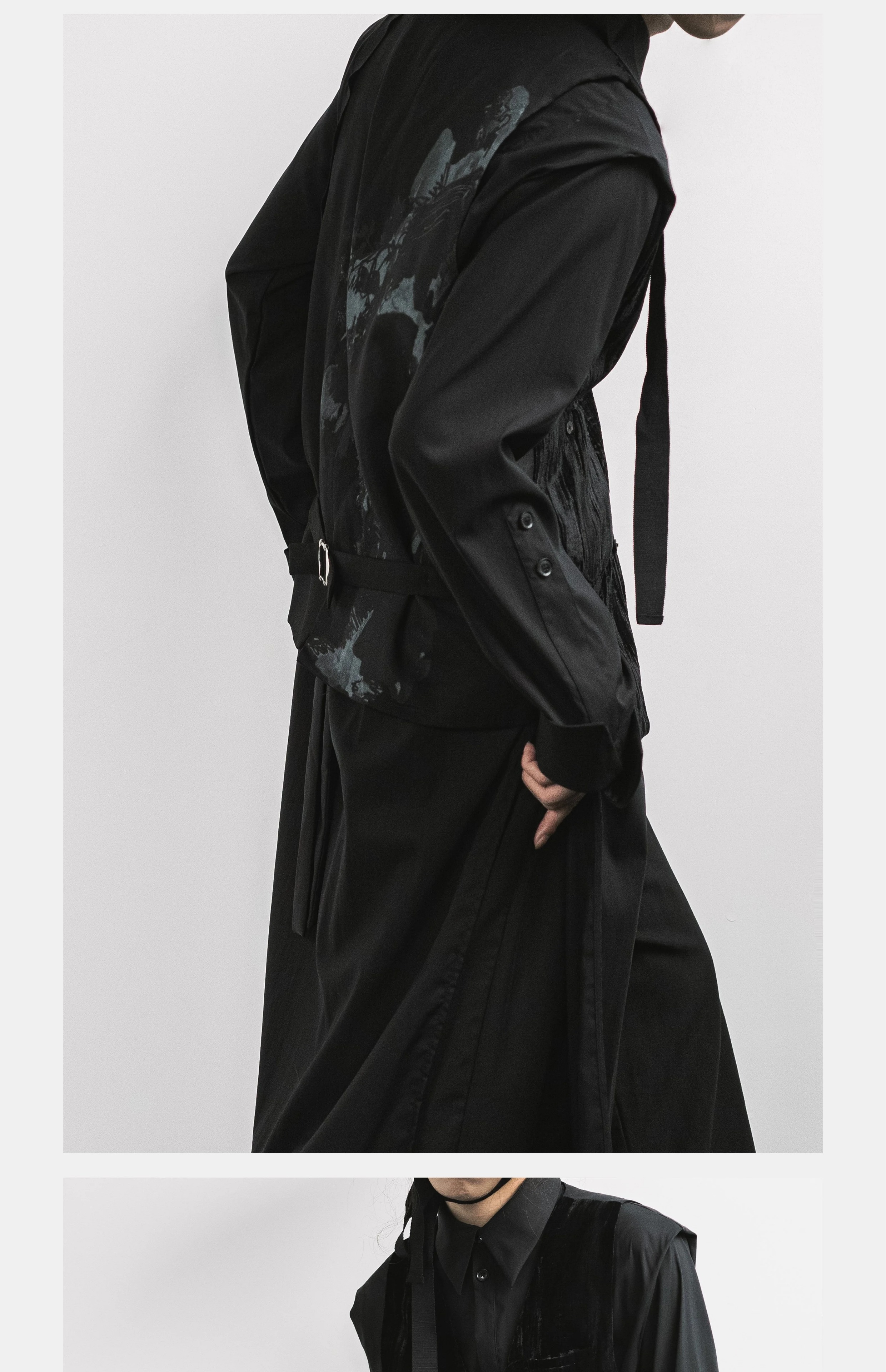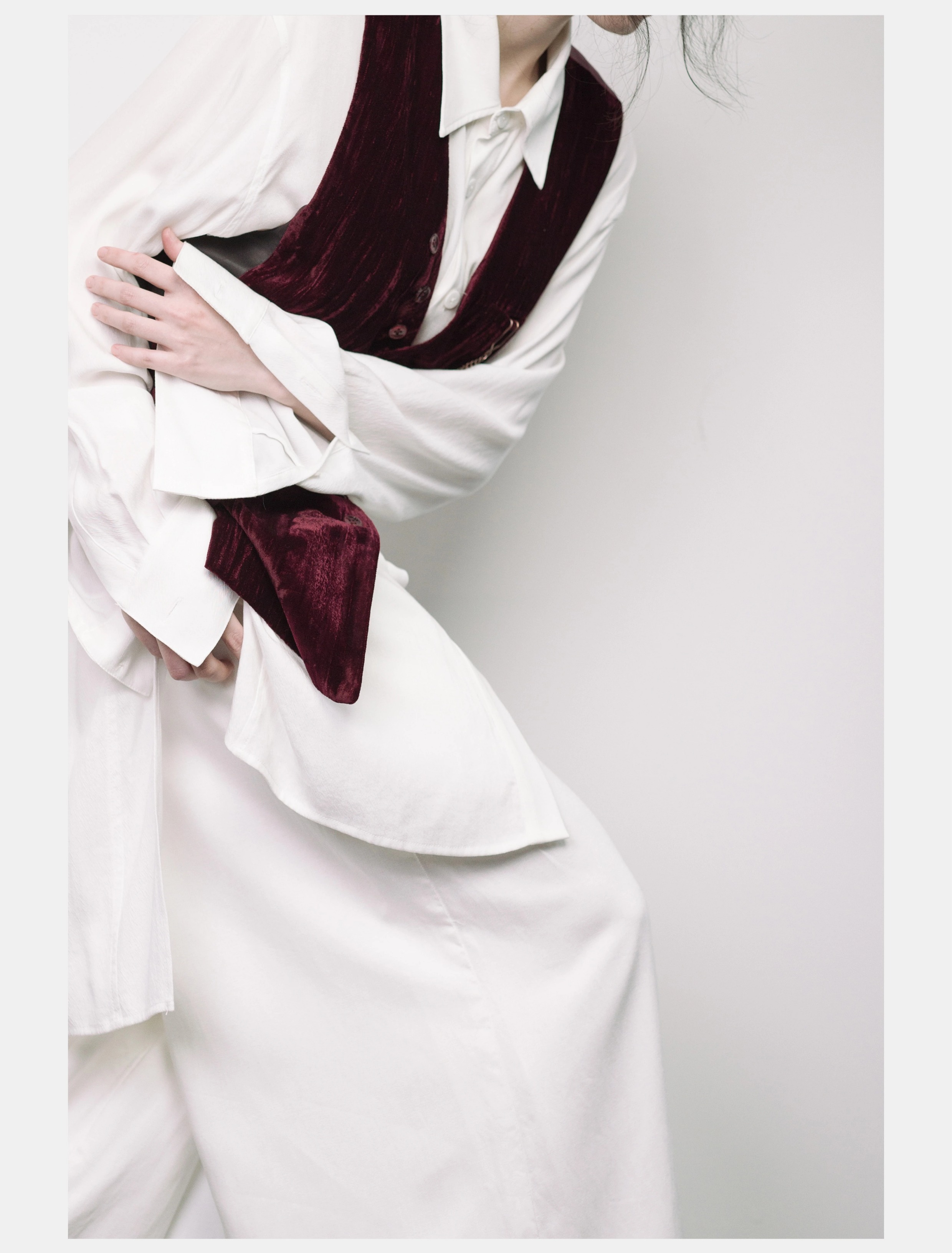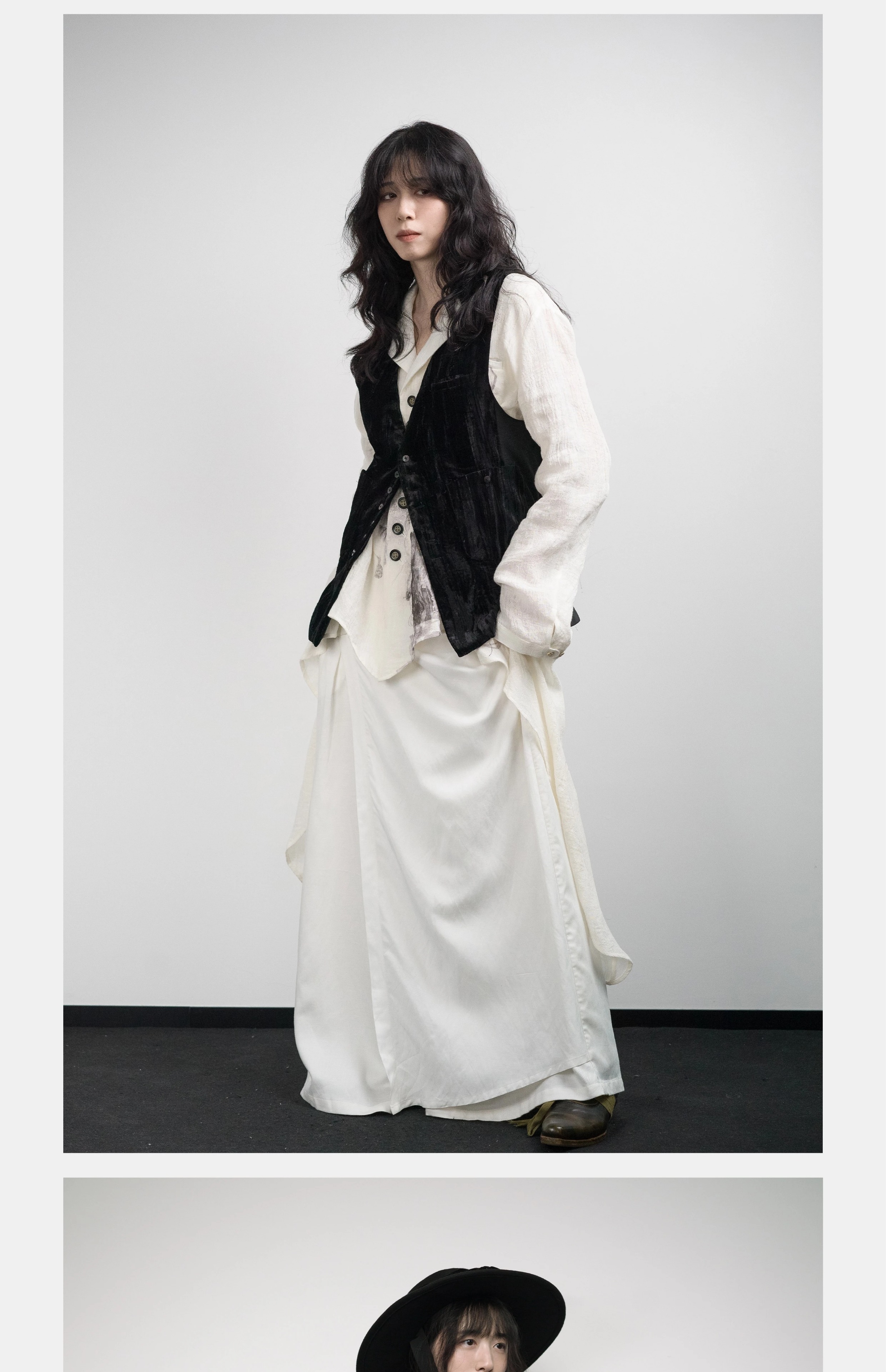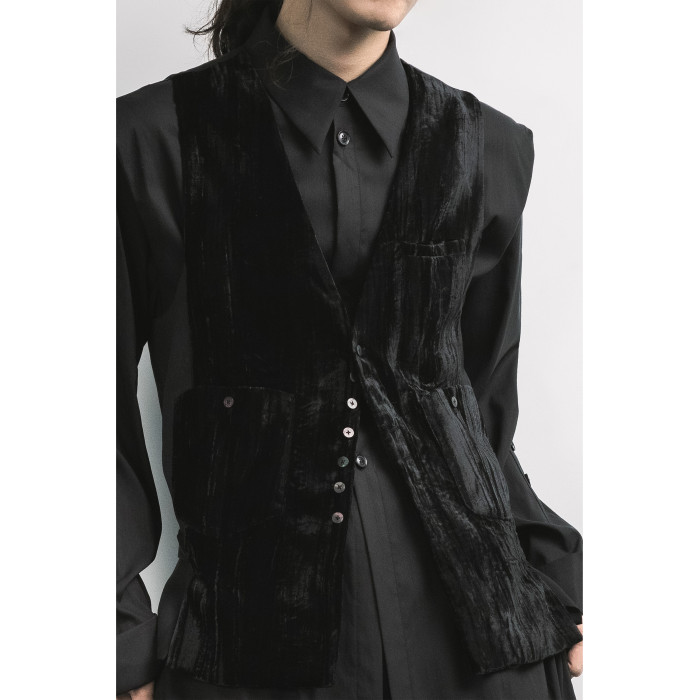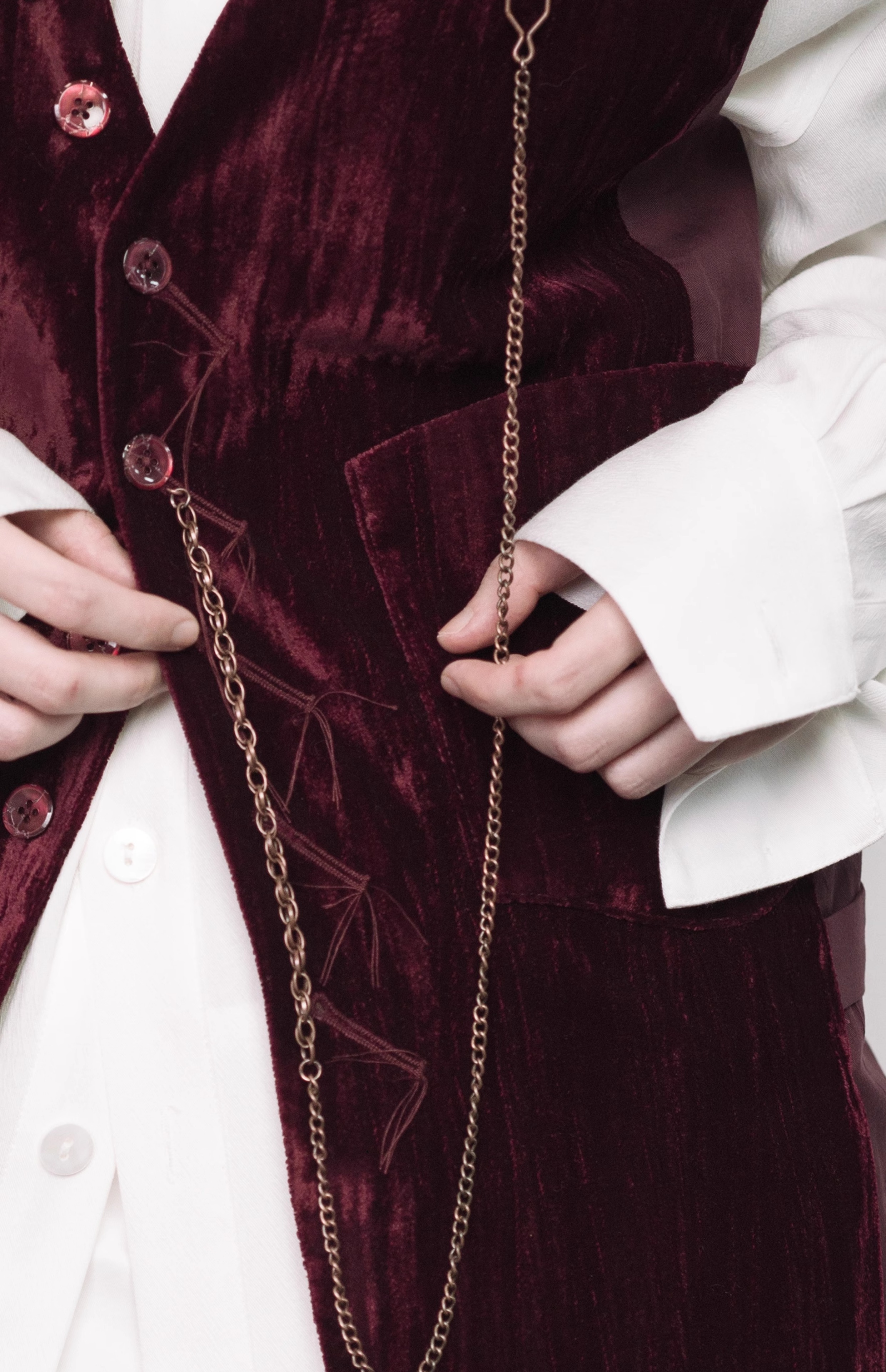「 淩鴉ILNya 」月海_黑 烏羽絲絨馬甲 優雅印花掛鏈拼接馬夾