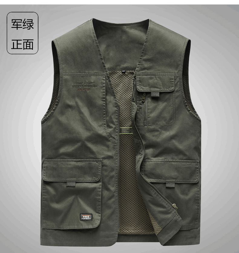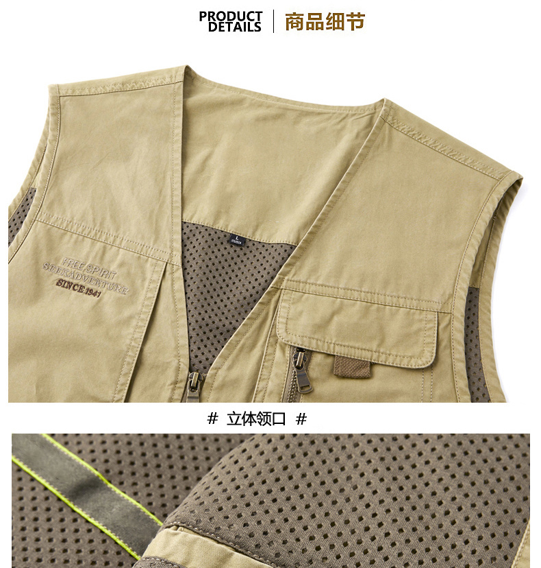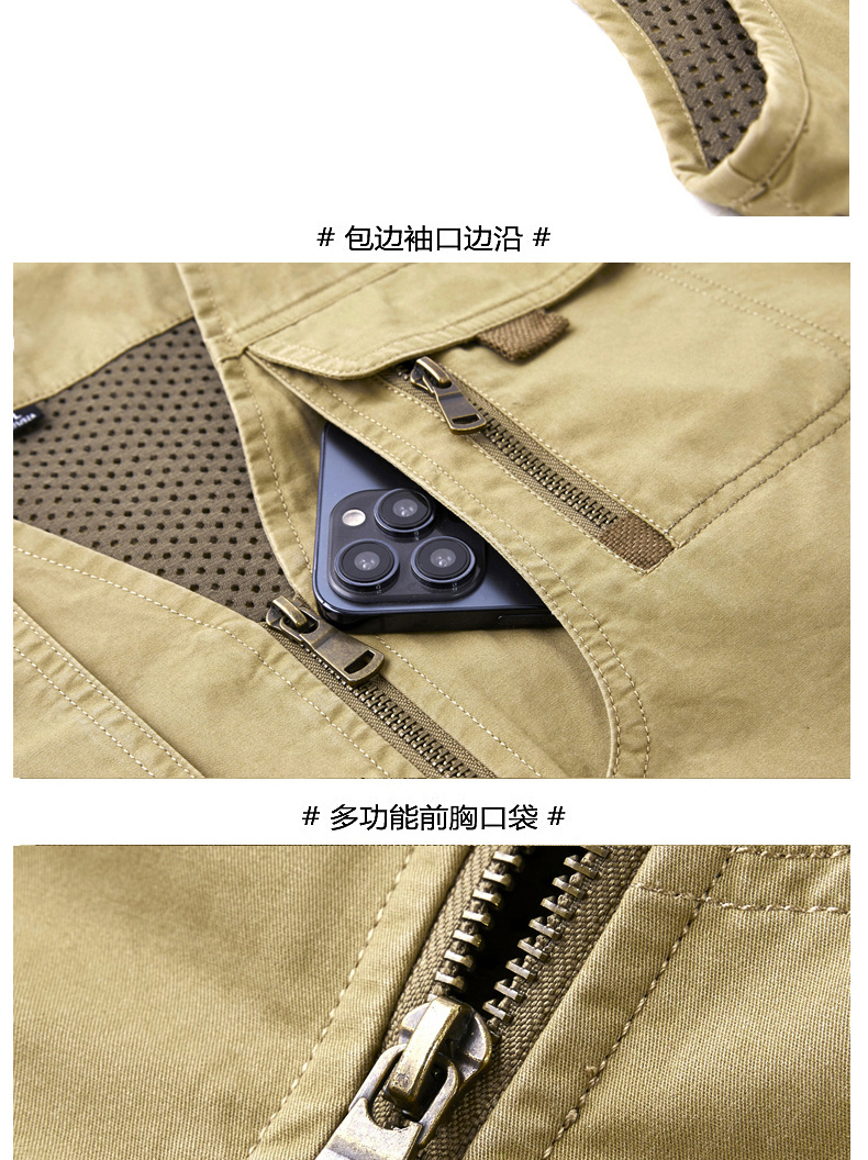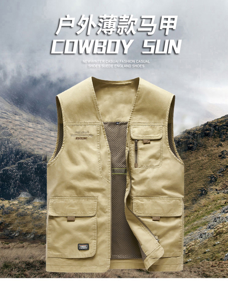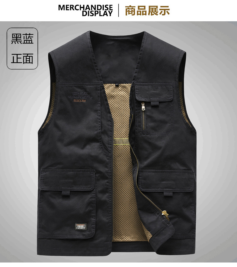 工裝馬甲男士春秋戶外釣魚攝影純棉多口袋無領中老年馬夾外套