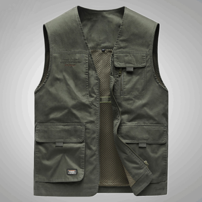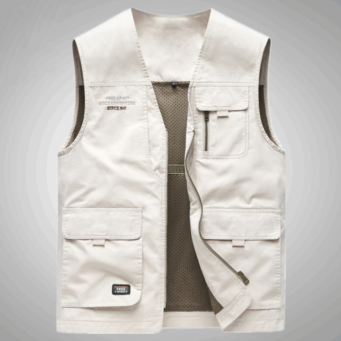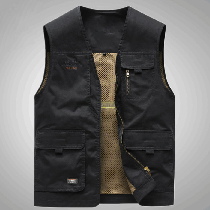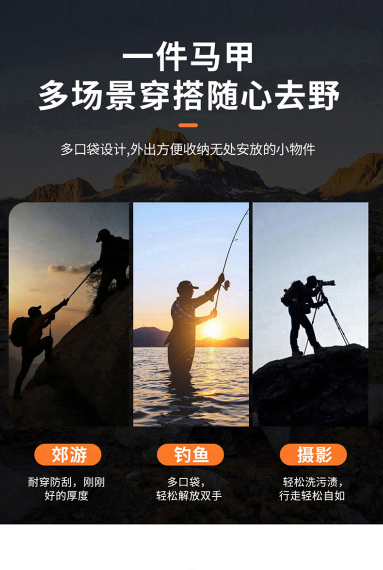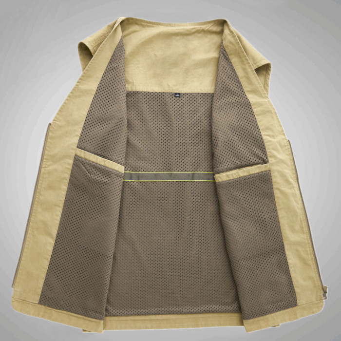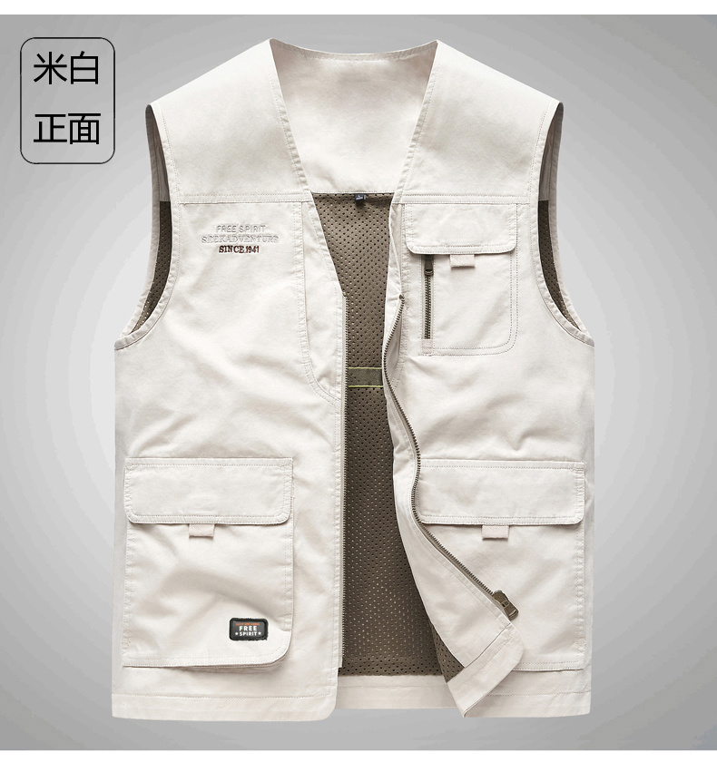 工裝馬甲男士春秋戶外釣魚攝影純棉多口袋無領中老年馬夾外套