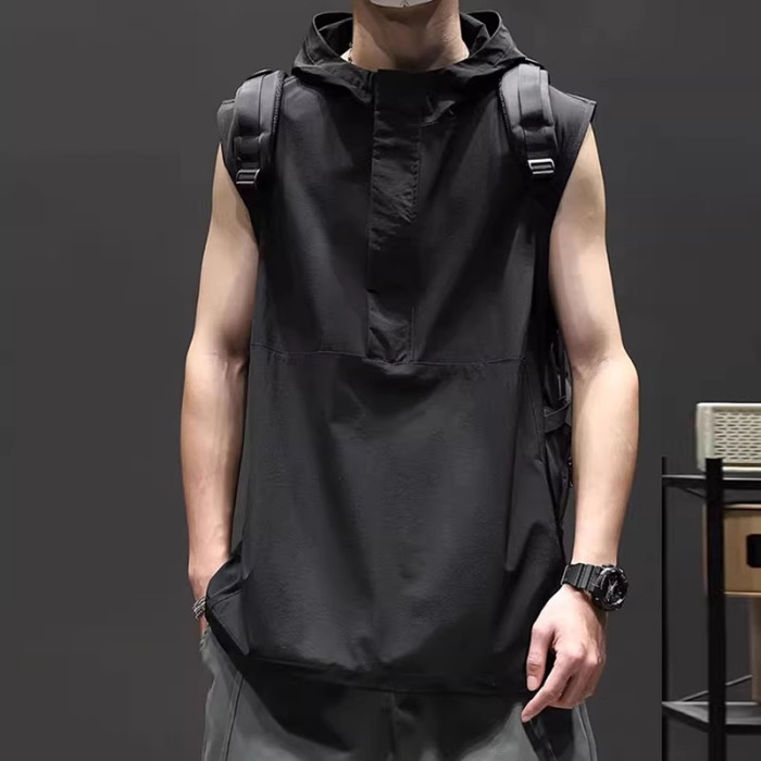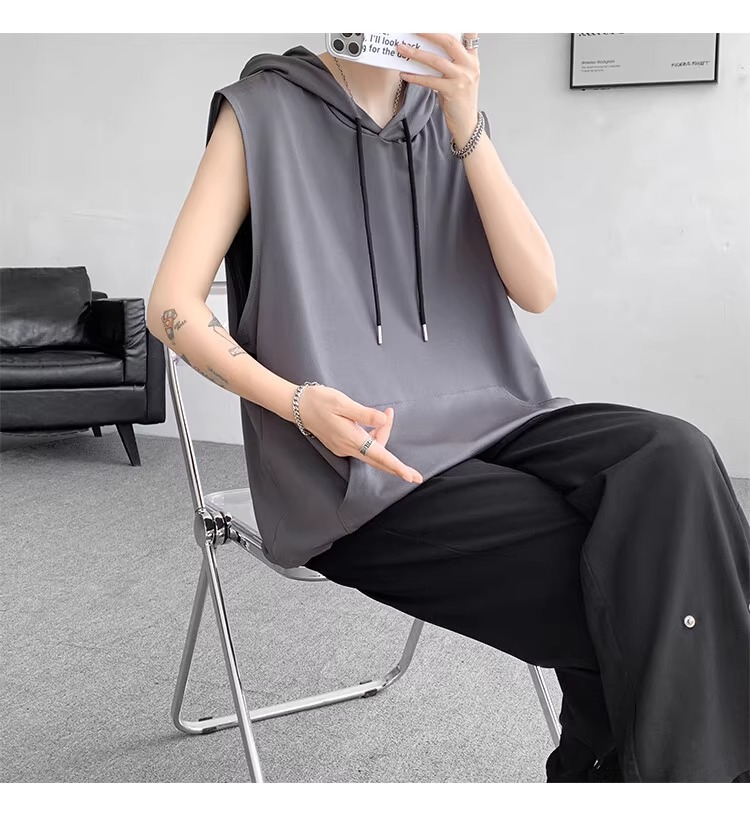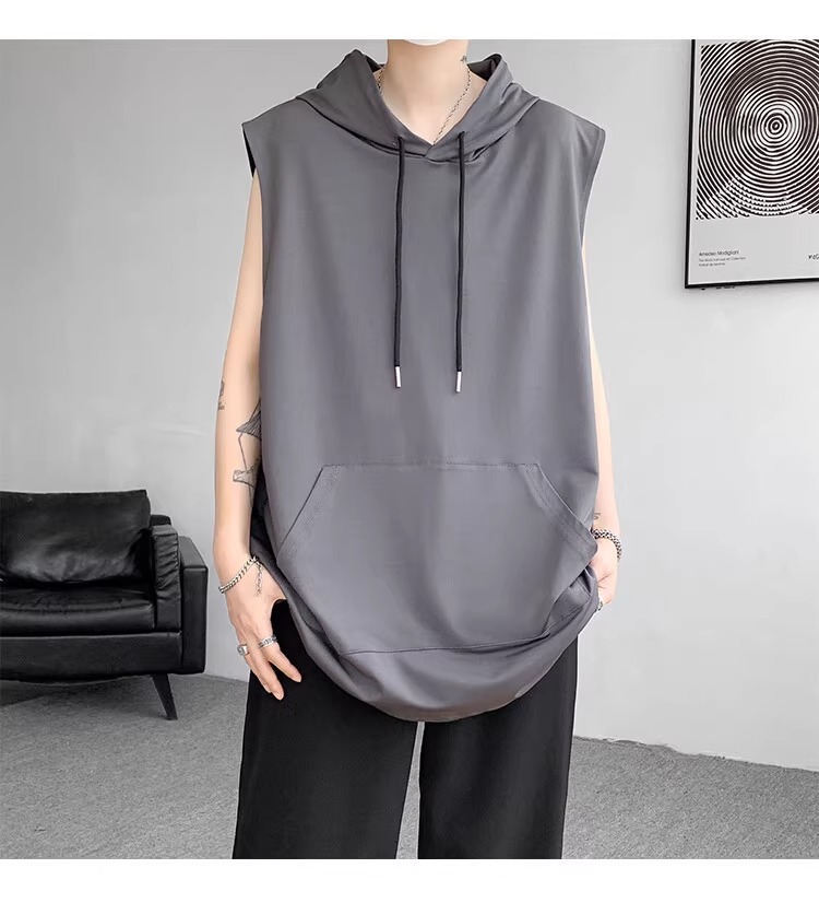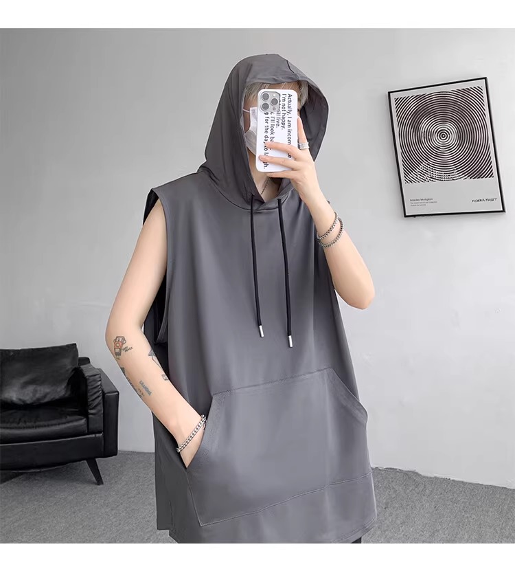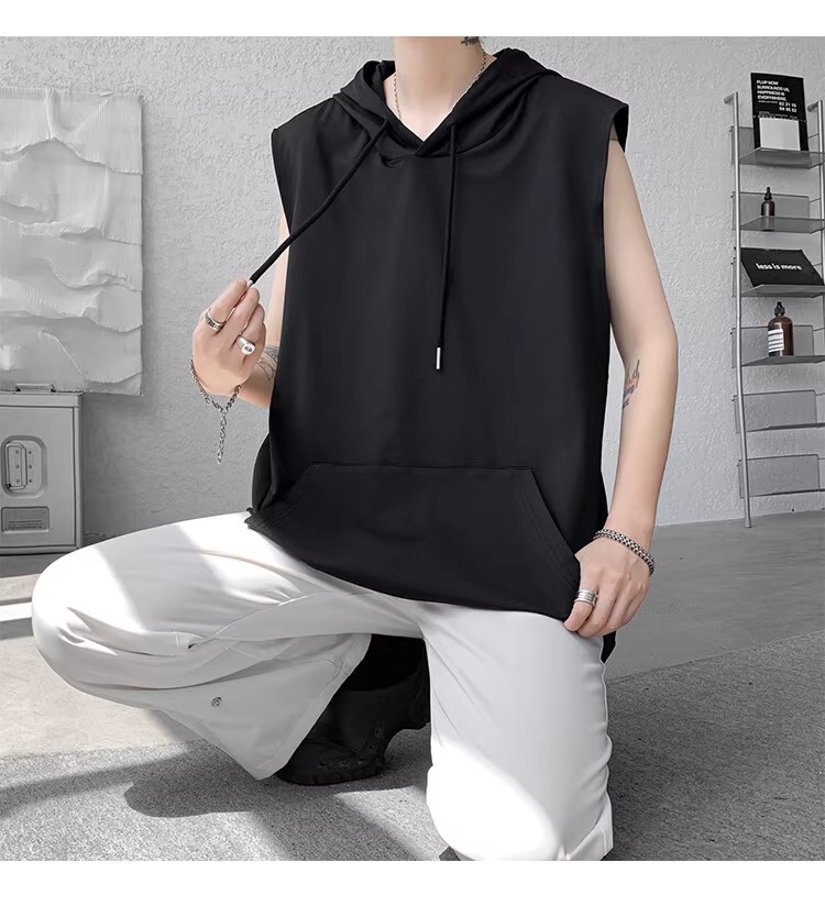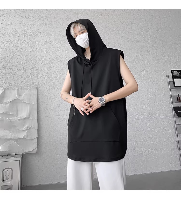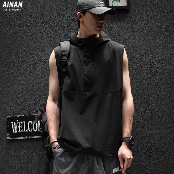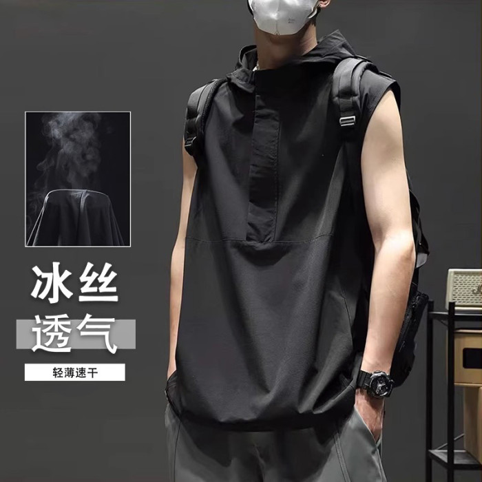 倉石一樹夏季冰絲速乾連帽背心男大碼籃球運動無袖健身t恤坎肩潮