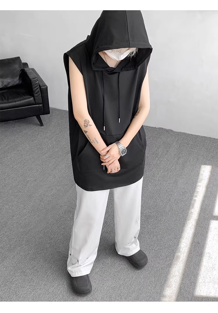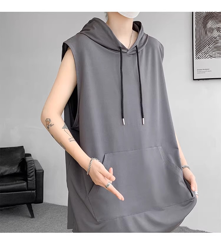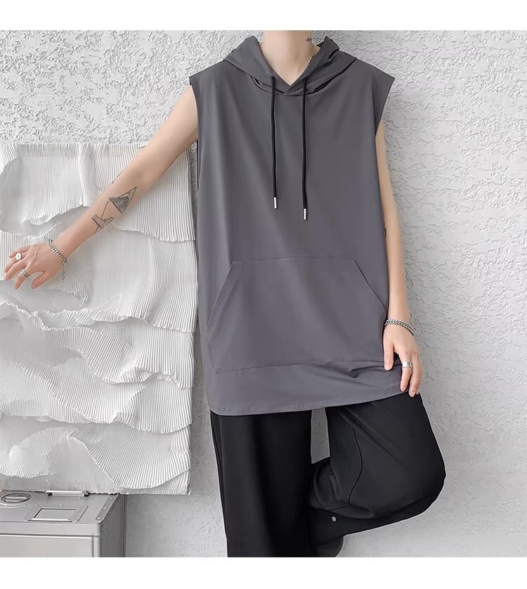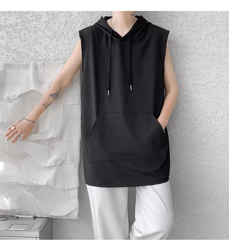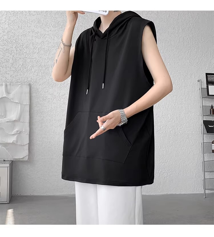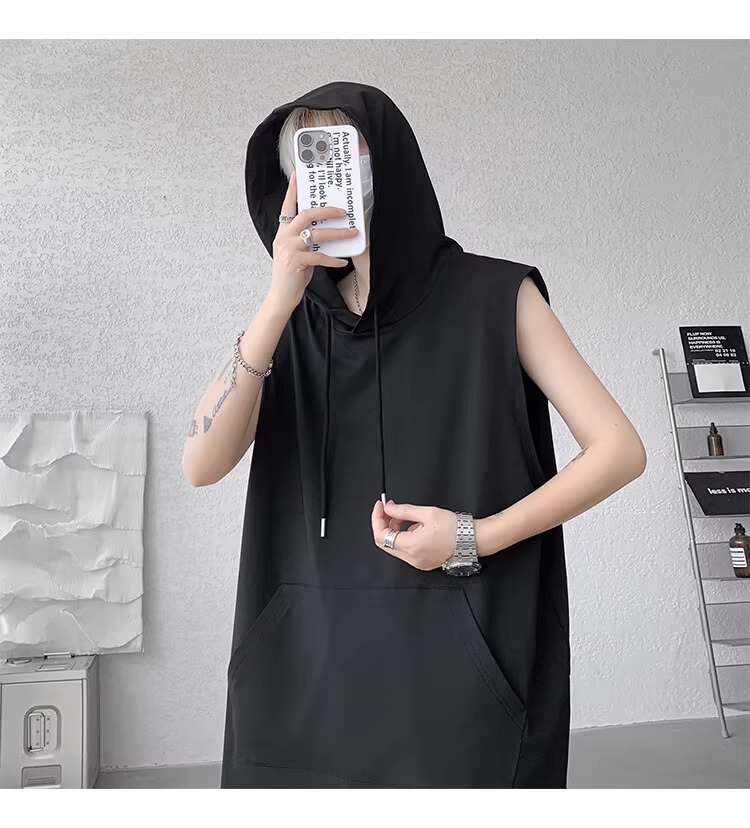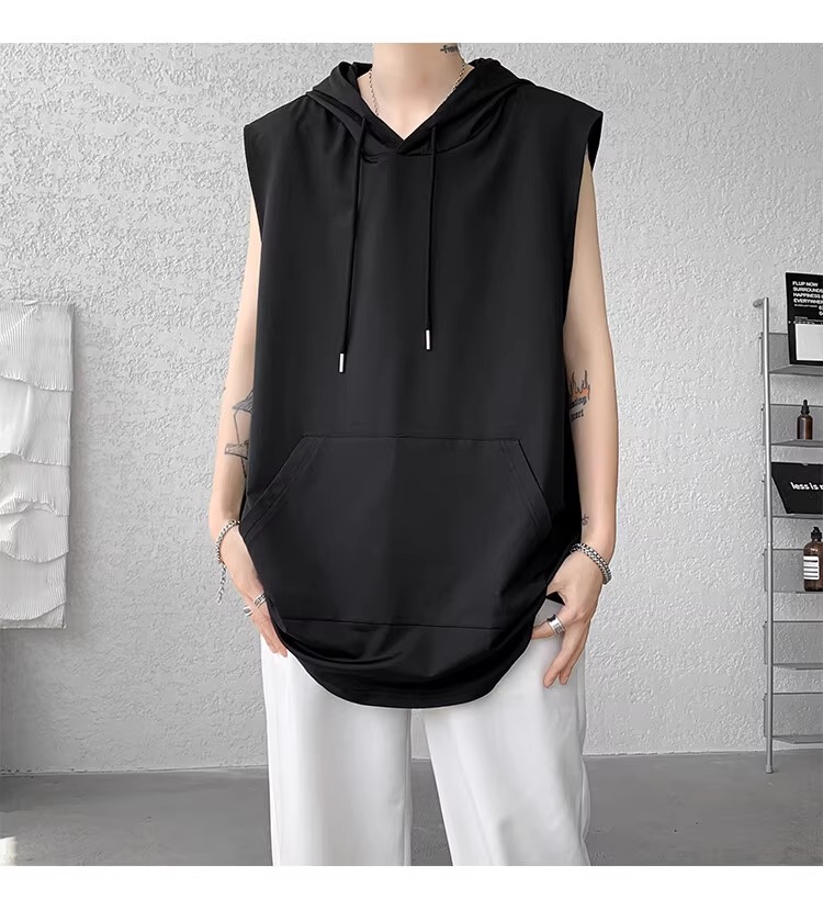 倉石一樹夏季冰絲速乾連帽背心男大碼籃球運動無袖健身t恤坎肩潮