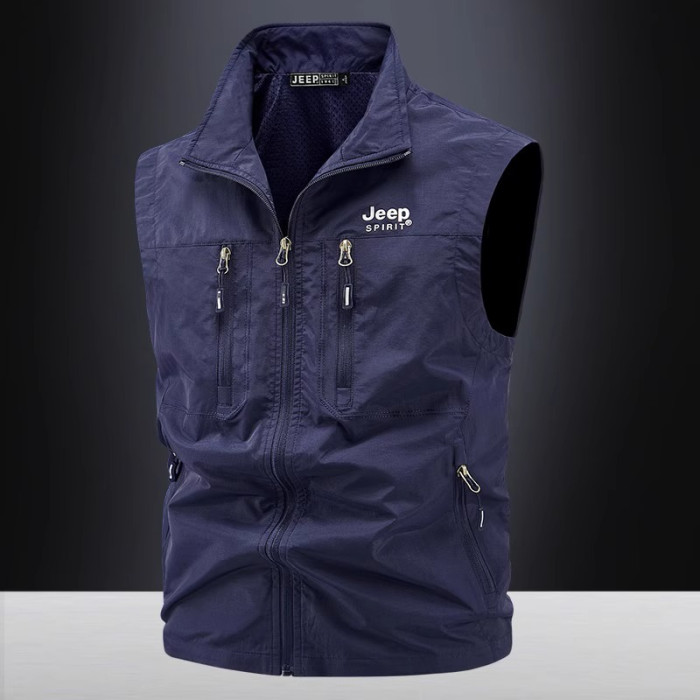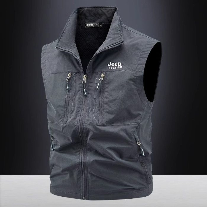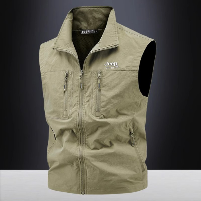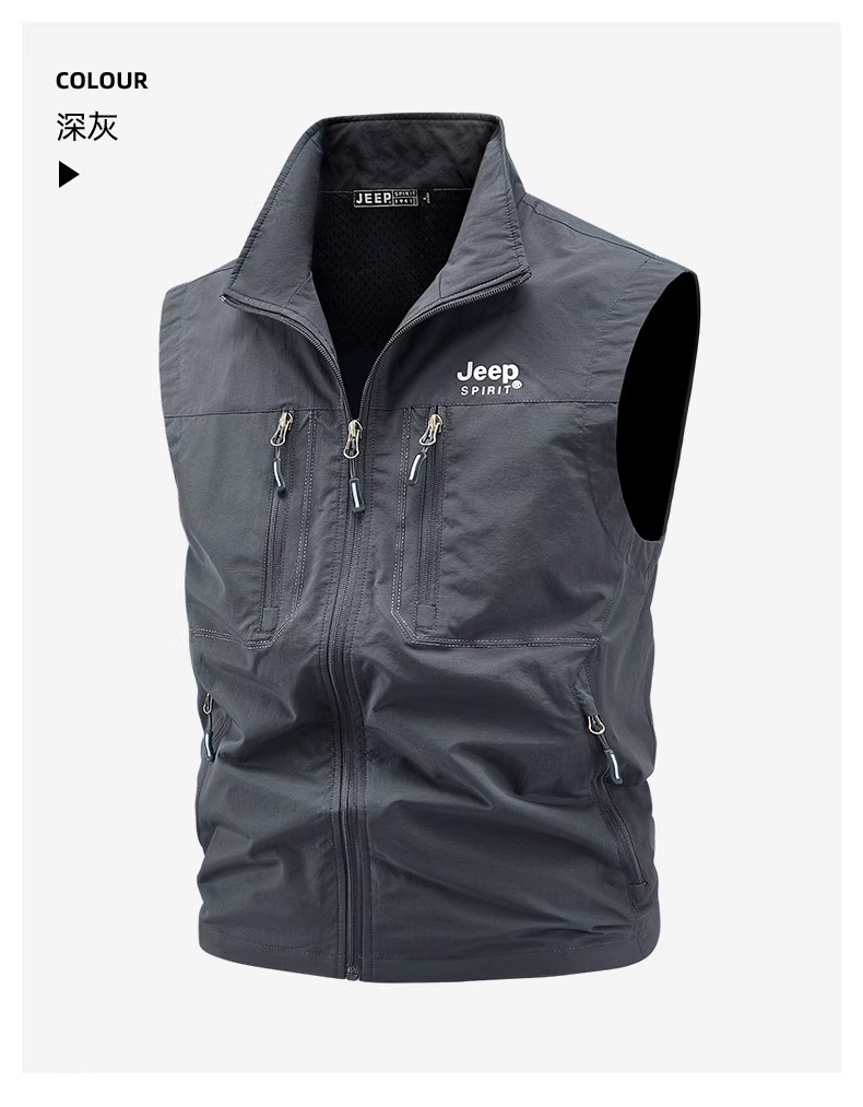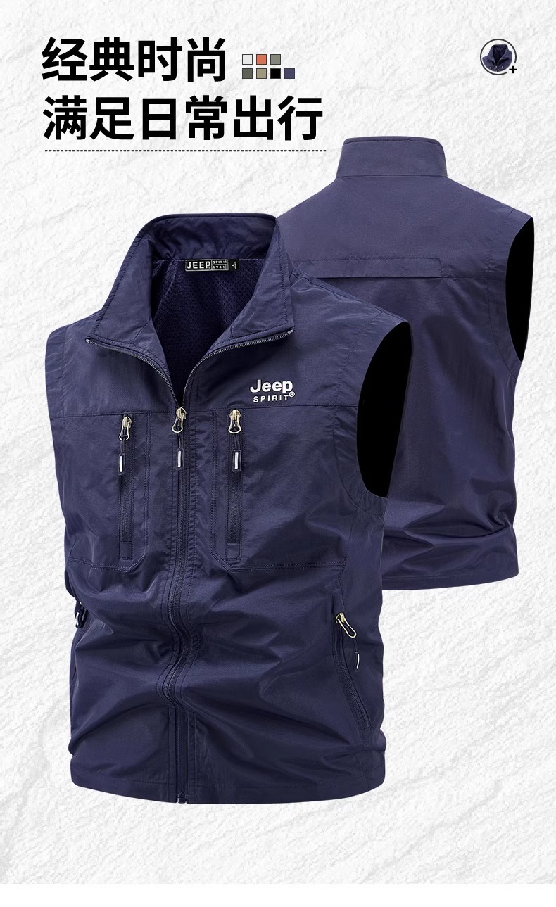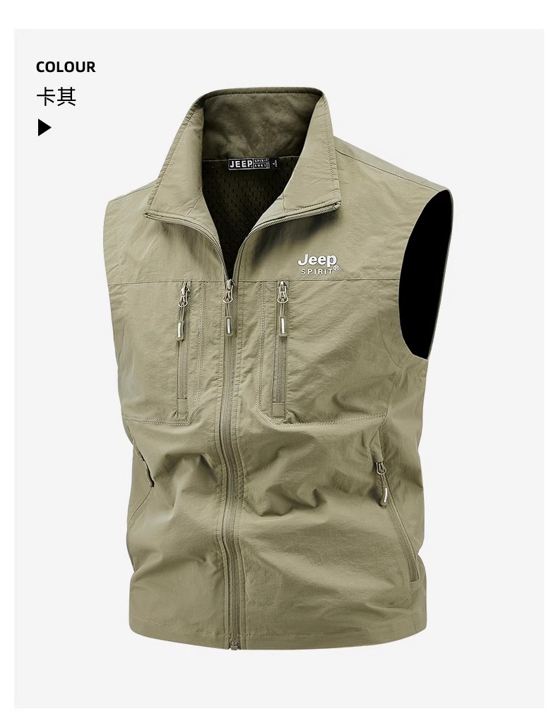 吉普多口袋工裝馬甲男春秋坎肩防風戶外休閒夏季釣魚馬夾立領外套