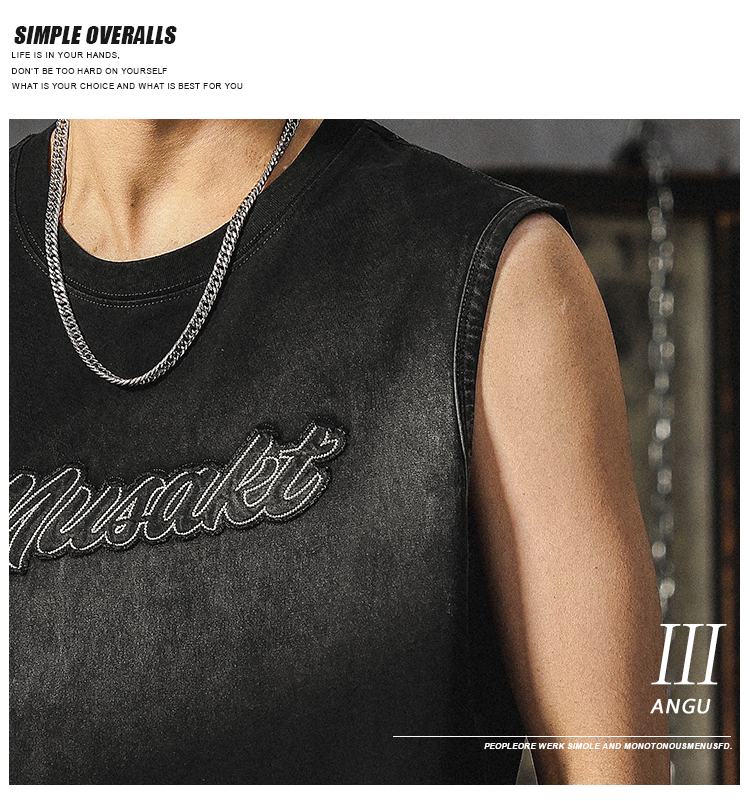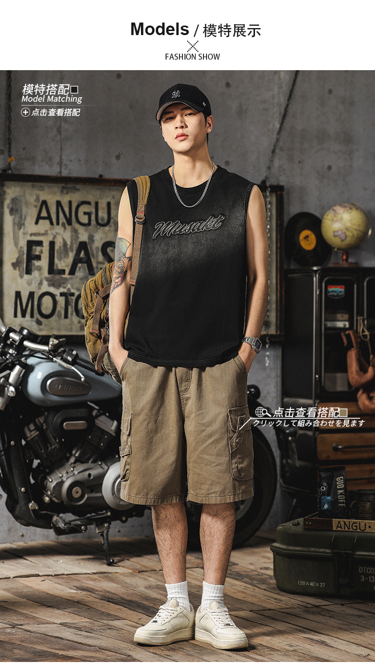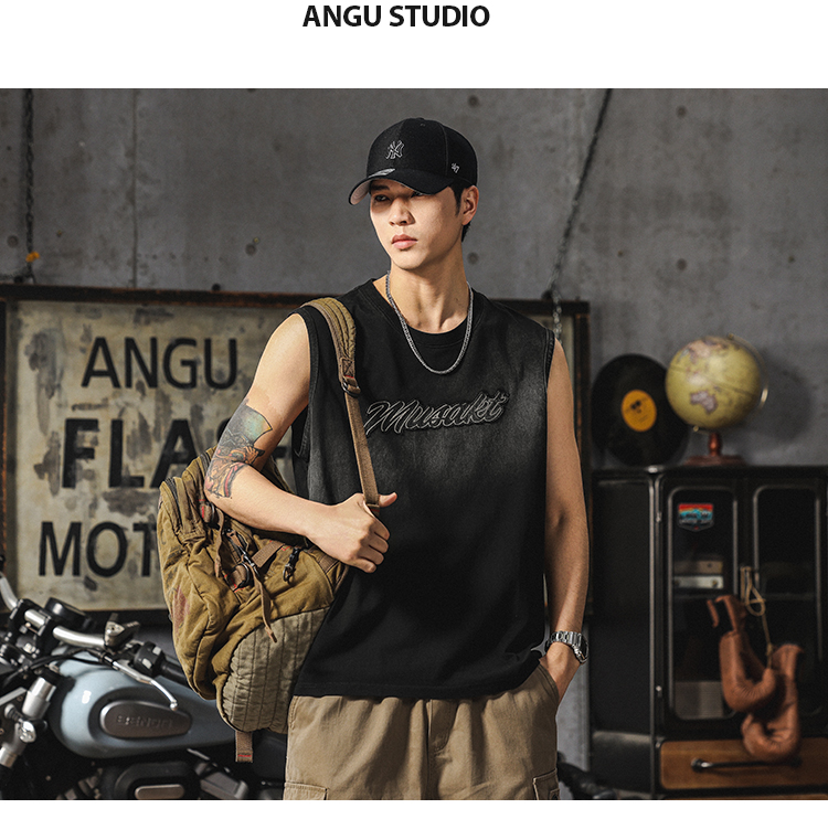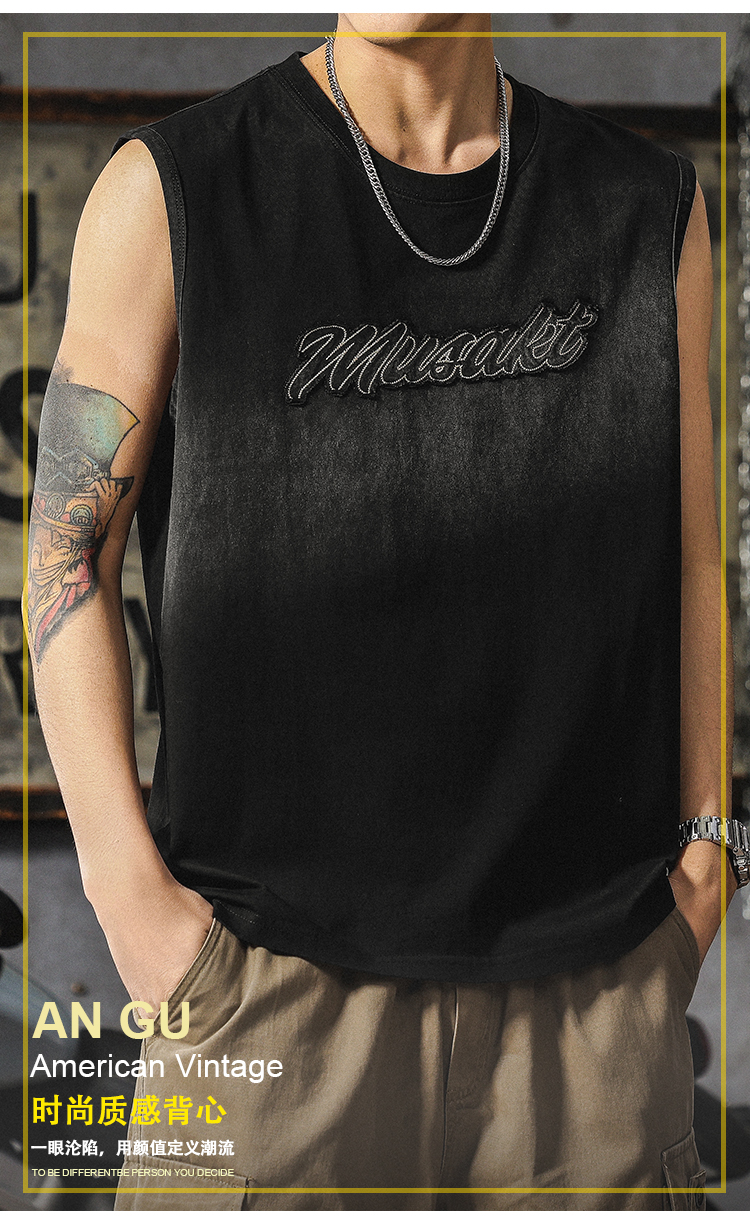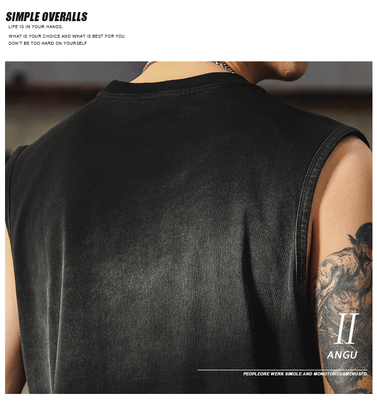 復古做舊水洗重磅背心男高級感痞帥寬松純棉T恤潮流美式無袖坎肩