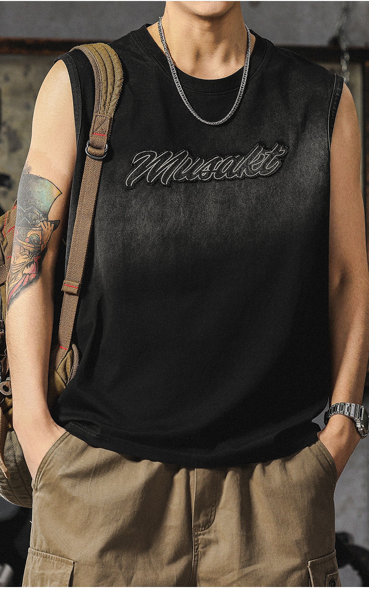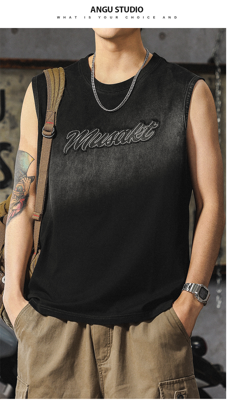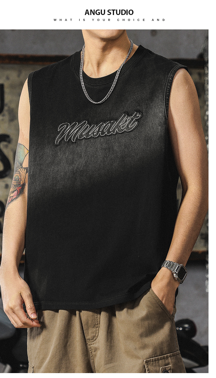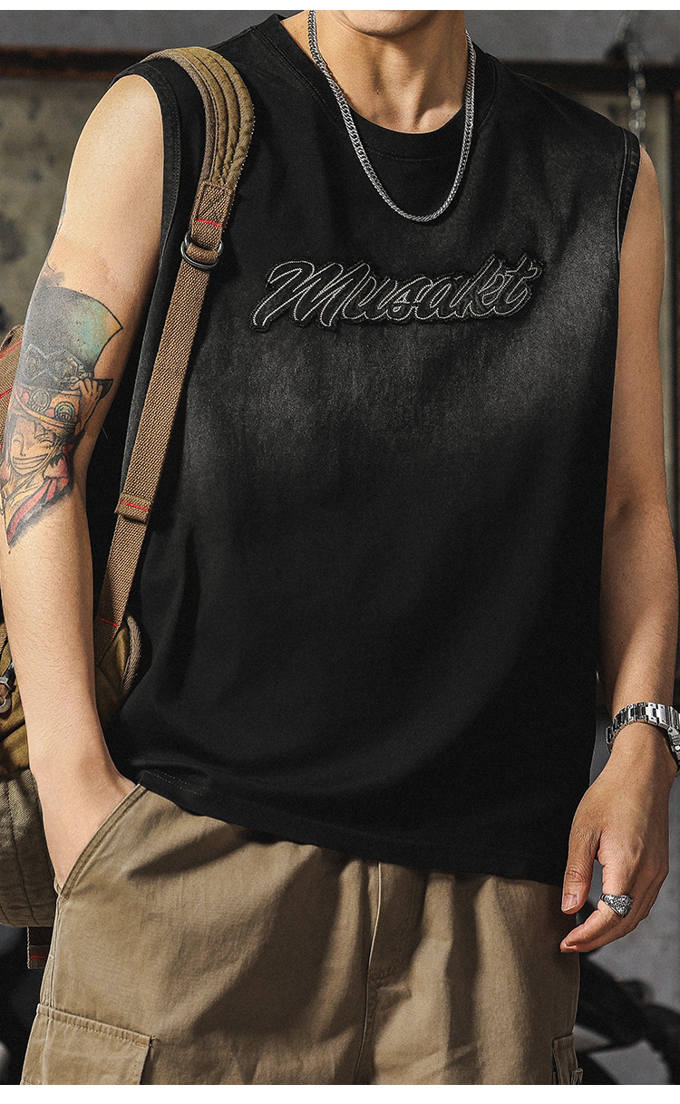 復古做舊水洗重磅背心男高級感痞帥寬松純棉T恤潮流美式無袖坎肩