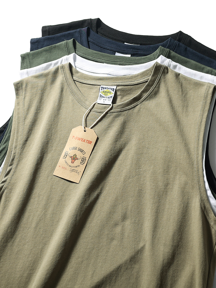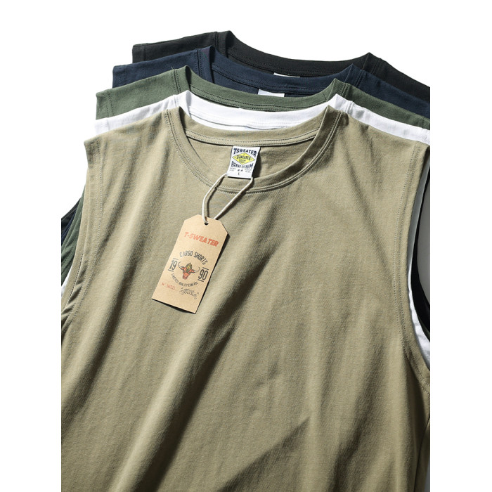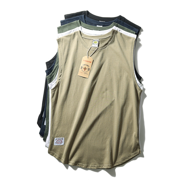 男士潮牌背心夏季健身潮流新款純棉純色寬松運動坎肩無袖T恤復古