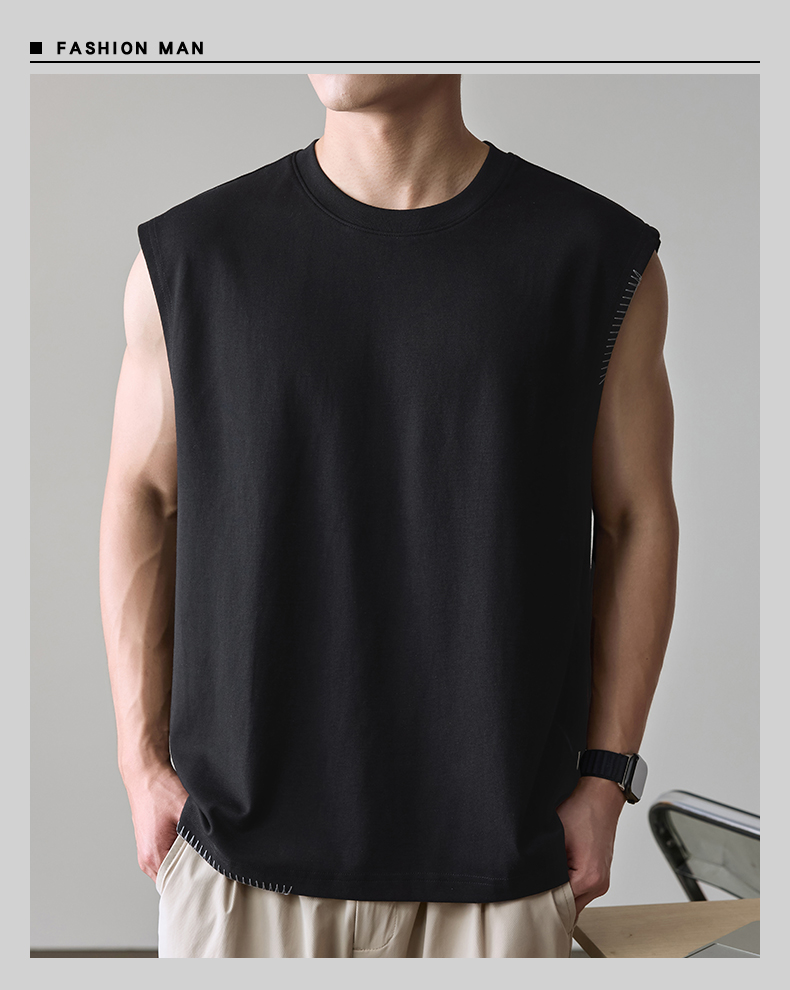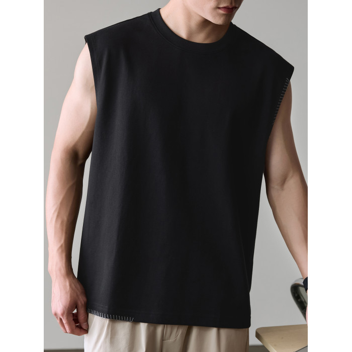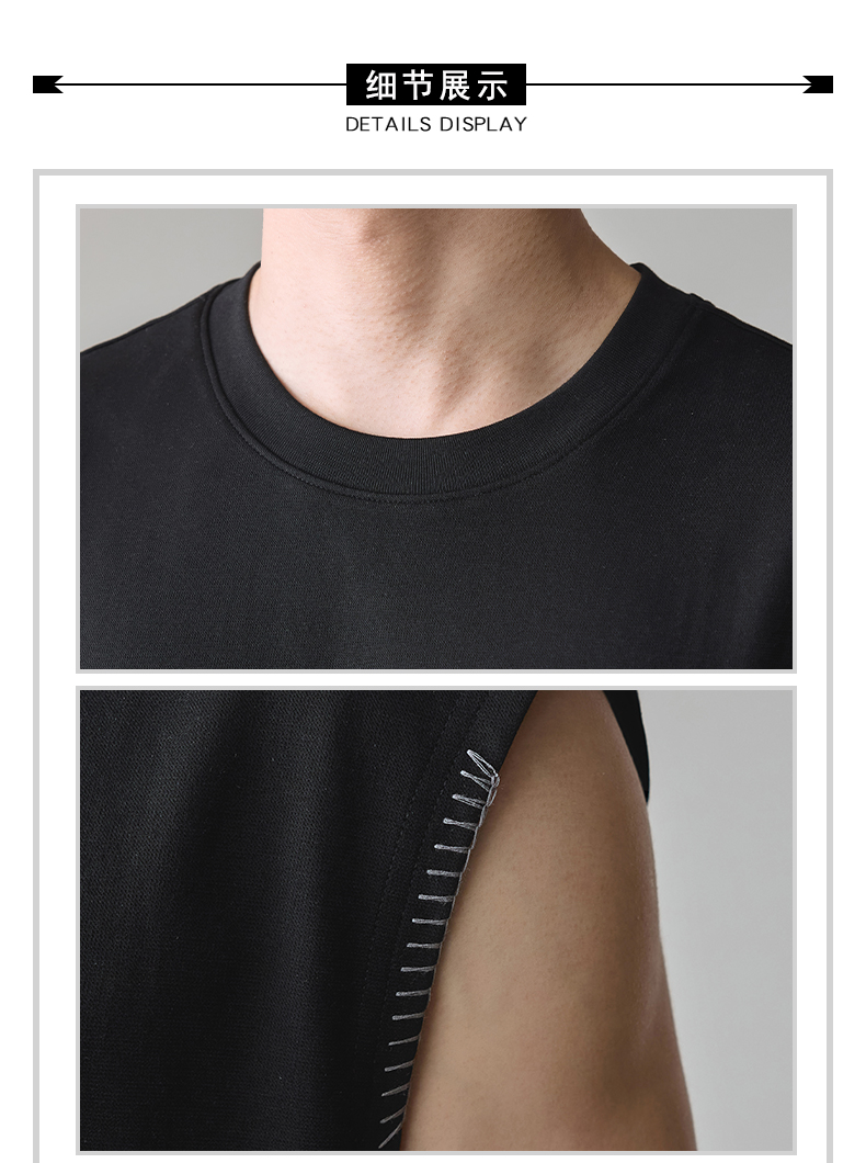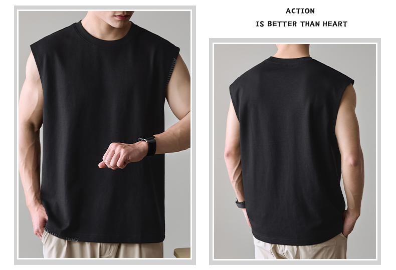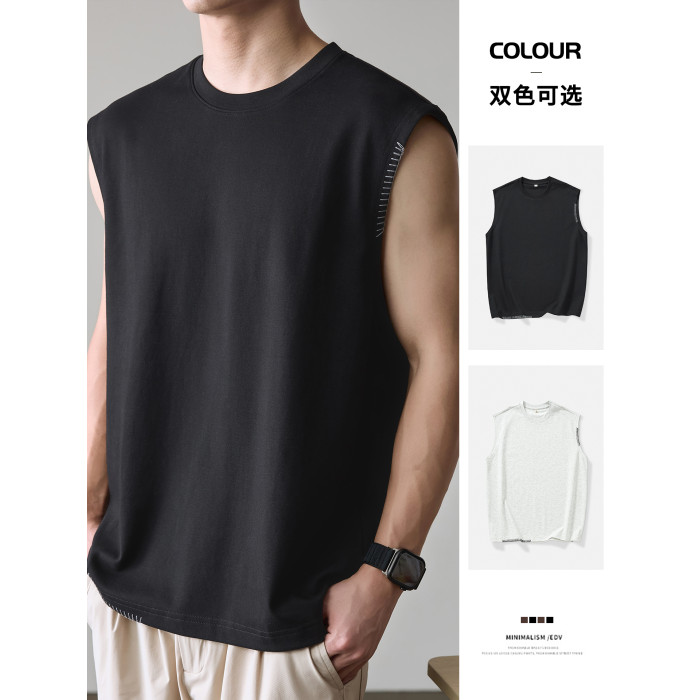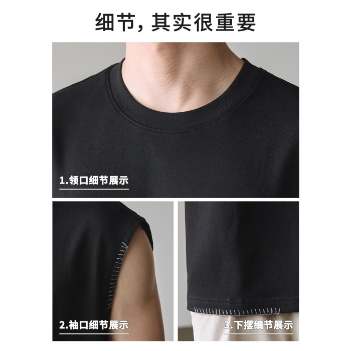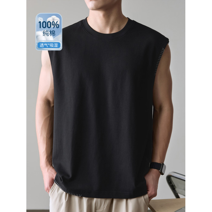貓人夏季新款純棉無袖T恤背心男寬松大碼休閒運動潮外穿坎肩上衣