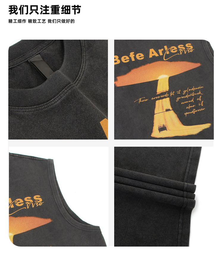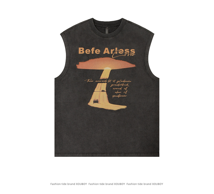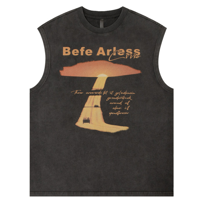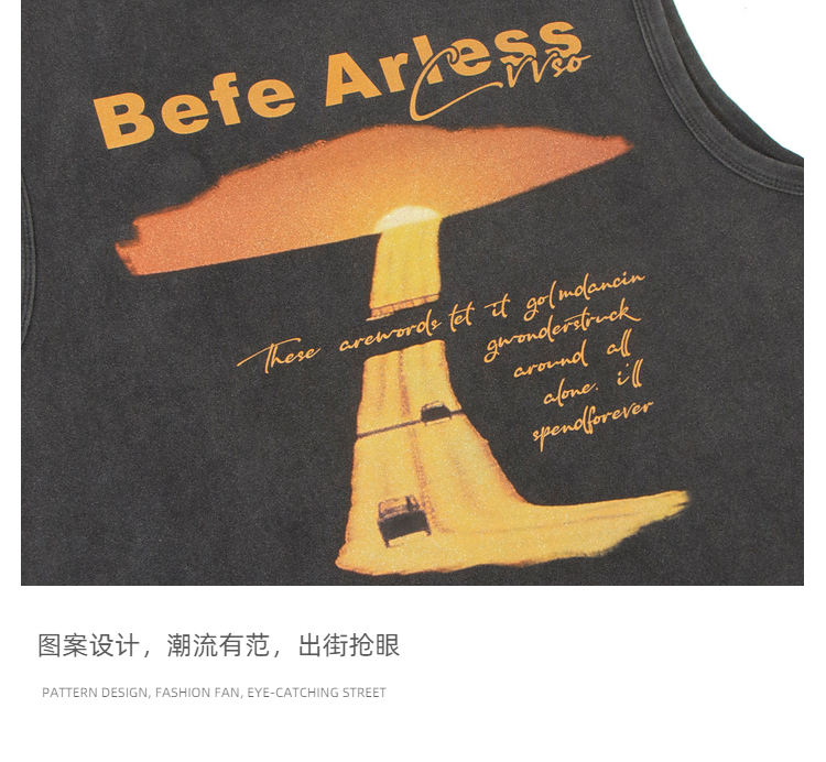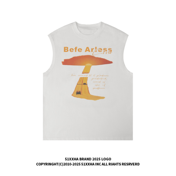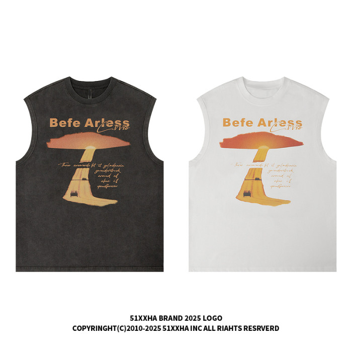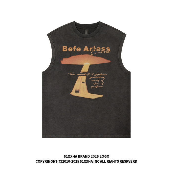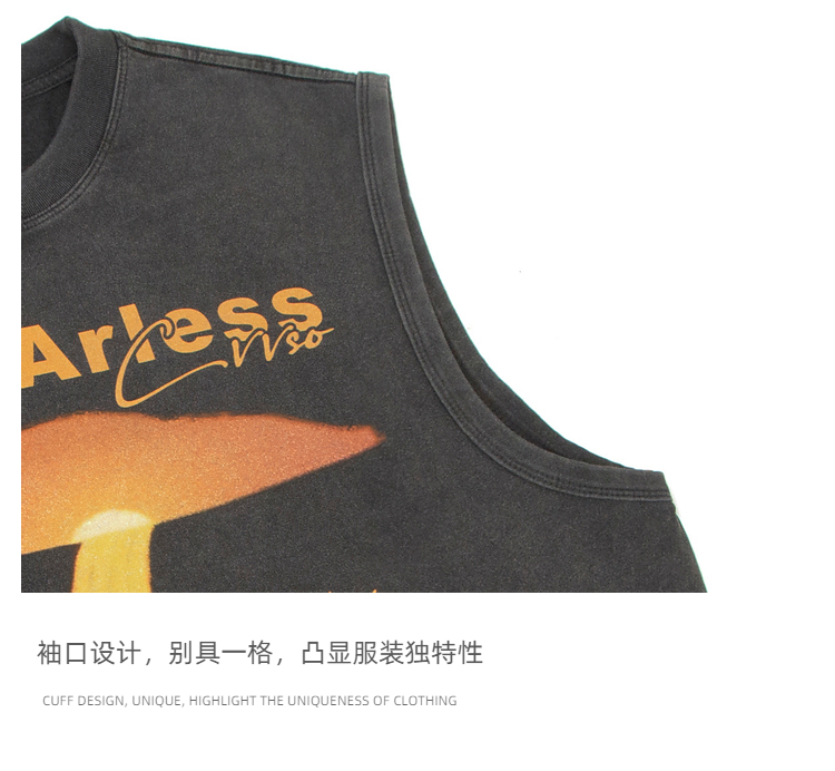 51嘻哈美式復古vibe做舊印花無袖T恤男夏季潮牌寬松運動坎肩背心
