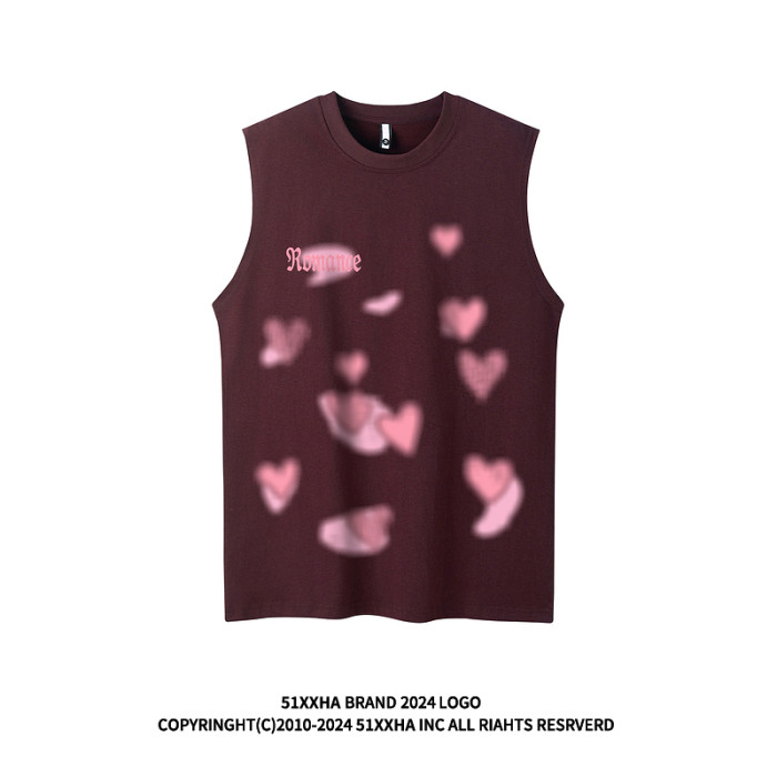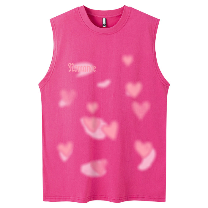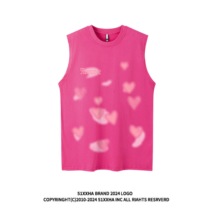 51嘻哈愛心趣味情侶背心坎肩夏季潮牌oldschool寬松美式無袖T恤男