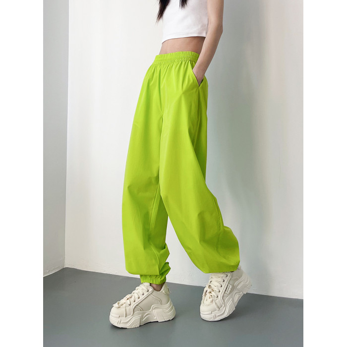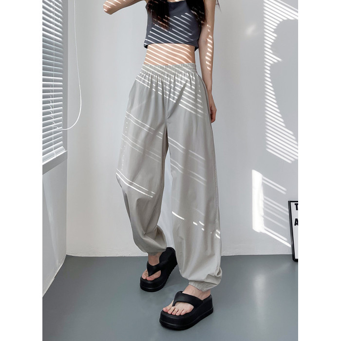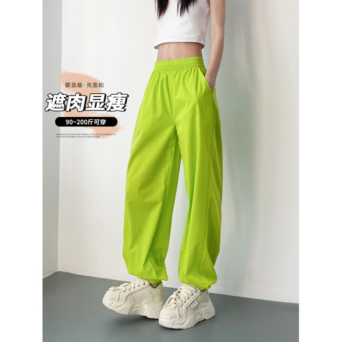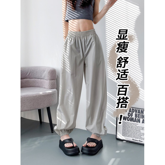 mjae薄款冰絲防曬濶腿褲女夏季大碼胖mm顯瘦運動褲高腰直筒束腳褲