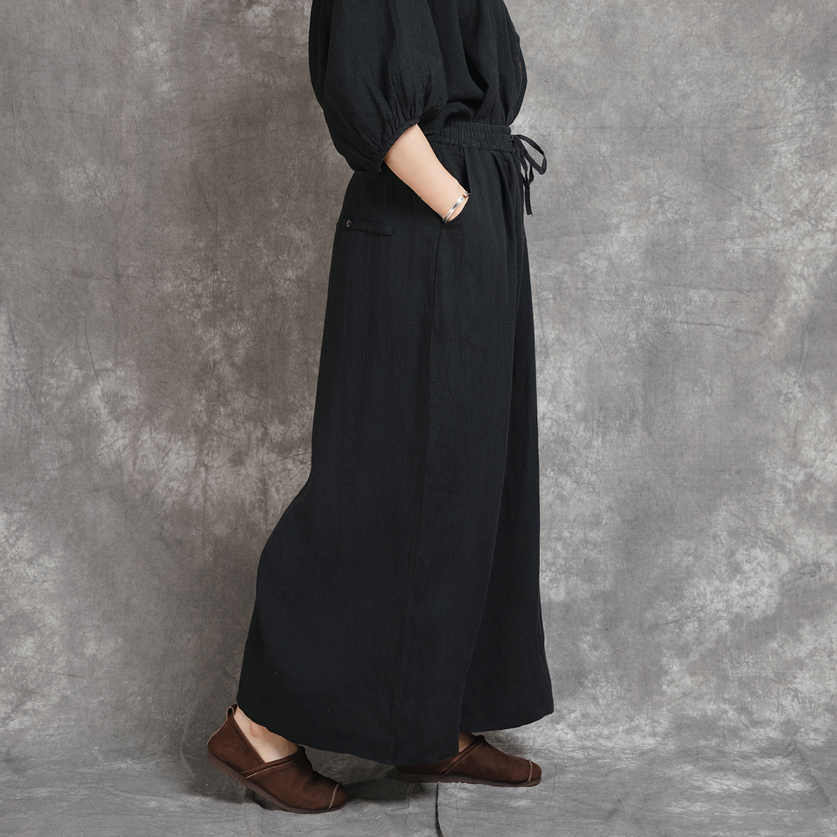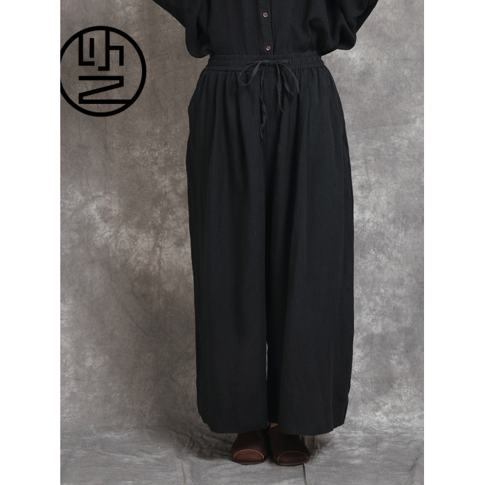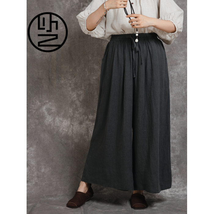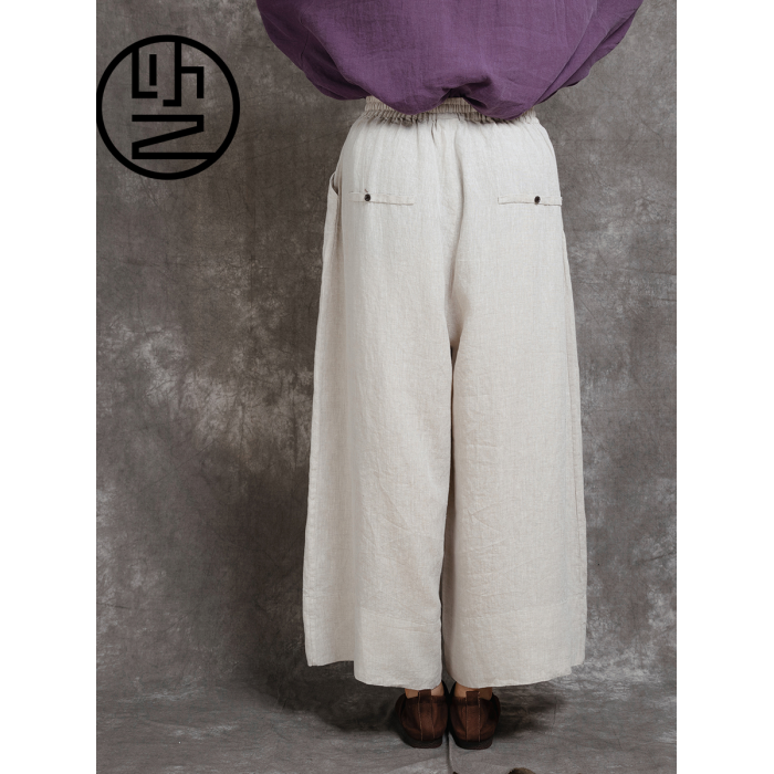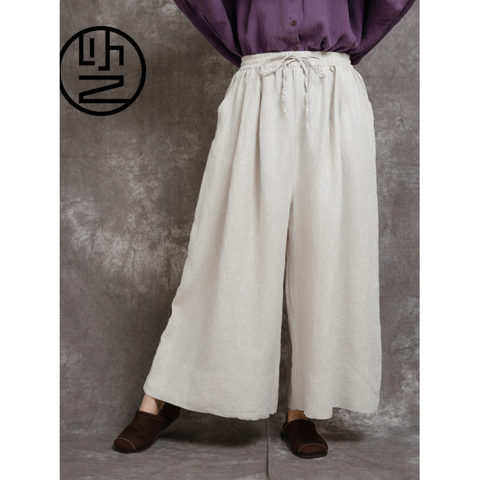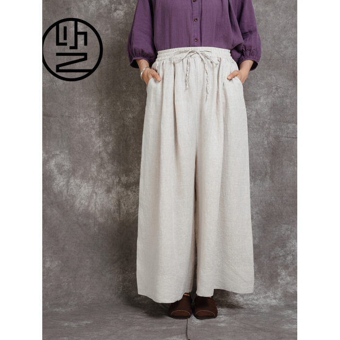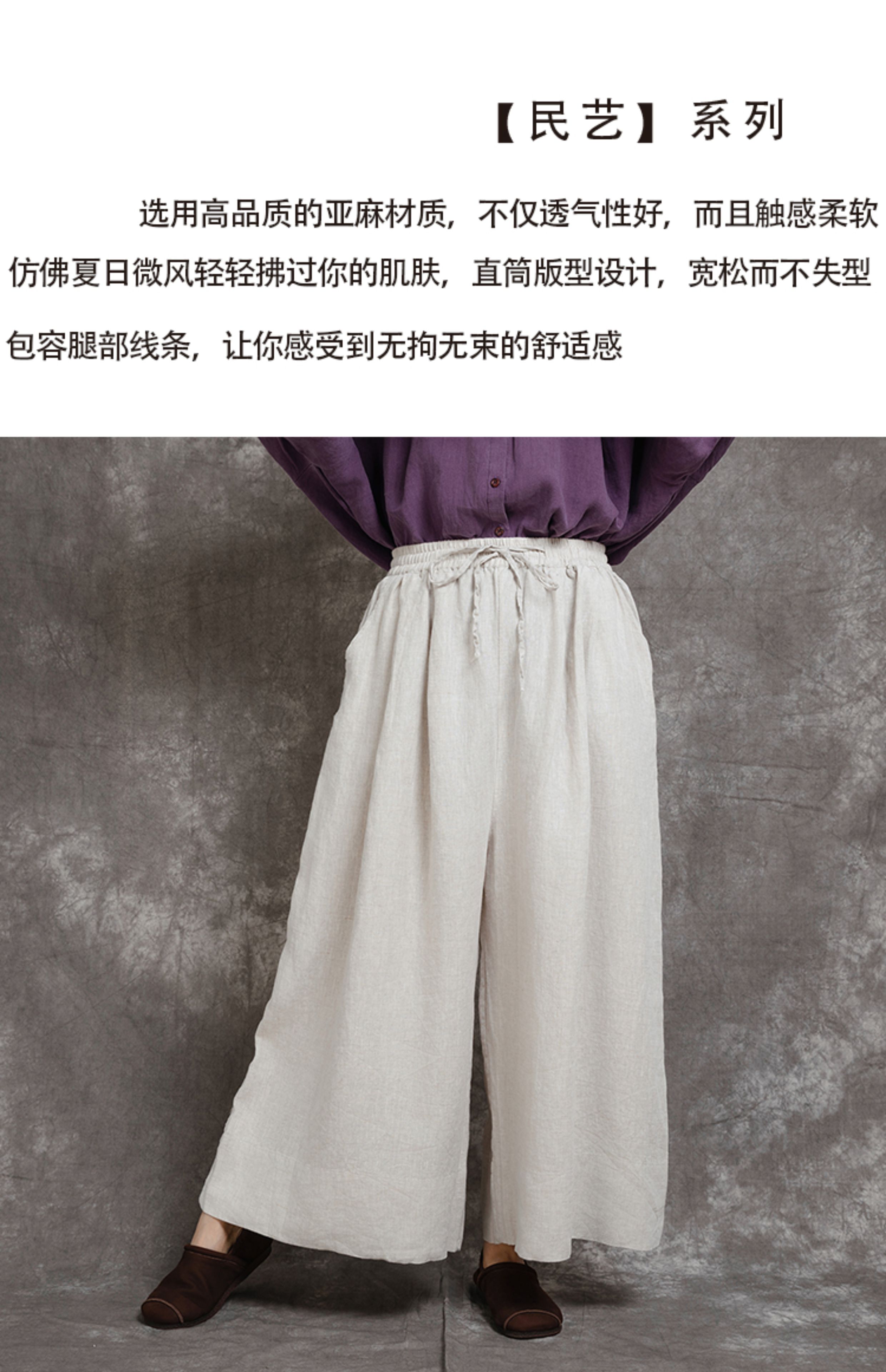【以之】設計師品牌原創復古寬松顯瘦休閒文藝大碼亞麻直筒濶腿褲