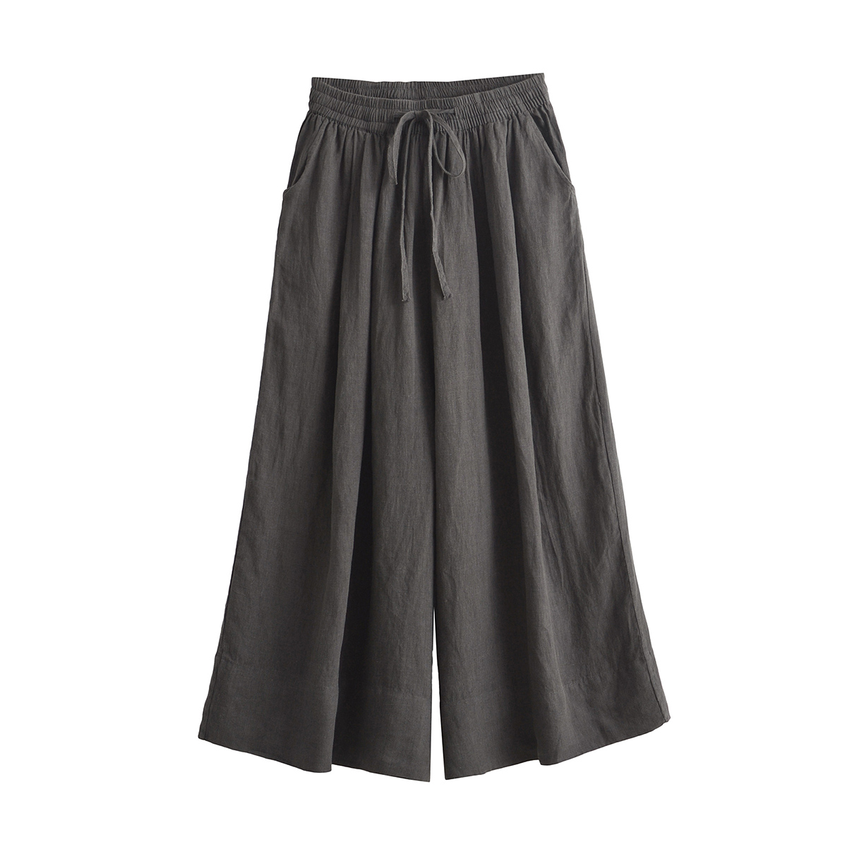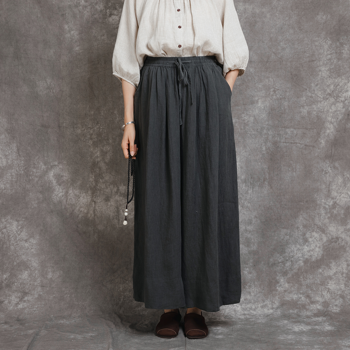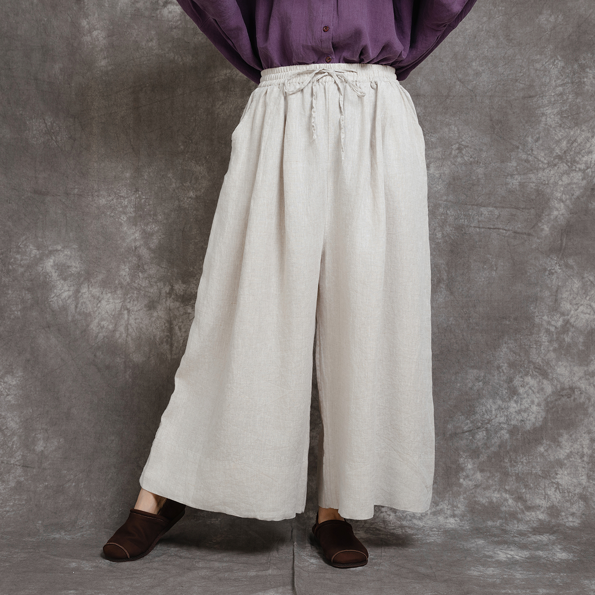 【以之】設計師品牌原創復古寬松顯瘦休閒文藝大碼亞麻直筒濶腿褲