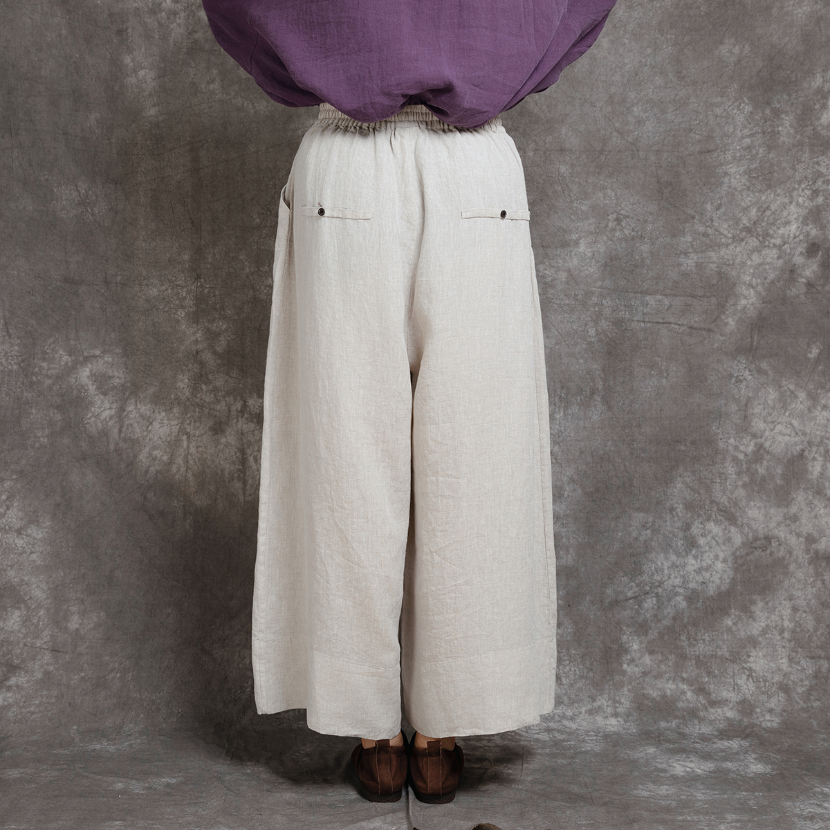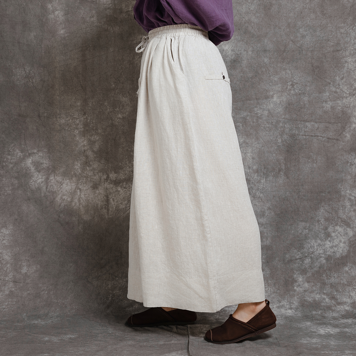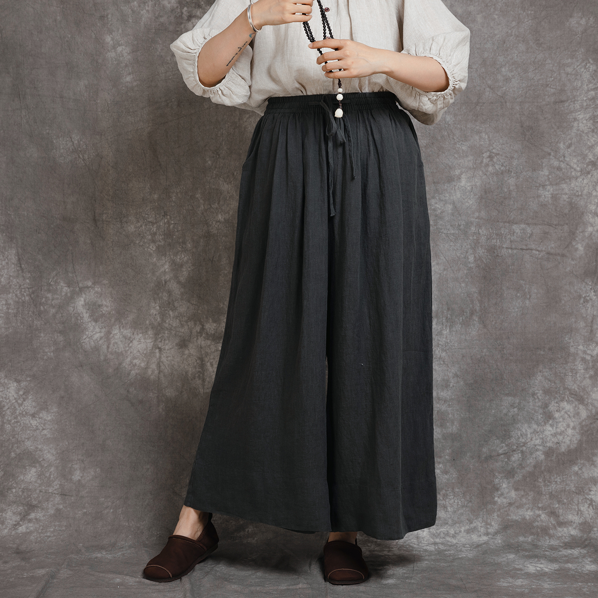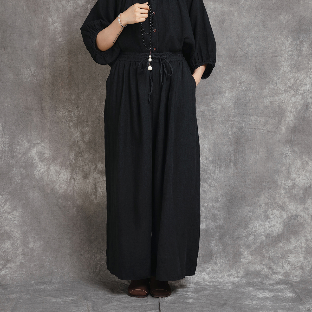 【以之】設計師品牌原創復古寬松顯瘦休閒文藝大碼亞麻直筒濶腿褲