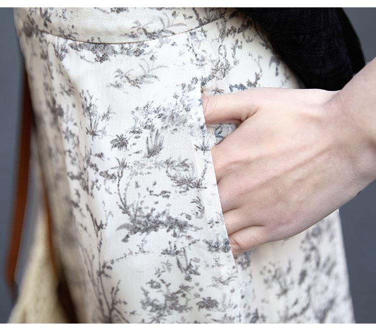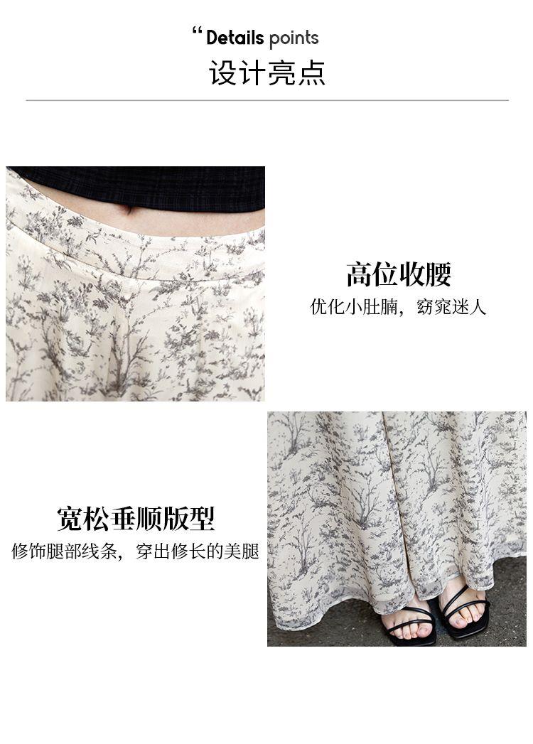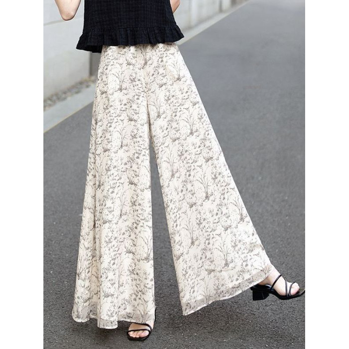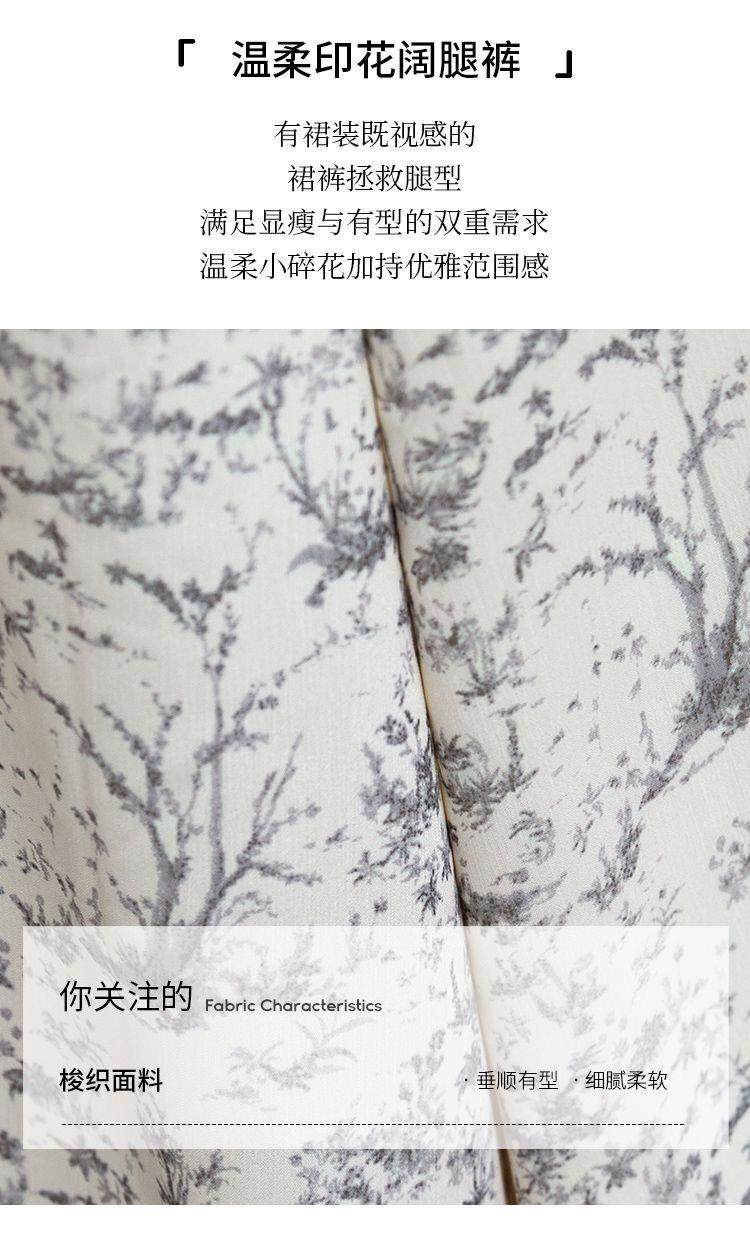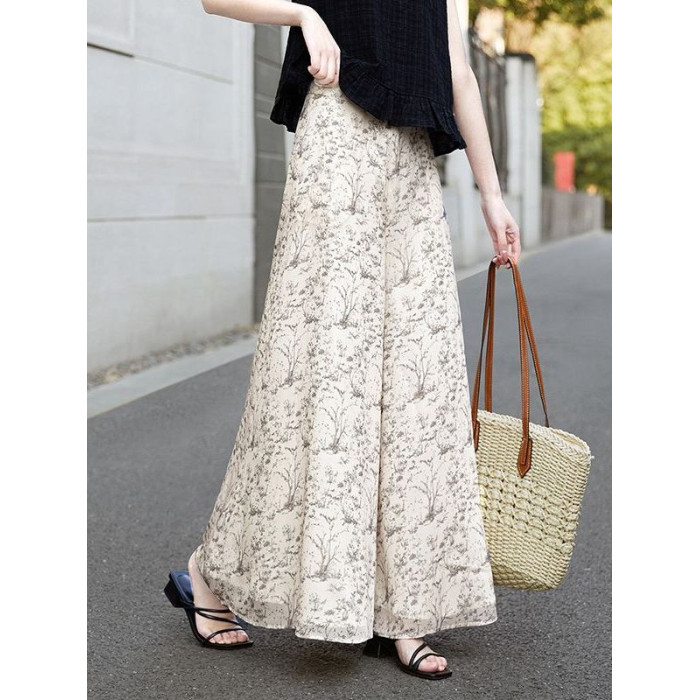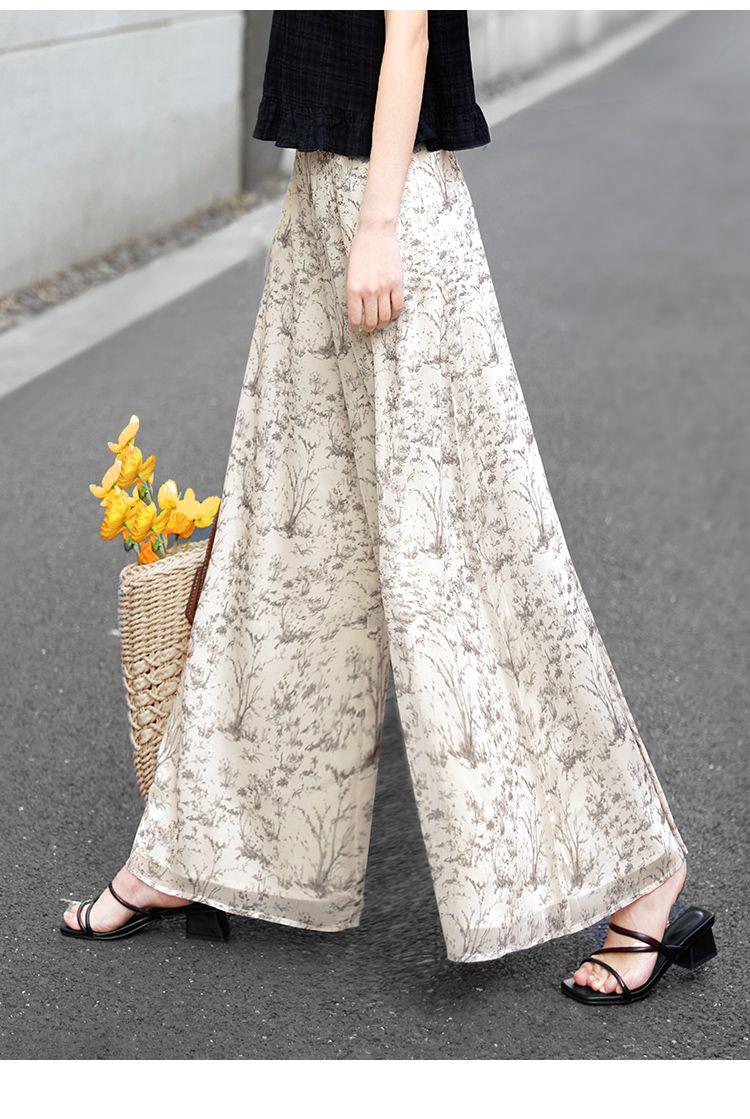 日系輕奢桑蠶絲高腰濶腿褲夏季新款時尚寬松碎花垂感長款甩腿裙褲