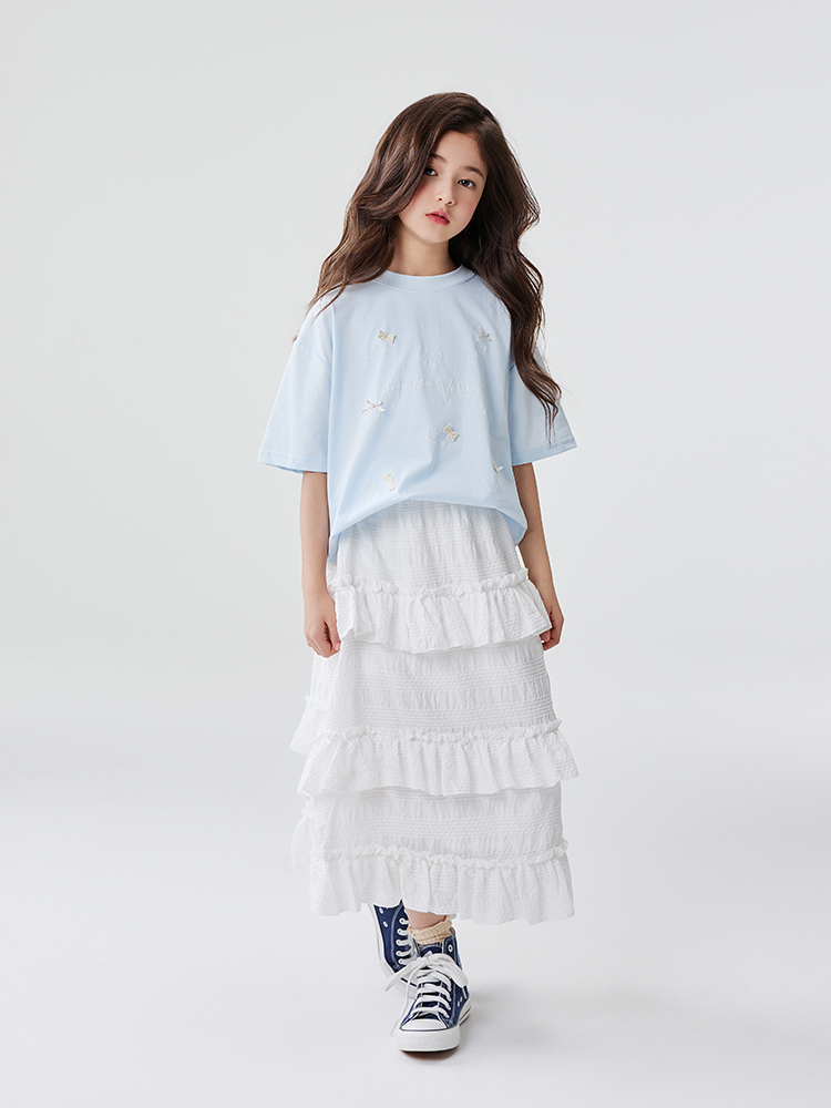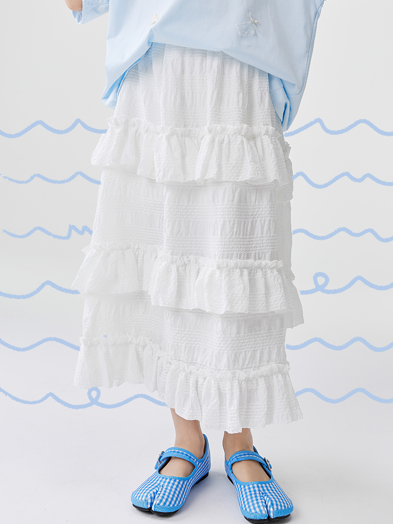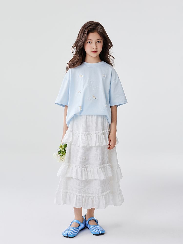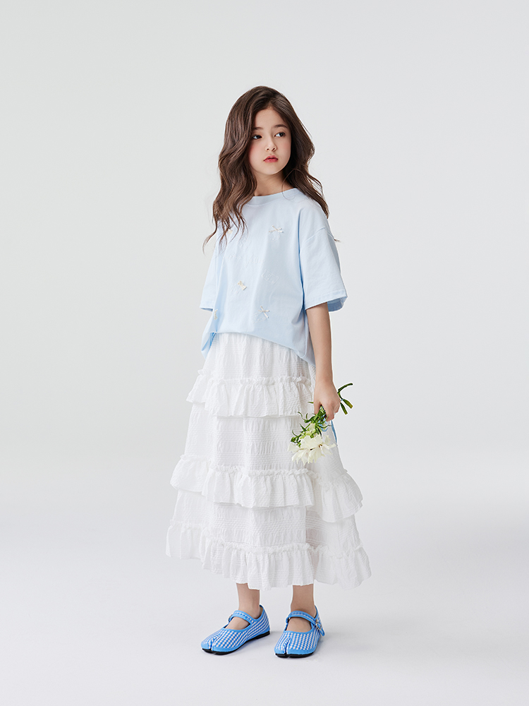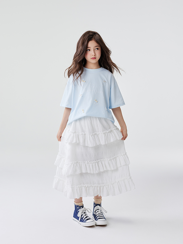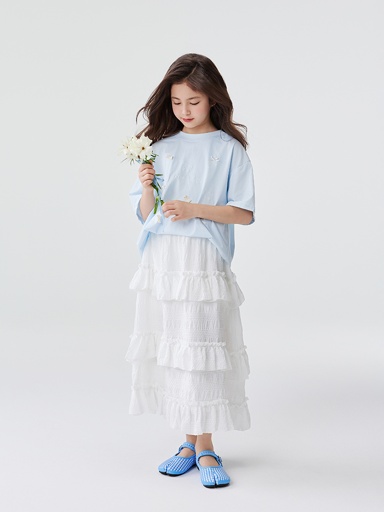 花笙糖女童夏季半身裙小女孩白色長裙大童時尚百搭荷葉邊裙子童裝