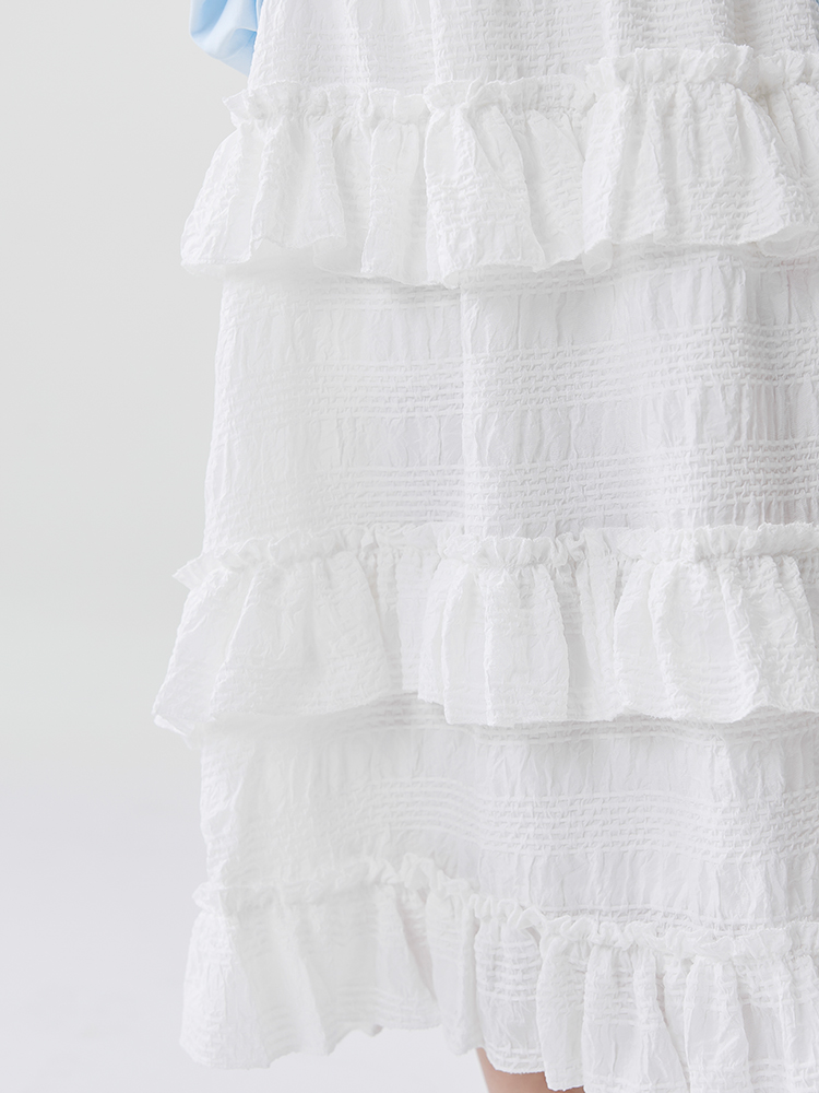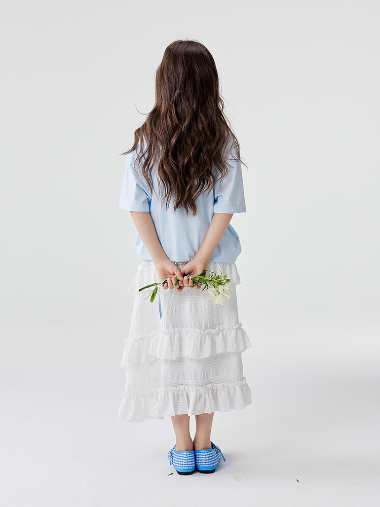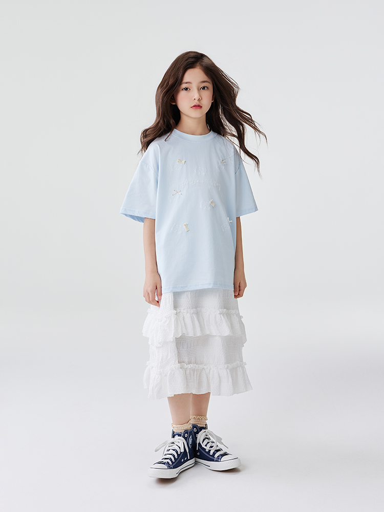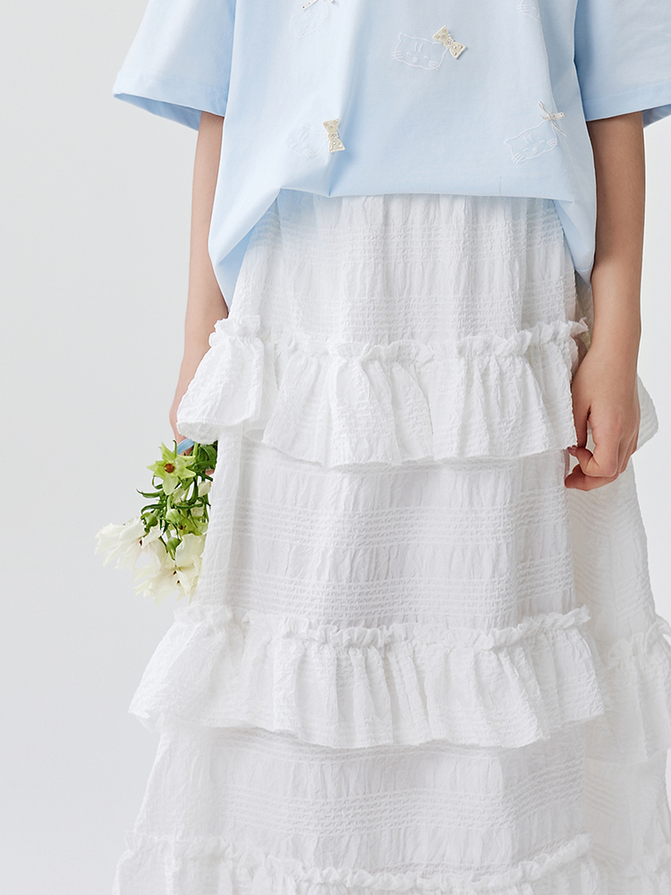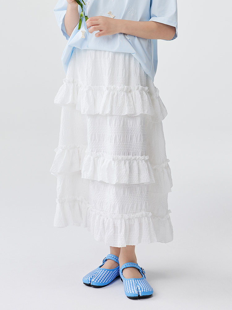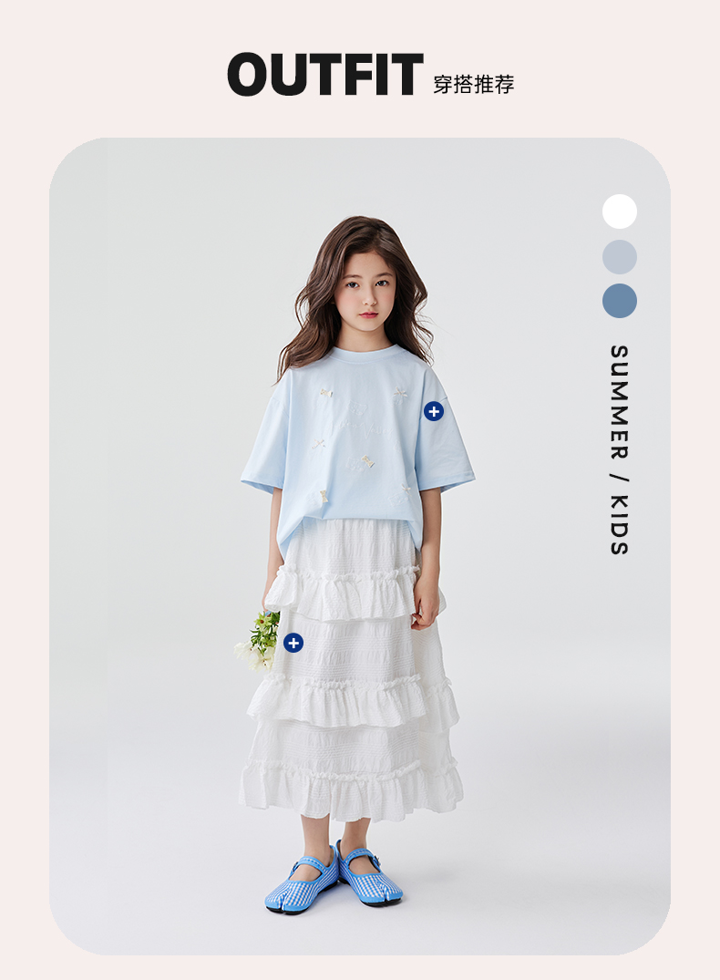 花笙糖女童夏季半身裙小女孩白色長裙大童時尚百搭荷葉邊裙子童裝