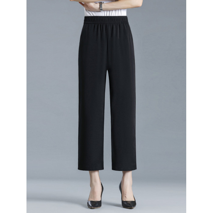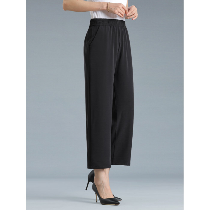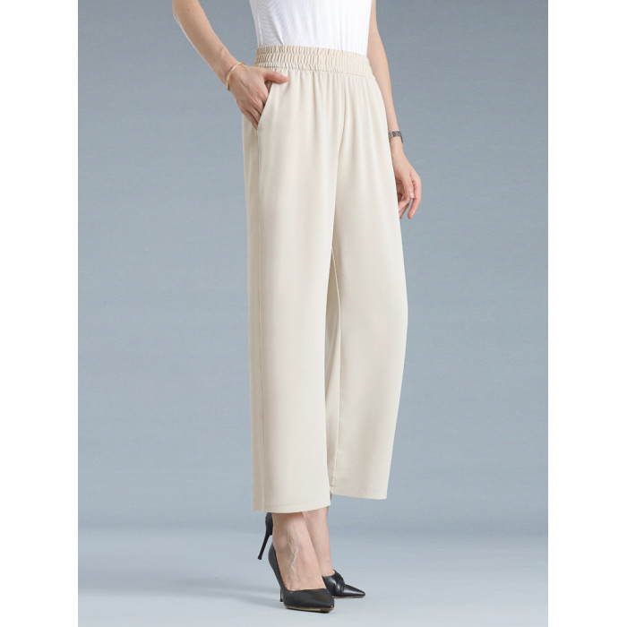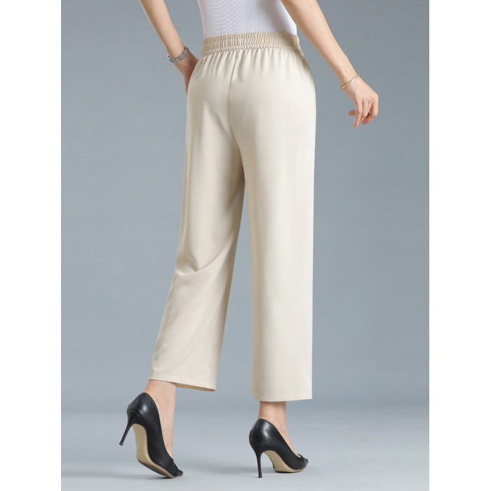 真絲女褲夏季薄款直筒褲高腰濶腿褲桑蠶絲九分褲中老年媽媽休閒褲