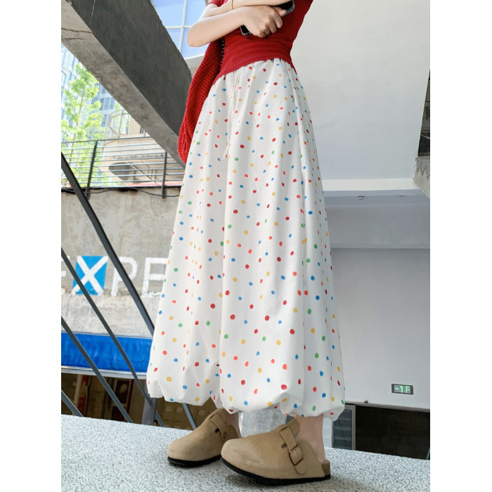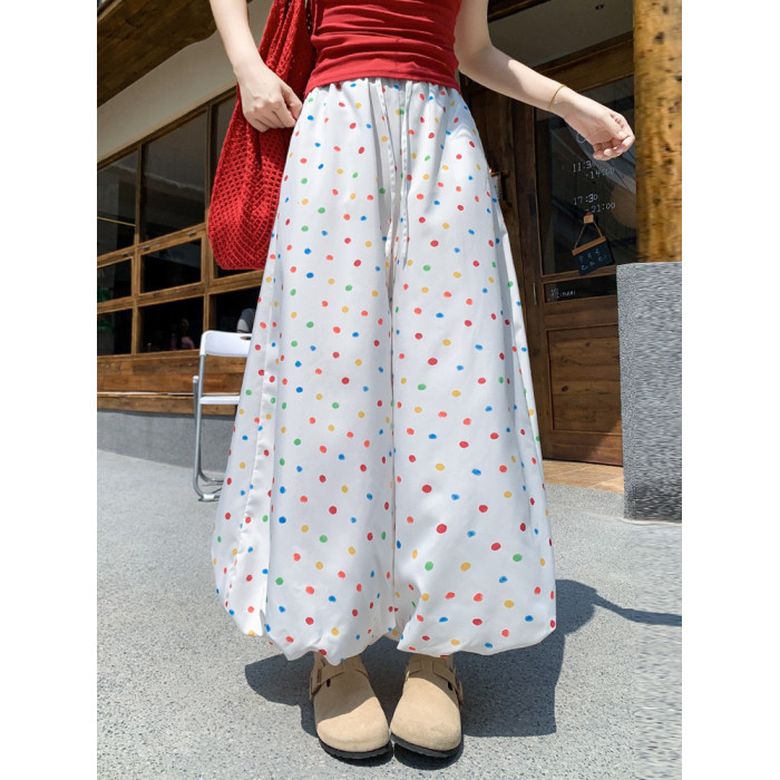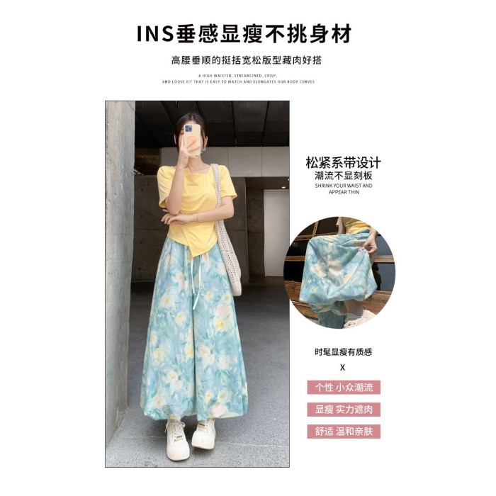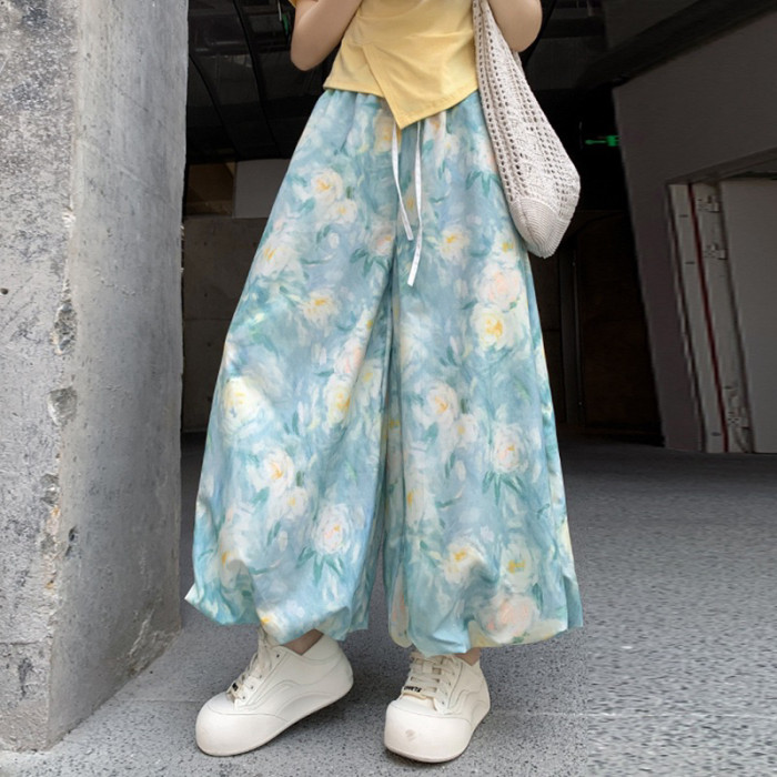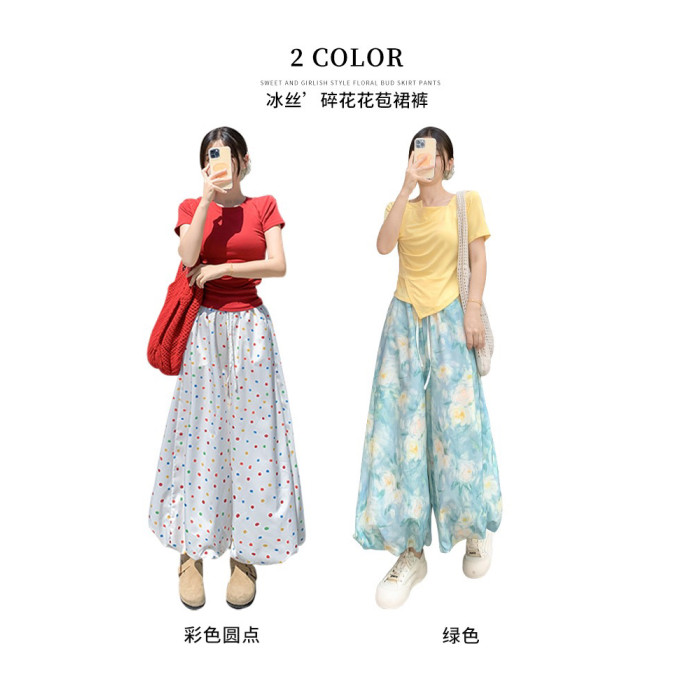 韓系印花花苞裙褲女夏薄款高腰顯瘦小個子慵懶碎花休閒燈籠濶腿褲