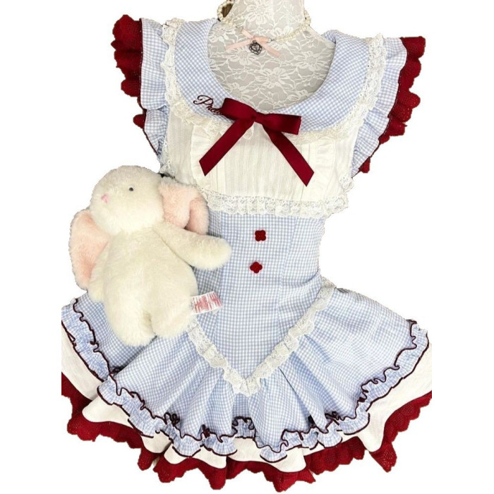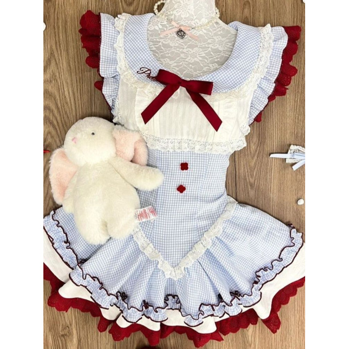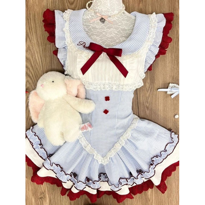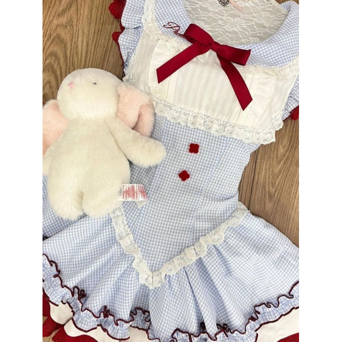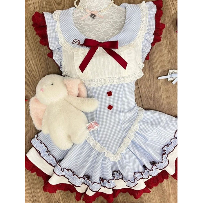韓版甜系女童蕾絲拼接連衣裙中大童夏季新款蝴蝶結層次感公主裙子