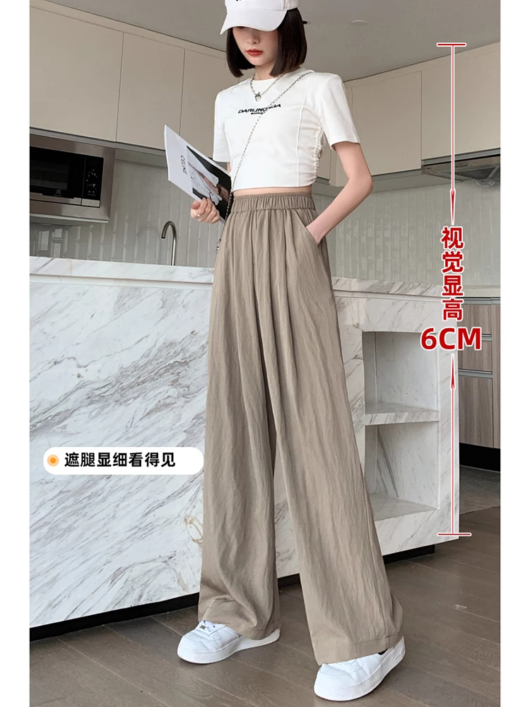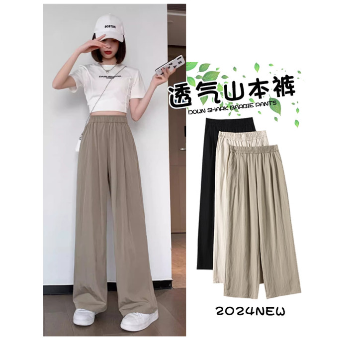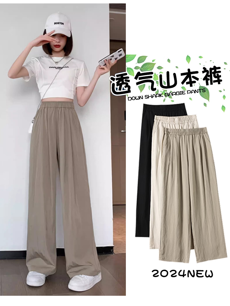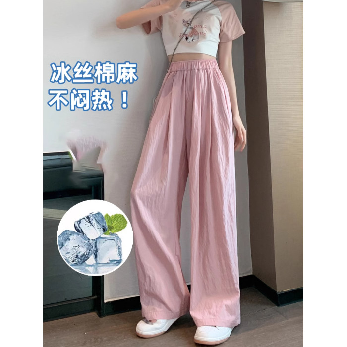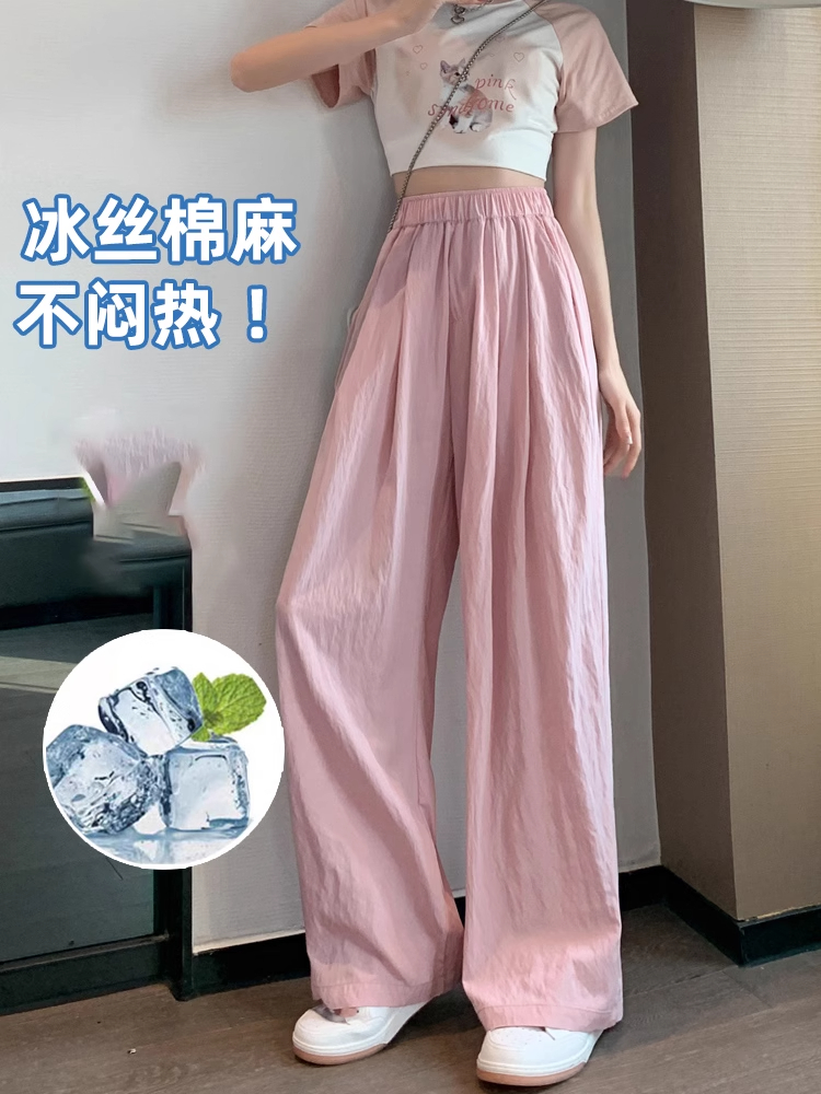 冰絲山本濶腿褲女夏季2025新款小個子涼涼寬松高腰八九分休閒女褲