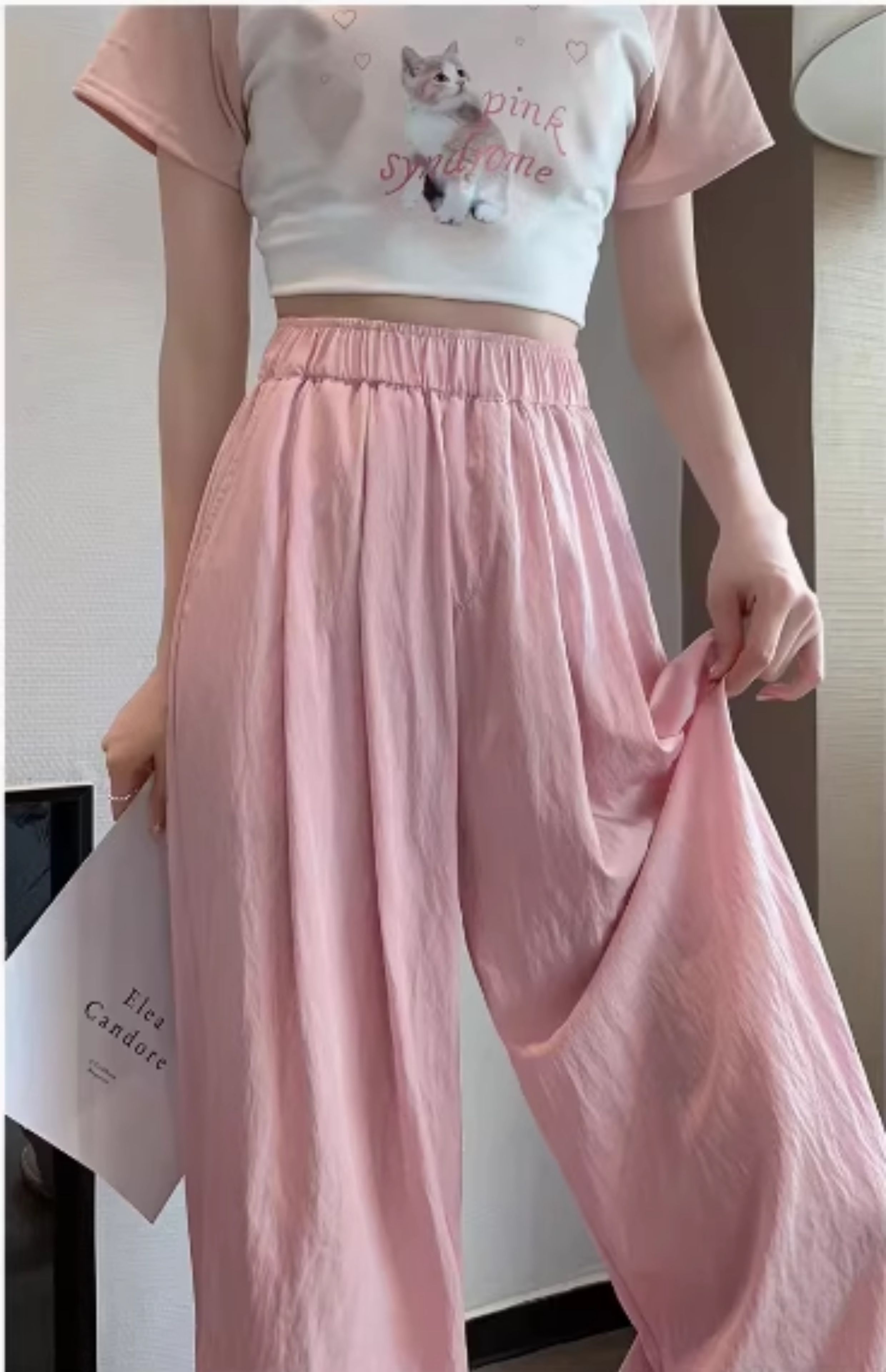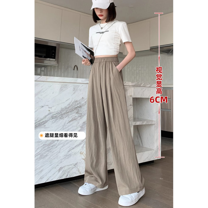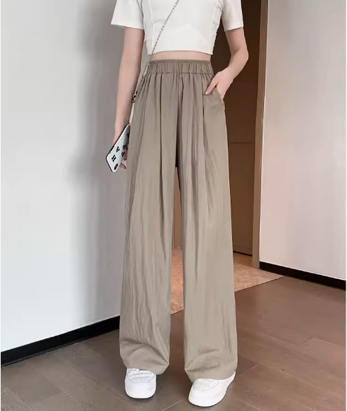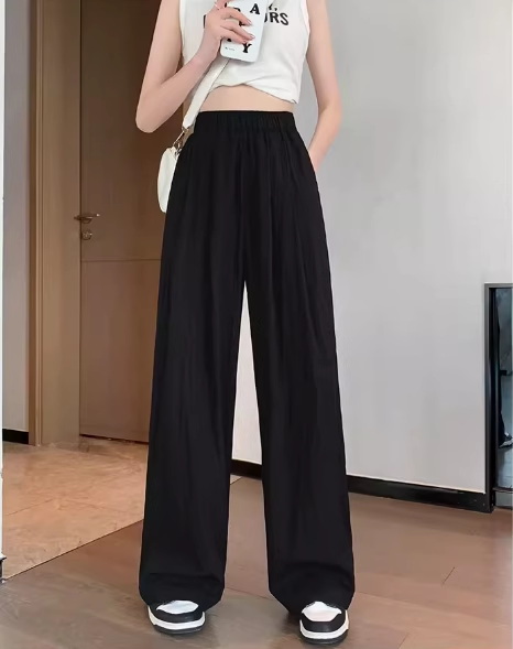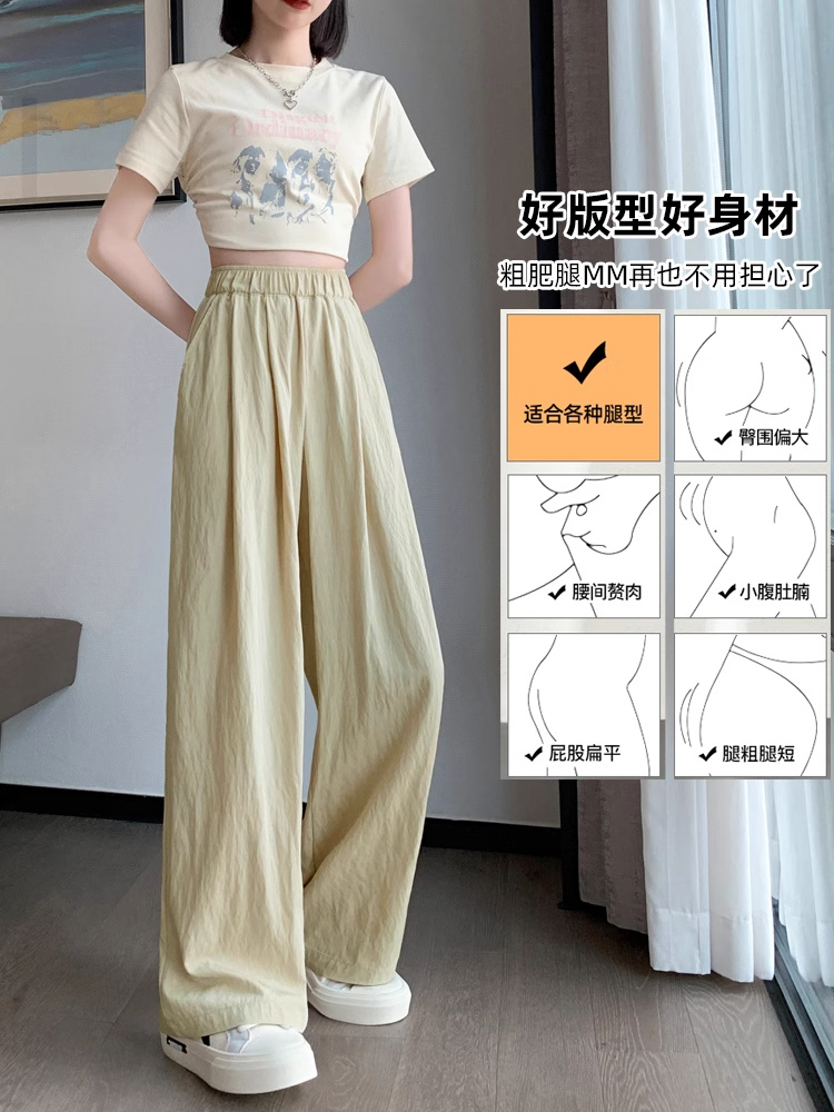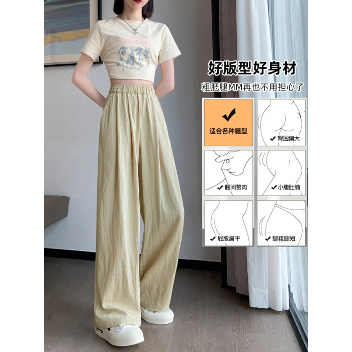 冰絲山本濶腿褲女夏季2025新款小個子涼涼寬松高腰八九分休閒女褲