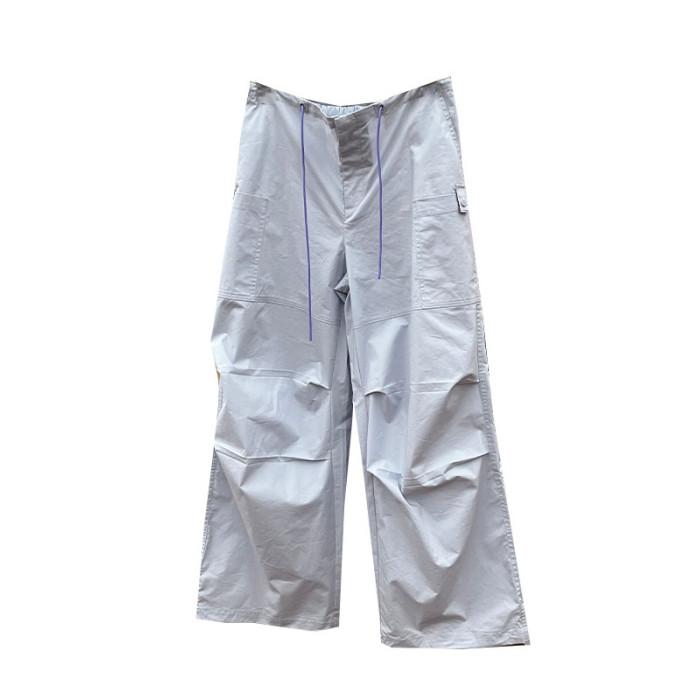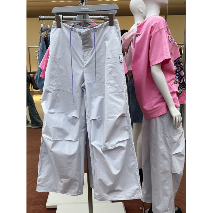 2025春夏新款女褲潮流休閒工裝風抽繩運動系長褲濶腿褲UYV650034