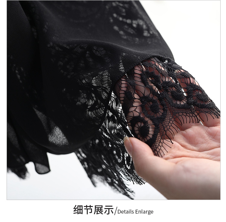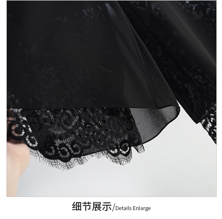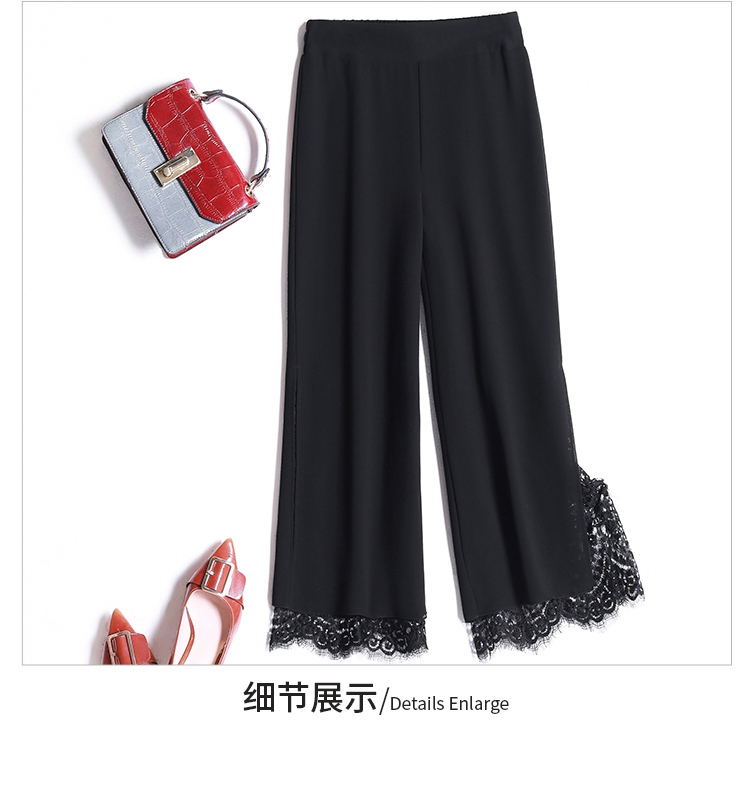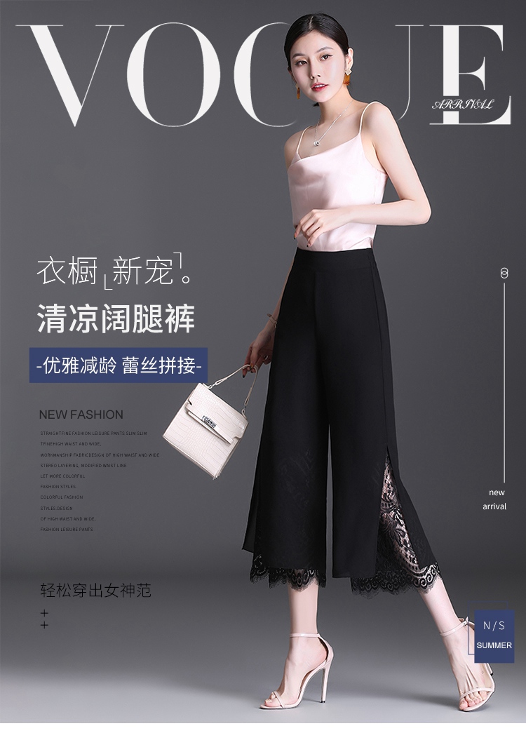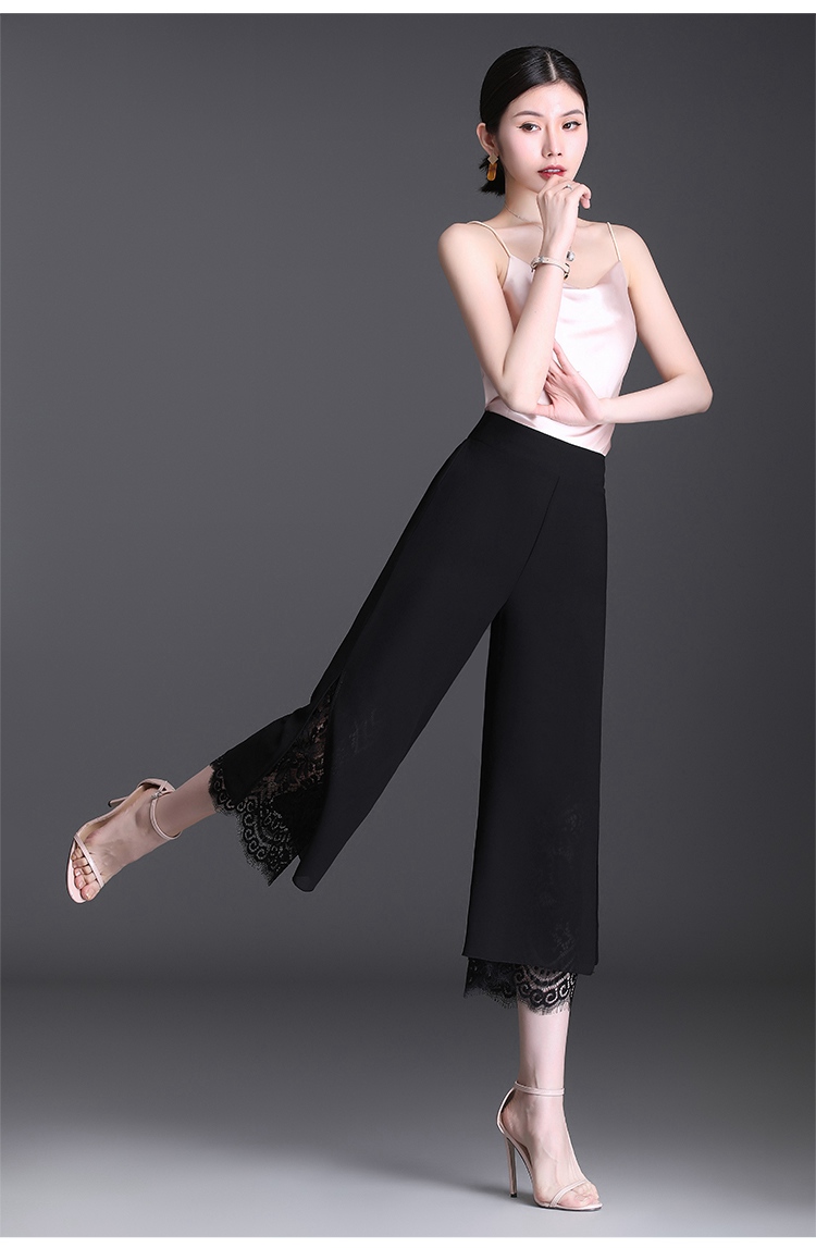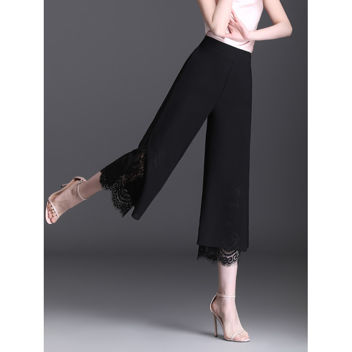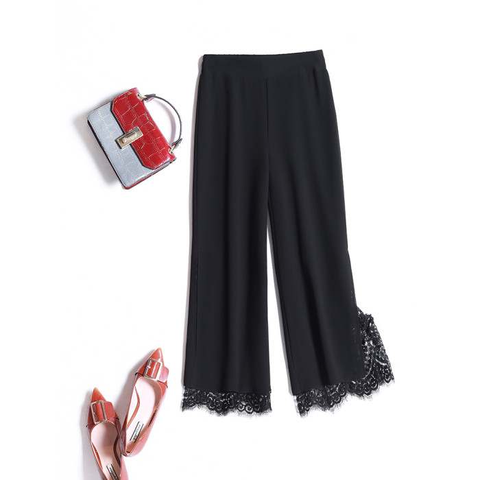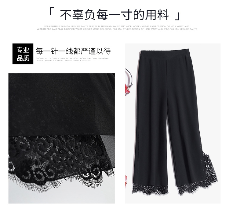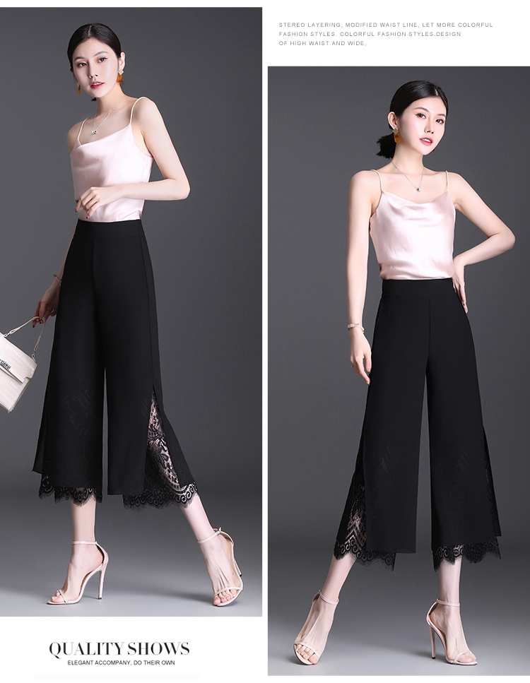 隅見丨八分褲女小個子夏薄款開叉蕾絲高腰寬松顯瘦七分雪紡濶腿褲