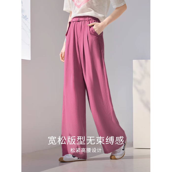 直筒粉色濶腿褲2025夏季新款休閒垂感含亞麻天絲垂感山本褲女